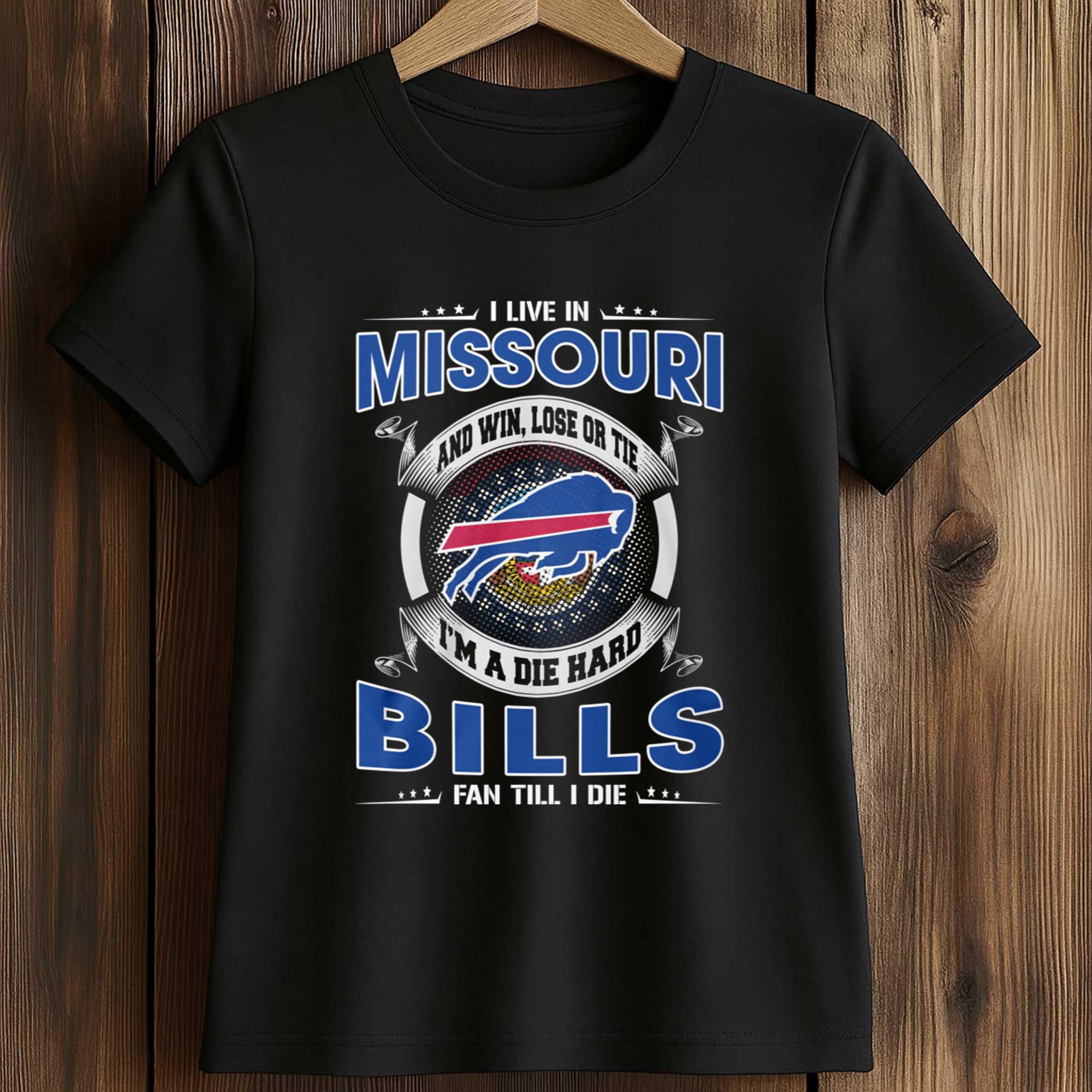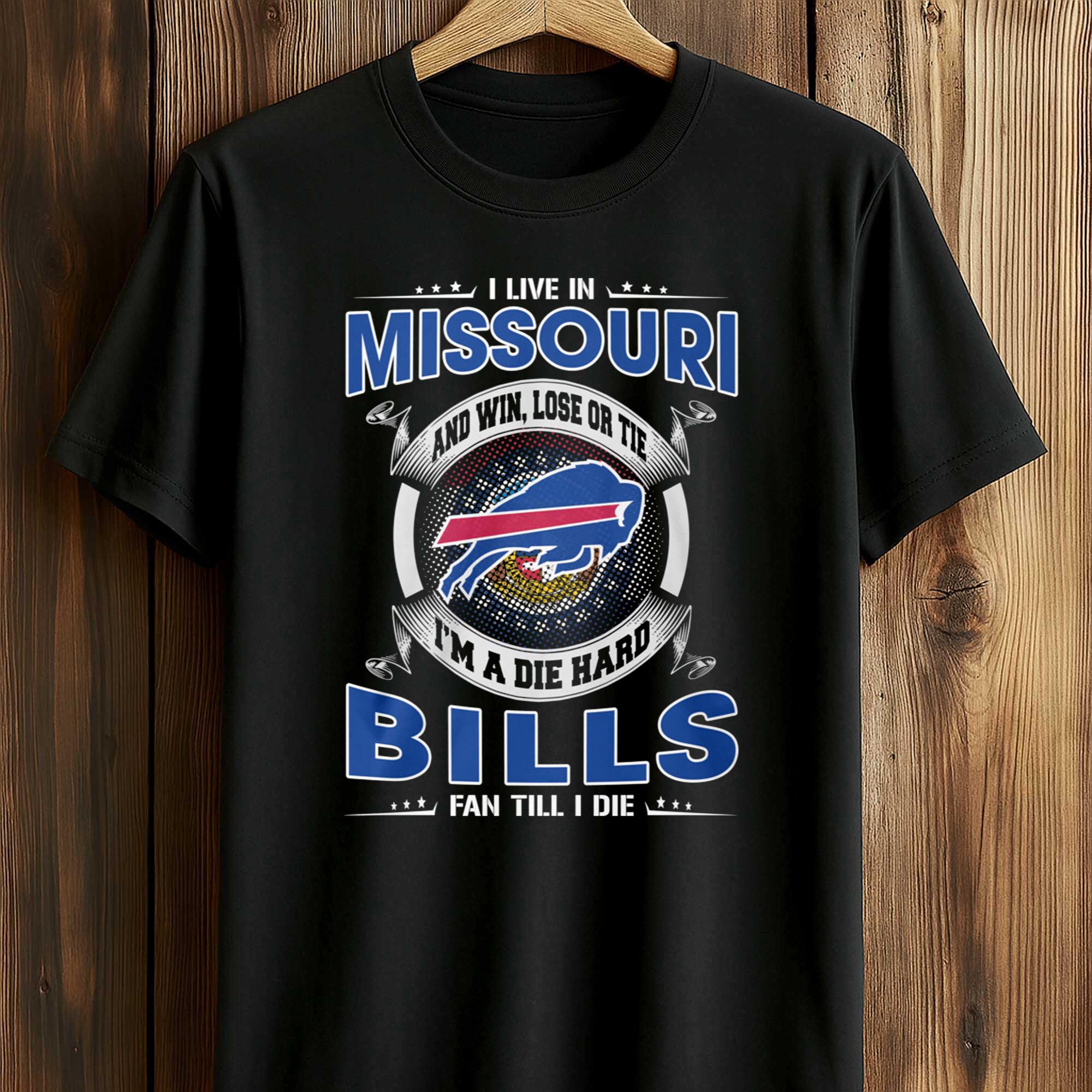 In the community, fan-specific apparel is rapidly becoming a trend, especially for supporters living outside the team’s home state. Bills fans in Missouri are proudly embracing designs that reflect both location and lifelong loyalty. This I Live In Missouri And Win, Lose Or Tie I’m A Die Hard Bills Fan Till I Die Shirt perfectly fits that trend, symbolizing dedication that transcends geographic boundaries and seasons.