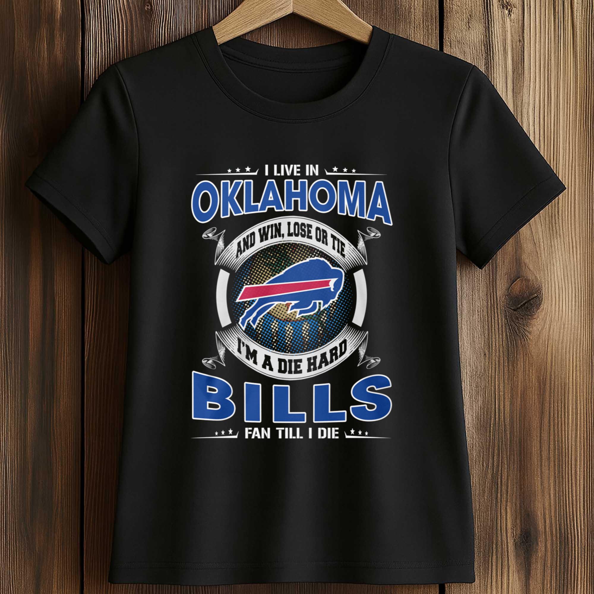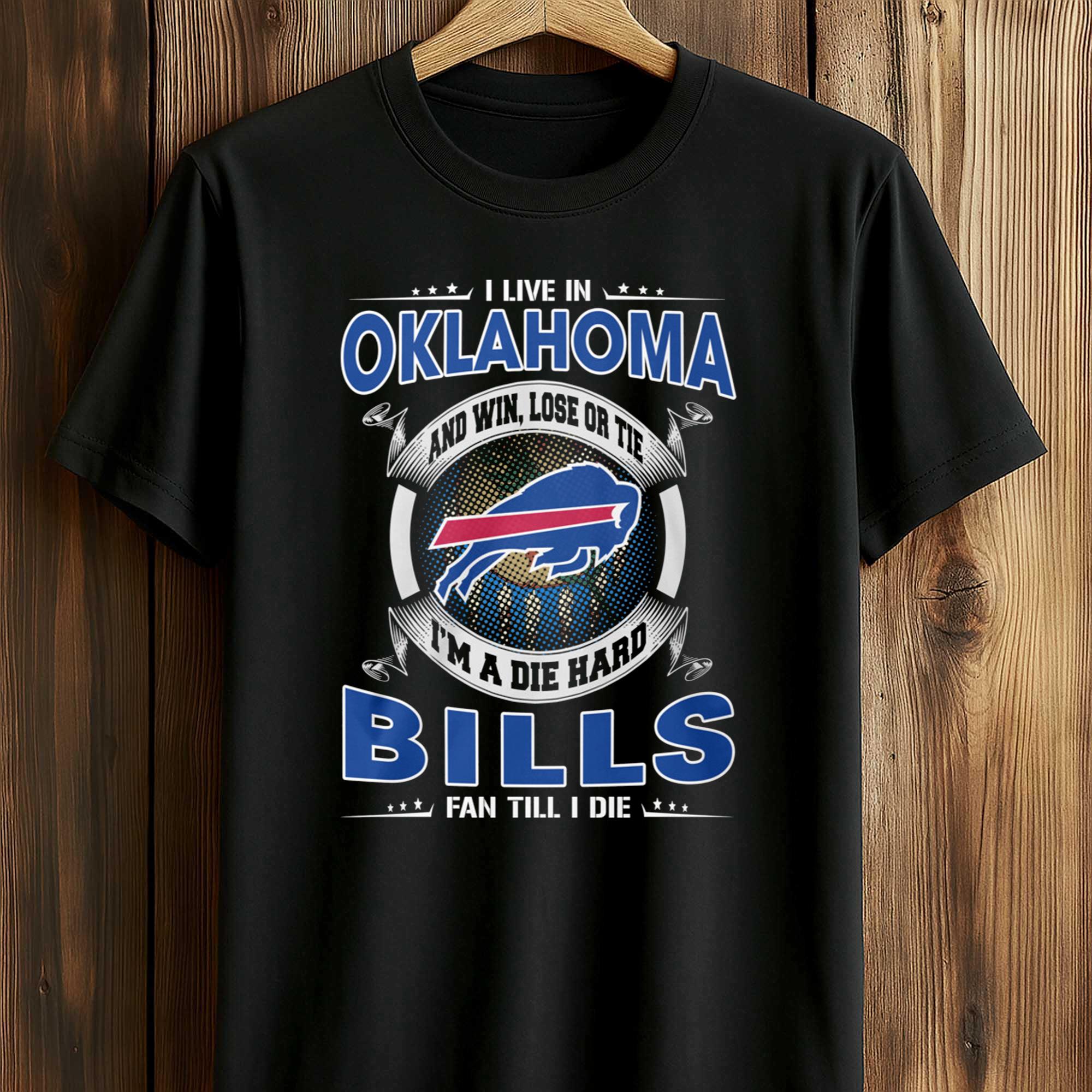 T-shirt “I live in Oklahoma and win, lose, or draw, I’m a die-hard Bills fan”