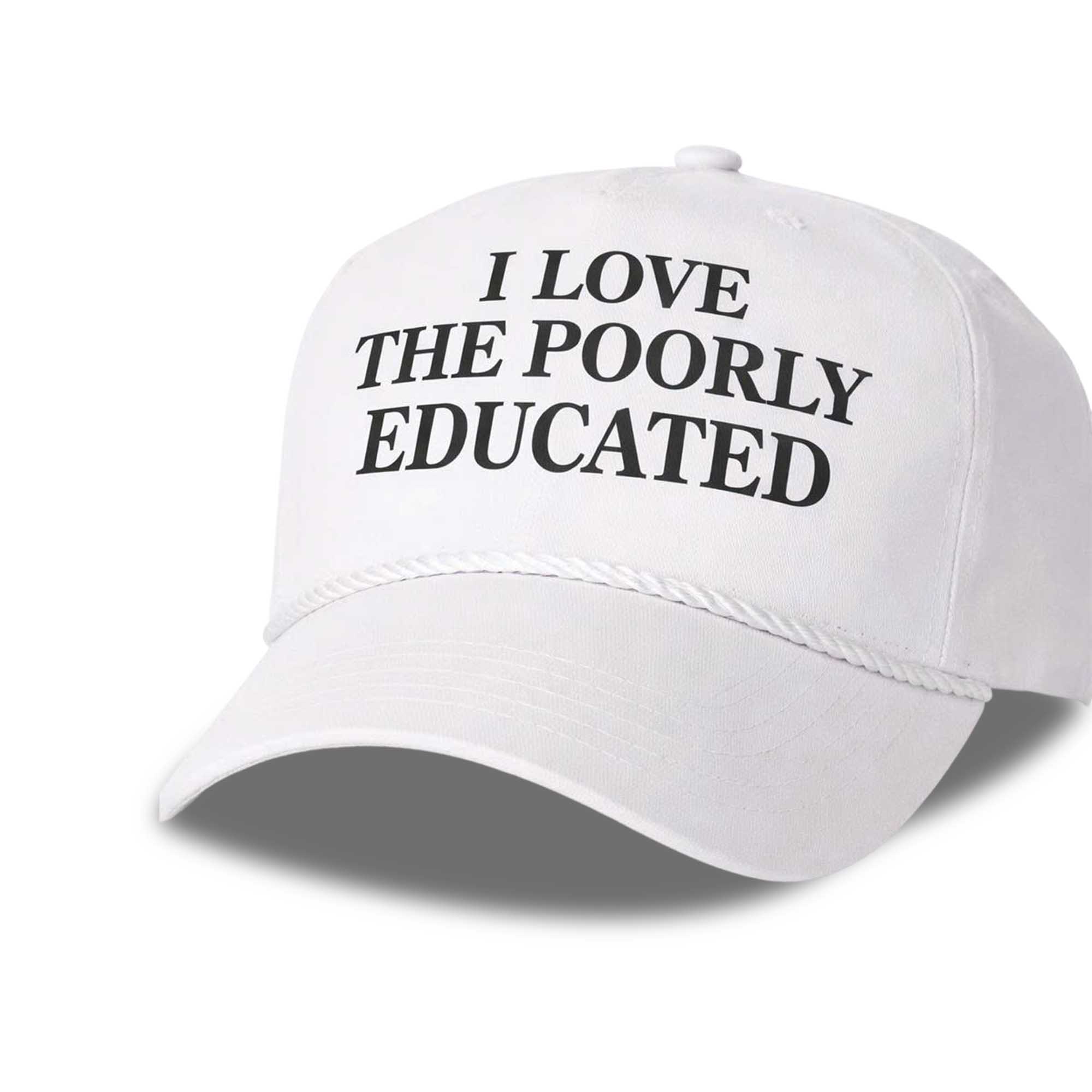 The I Love The Poorly Educated Hat continues to attract attention as a personality-expressing accessory that remains popular in streetwear and everyday fashion. Short, direct quotes printed on the cap have become a way for people to refer to pop culture moments, satire, or social commentary. This design stands out because of its familiar, instantly readable message and often sparks debate whenever it appears.