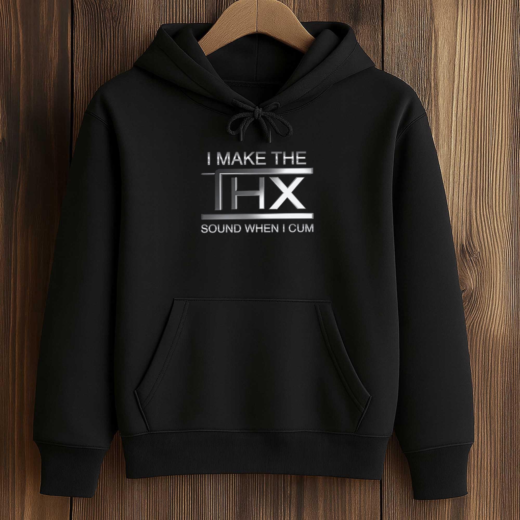 Put on this I Make The THX Sound When I Cum Shirt and see the reactions from everyone. A solid black t-shirt with a classic THX logo in shiny silver bars, the words “I MAKE THE” in white at the top, and a humorous quote at the bottom. Made from 100% super soft cotton, it’s comfortable all day long and colorfast after multiple washes. Perfect for movie nights, hanging out with friends who share your dark humor interests, or simply showing off your rebellious personality. One shirt, countless admiring glances, and “unbelievable!” moments.
