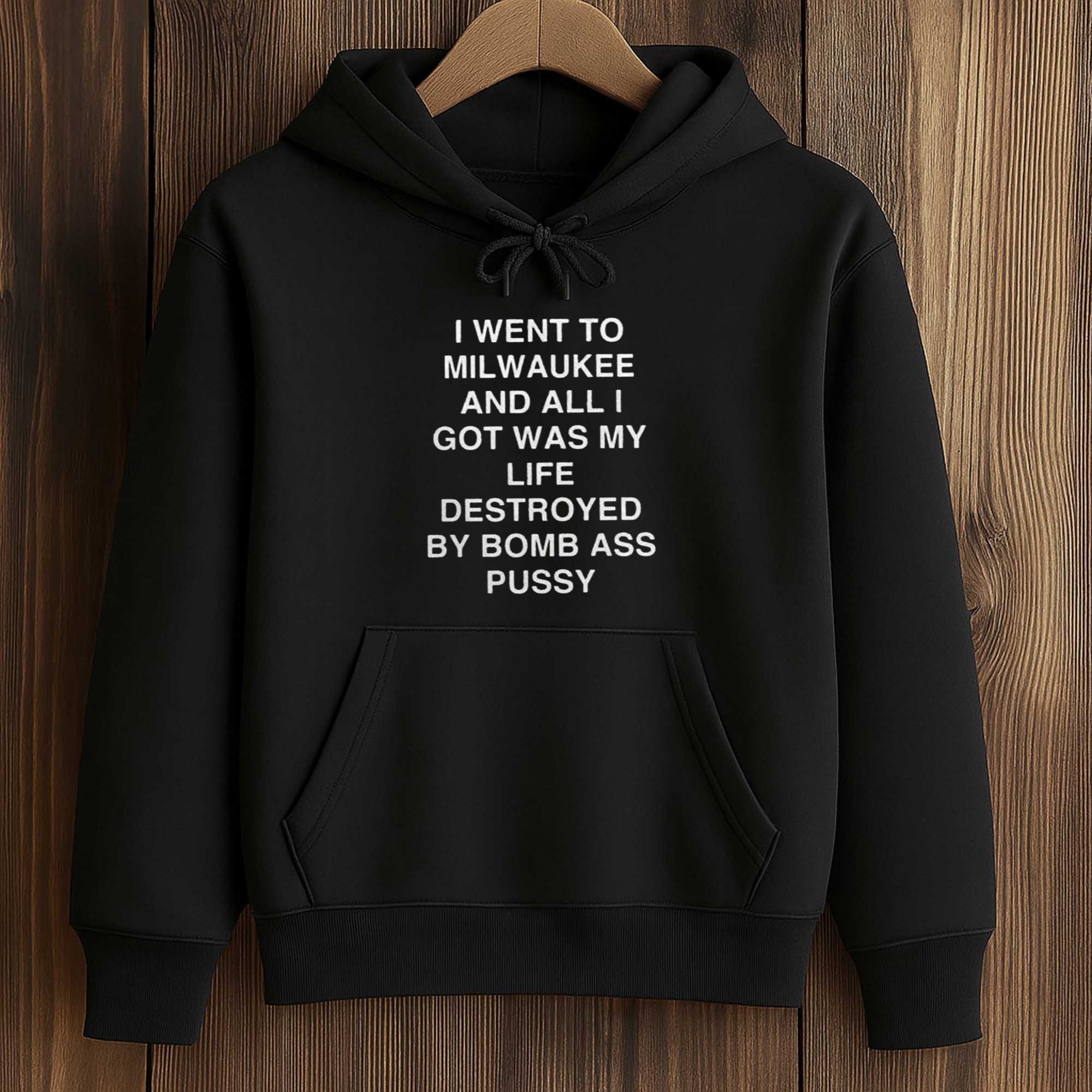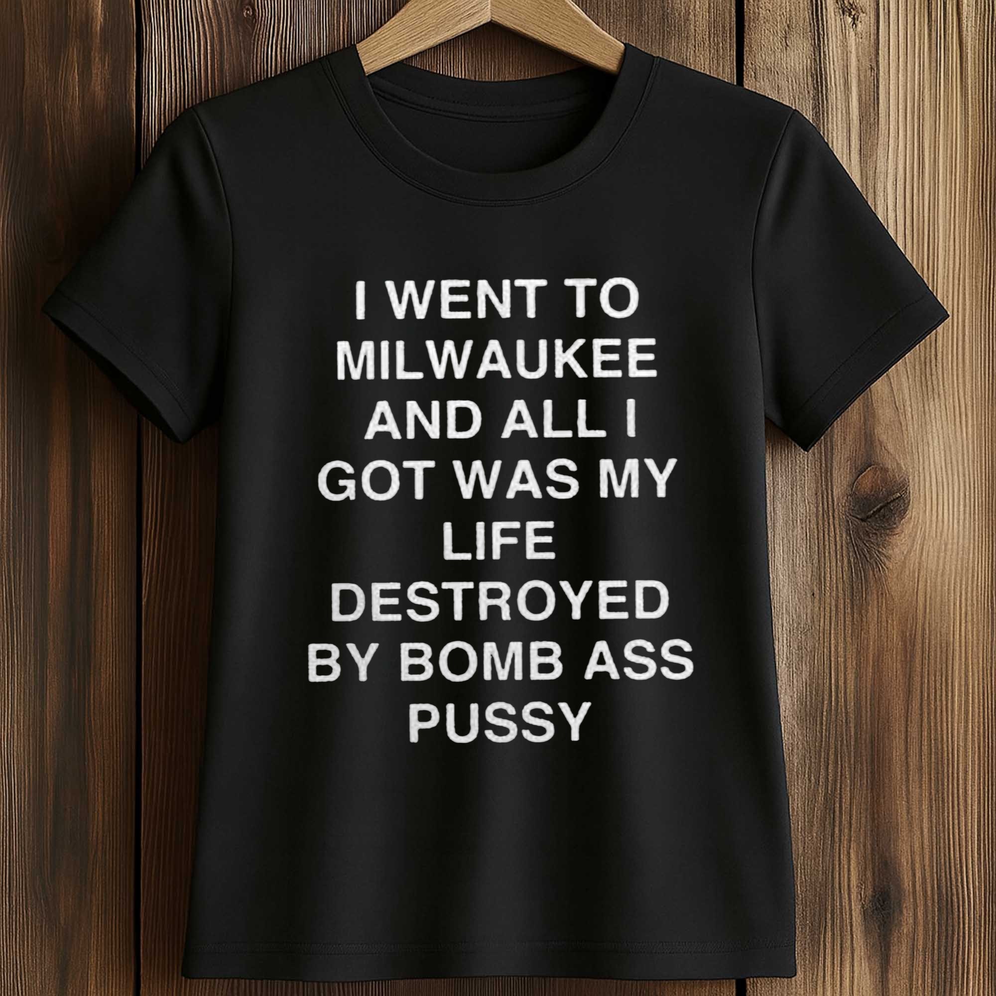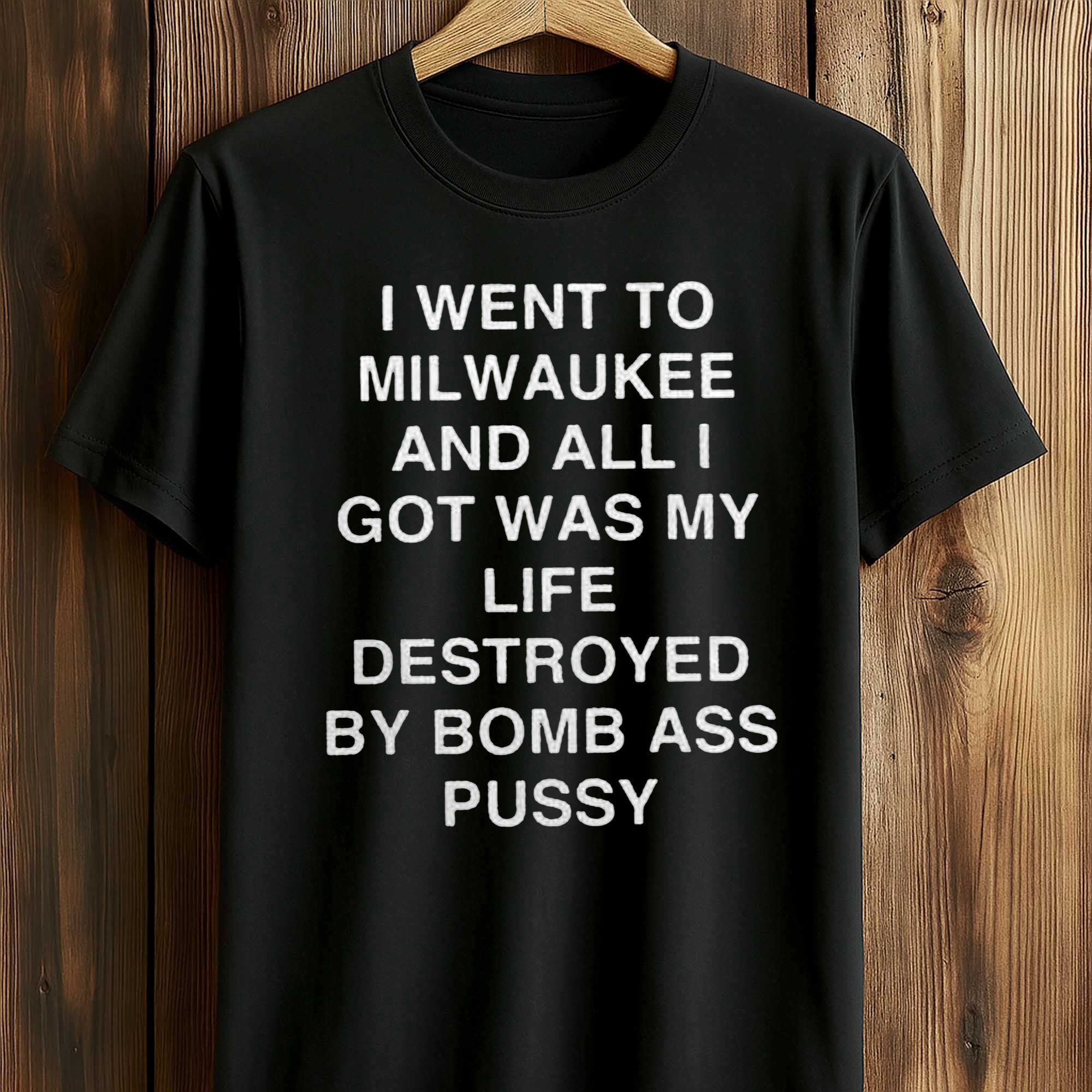 The I Went To Milwaukee And All I Got Was My Life Destroyed By Bomb Ass Pussy Shirt reflects the rise of uninhibited, meme-driven fashion in 2026. Inspired by internet humor and exaggerated storytelling, this design instantly grabs attention and sparks conversation wherever it goes. Printed t-shirts like this are becoming more than everyday wear they express personality, humor, and confidence. With its bold message and minimalist presentation, this shirt captures the burgeoning trend where humor and attitude shape modern street fashion.