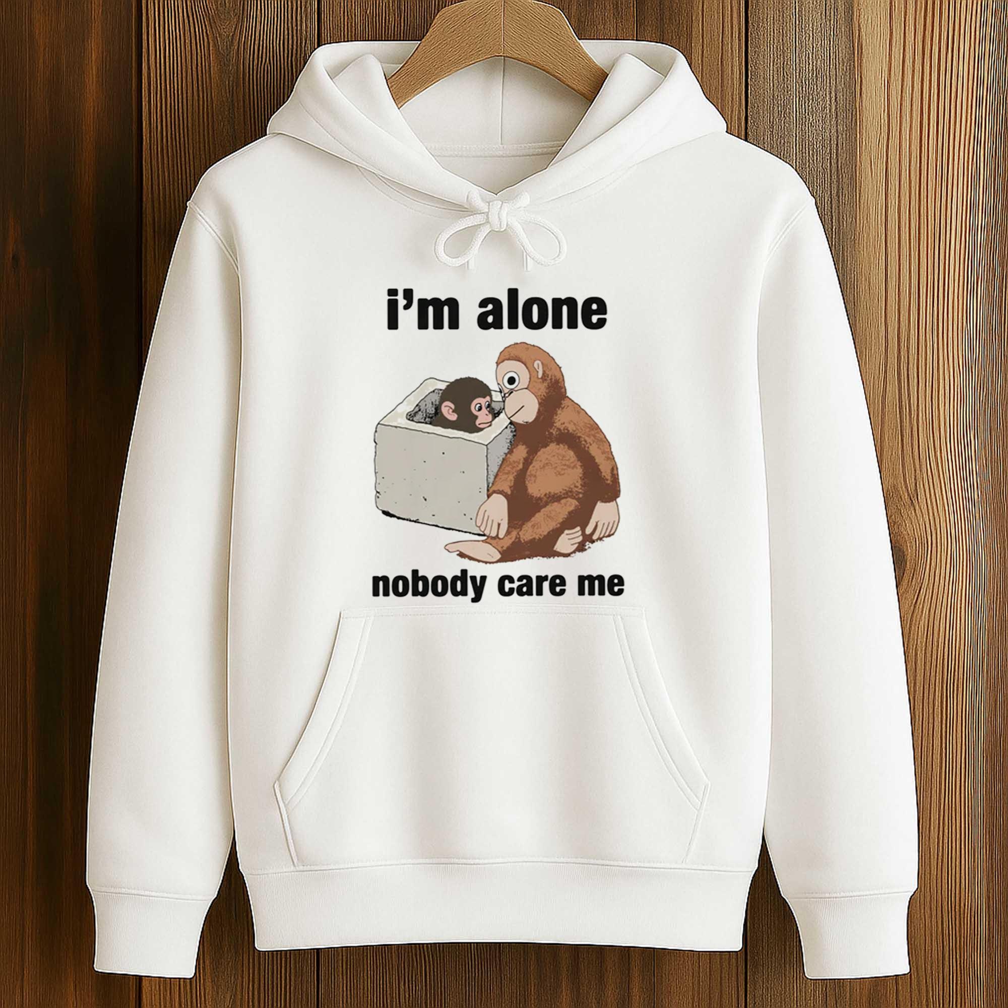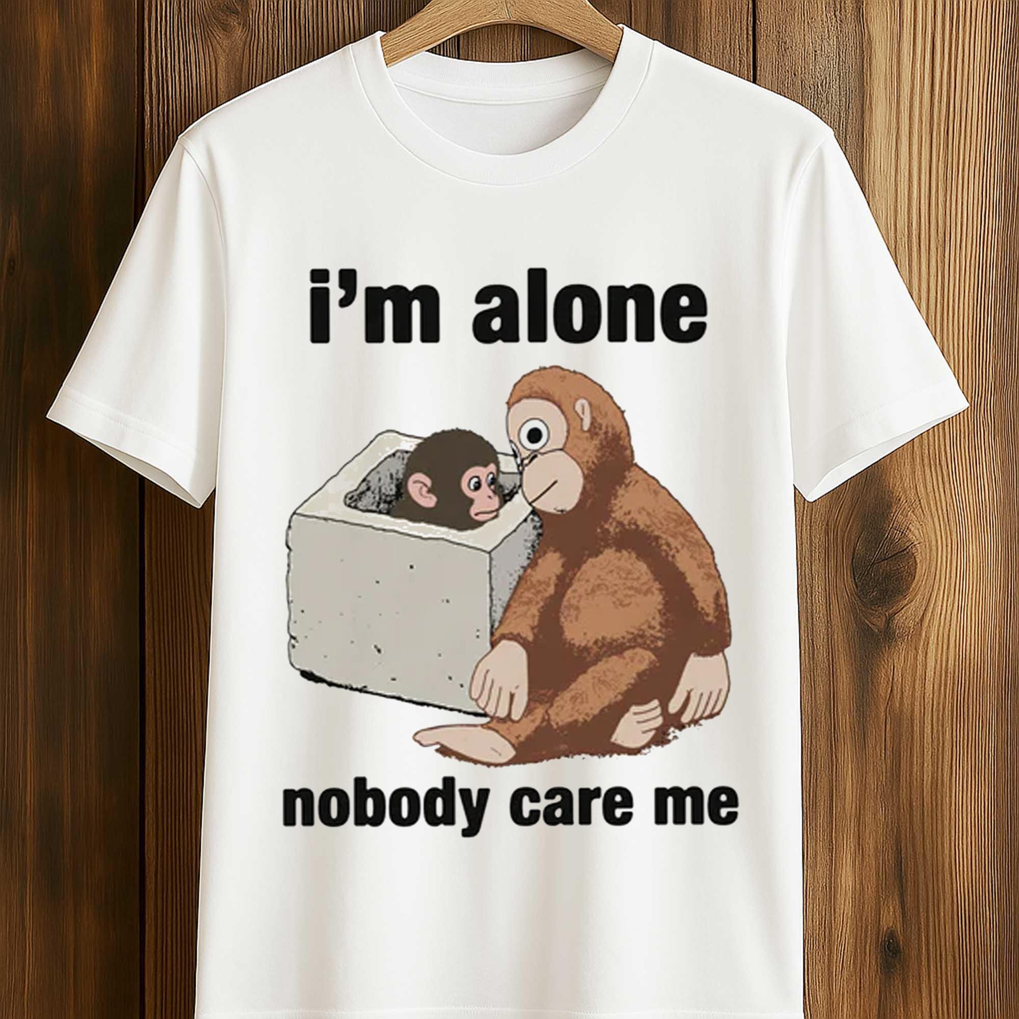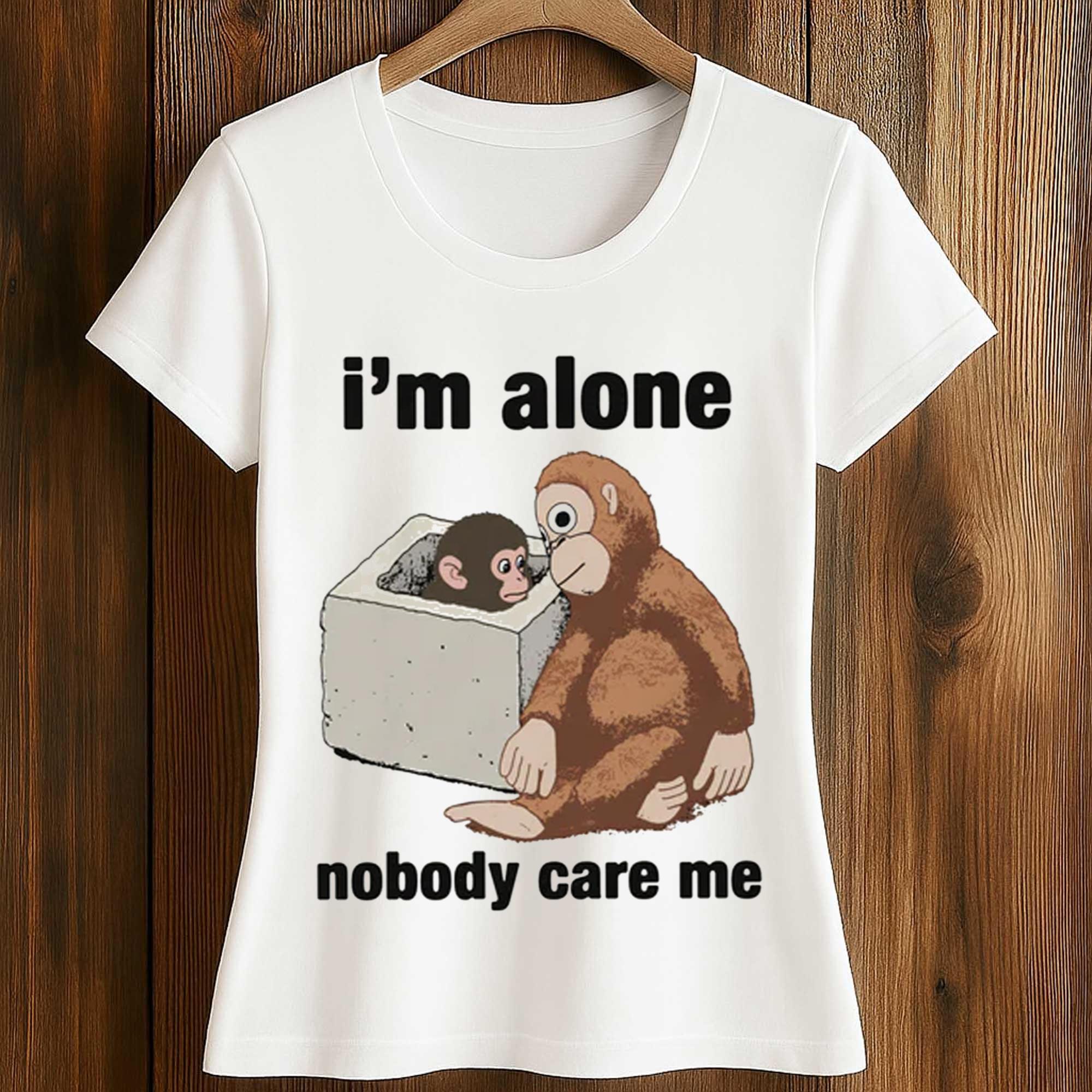 The I’m Alone Nobody Care Me Shirt is gaining attention on social media platforms thanks to its blend of sadness and humor. Inspired by a viral cartoon image, the design shows a small monkey sitting alone next to a larger friend, accompanied by the phrases “I’m lonely” and “nobody cares about me.”