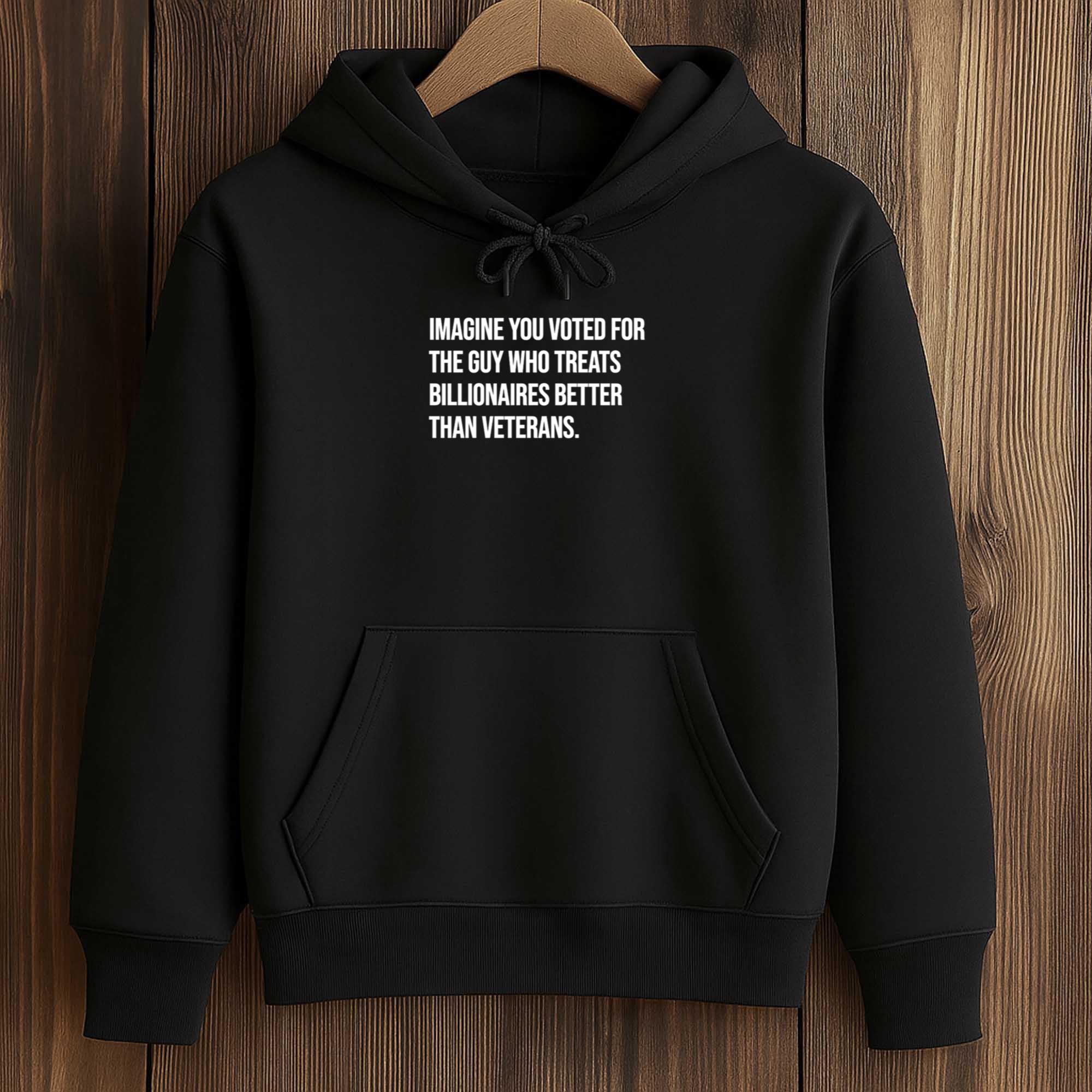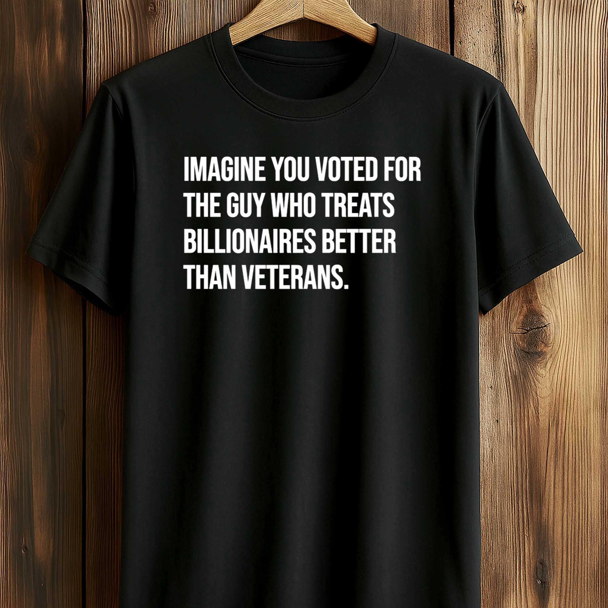 T-shirts with this message are gaining attention again as people seek clothing that illuminates awareness and dialogue rather than just decoration. The Imagine You Voted For The Guy Who Treats Billionaires Better Than Veterans Shirt a higher rate than wealthy people stands out with its direct language and simple presentation. It reflects a growing trend where fashion becomes a way to express opinions and spark dialogue in everyday life.