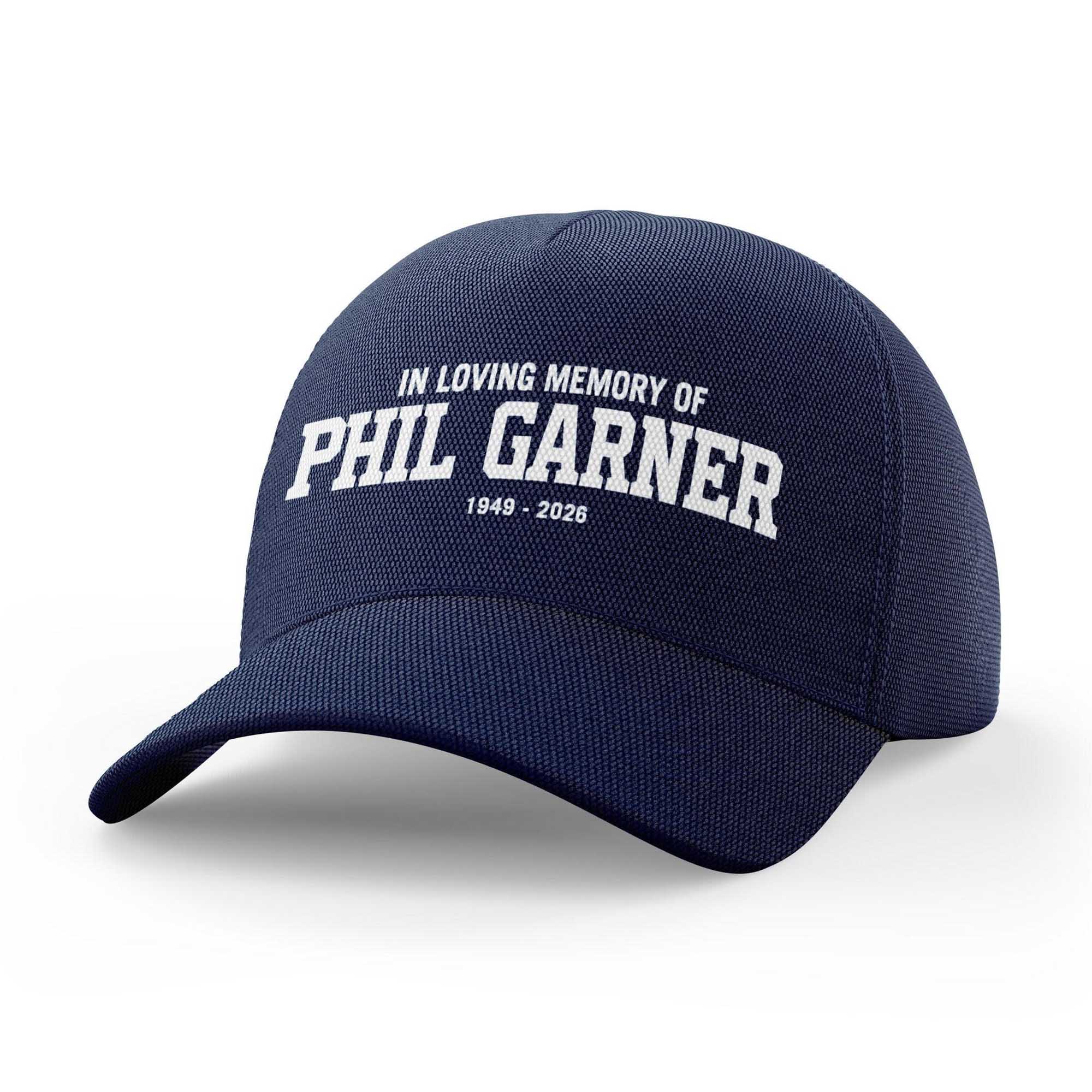 This cap features a deep navy blue background with pristine white lettering for a strong, timeless contrast. The words In Memory of Phil Garner 1949–2026 are placed centrally on the front, creating a balanced and dignified look. The bold yet simple font helps the message stand out clearly. Without any superfluous imagery, the design focuses entirely on meaning, easily complementing various outfits while still conveying deep sentiment.