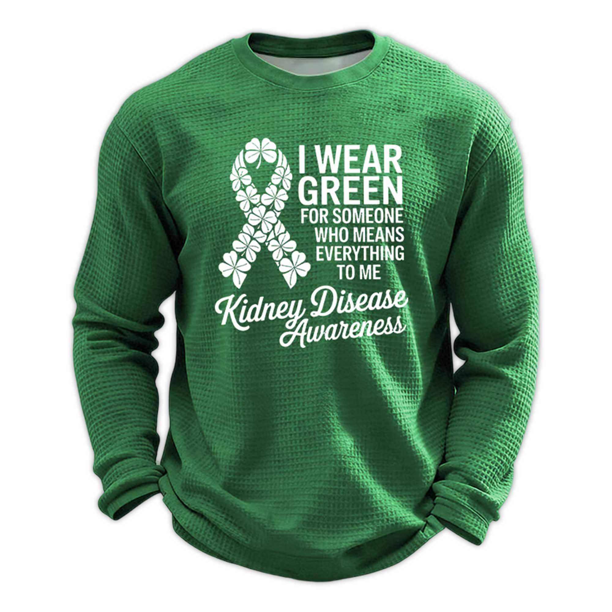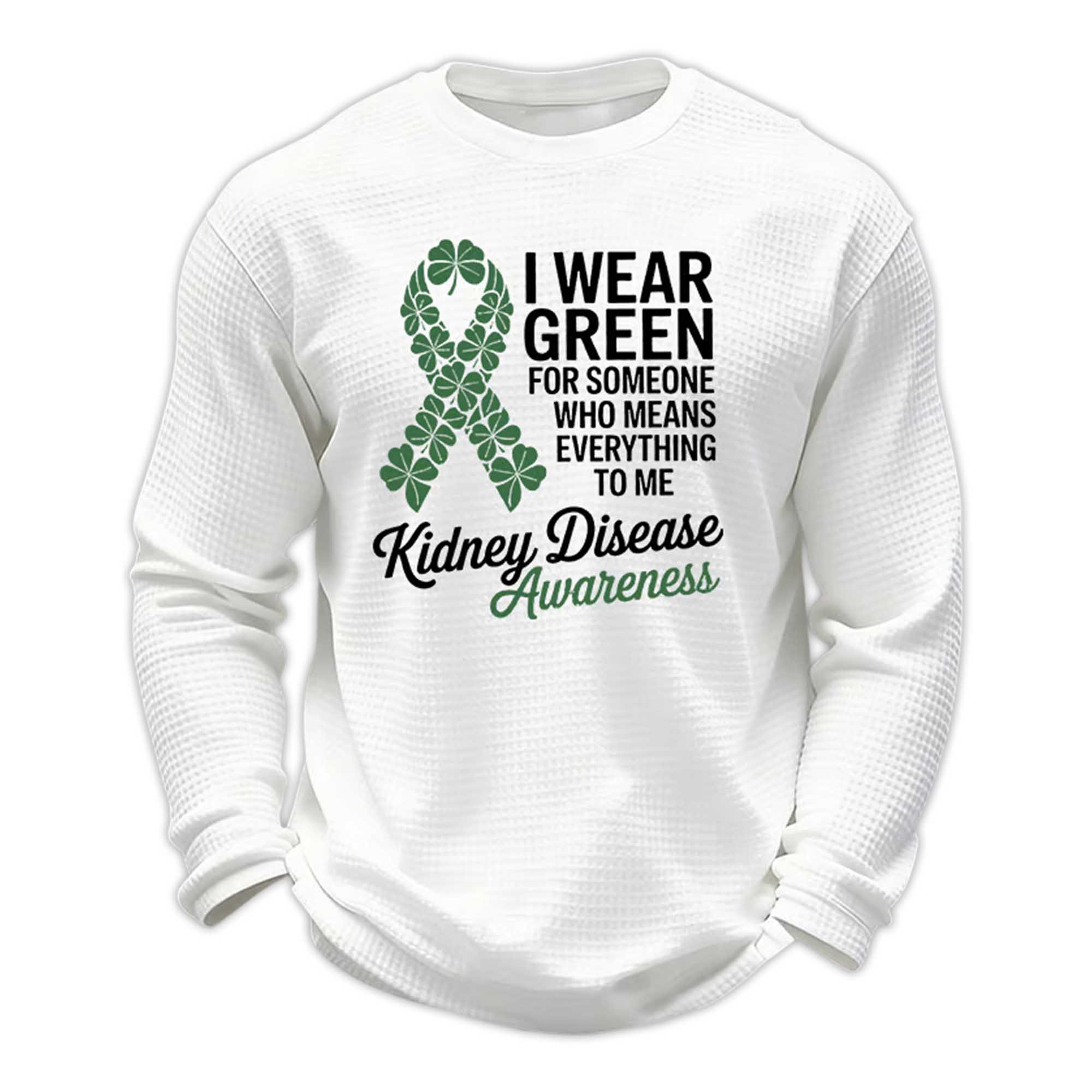 The In March Green We Wear Kidney Disease Awareness Waffle Sweatshirt expresses compassion and solidarity for those affected by kidney disease. March is globally recognized as a time to highlight kidney health and encourage early detection. Wearing green during this month symbolizes support for patients and their families. This sweatshirt conveys a powerful message while offering a comfortable style for everyday wear.