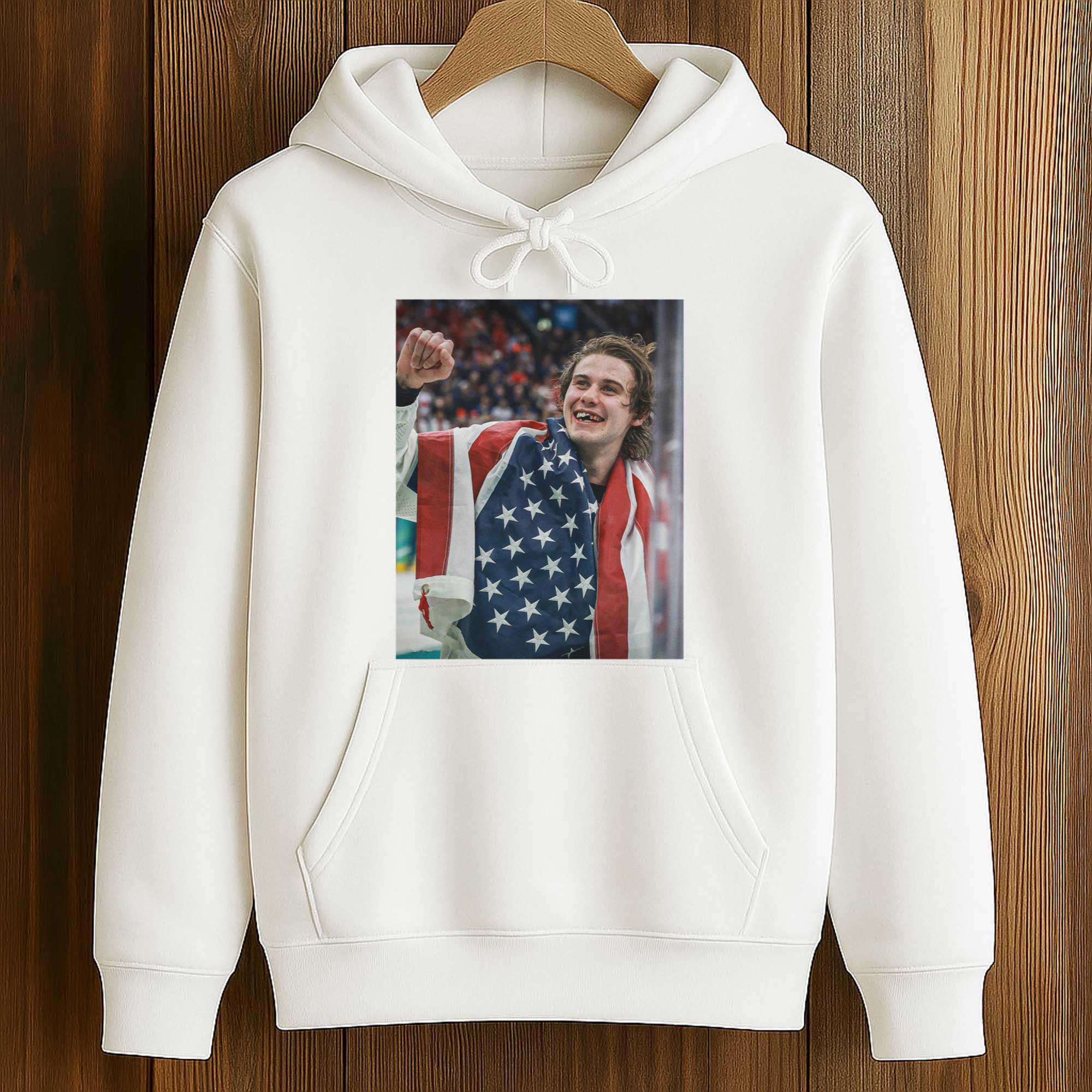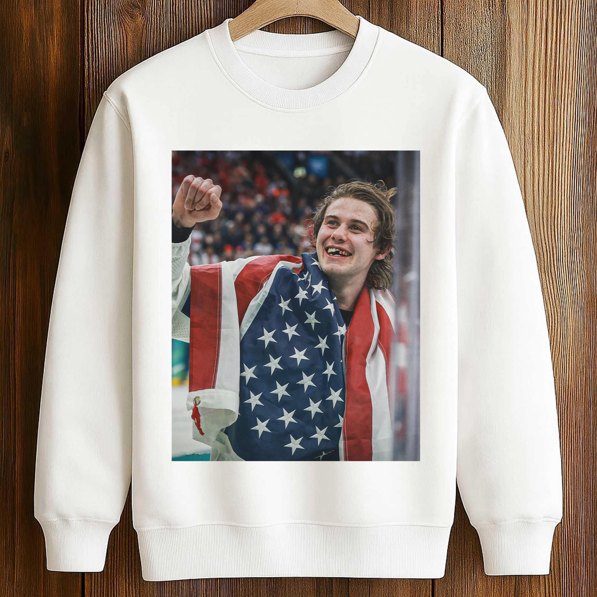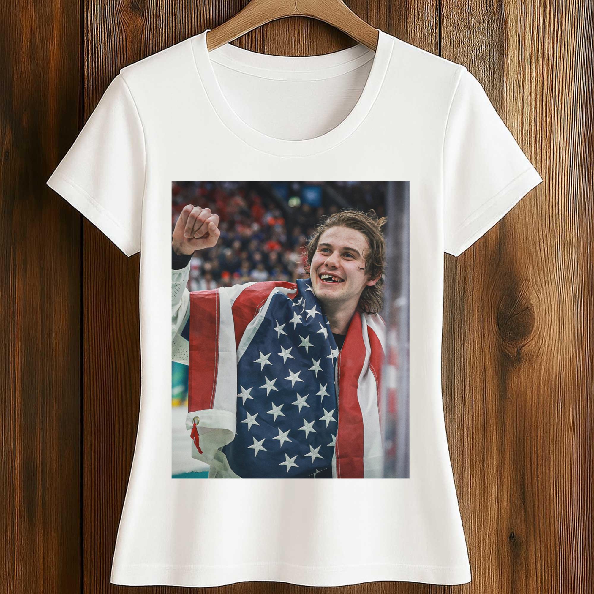 The Jack Hughes USA Hockey Shirt reflects the growing excitement for American hockey on the international stage. As Team USA continues to compete at the highest level, fan apparel inspired by emotional post-game moments has become popular. This design captures the proud image of Jack Hughes enveloped in the American flag, symbolizing unity, passion, and dedication to representing the United States in global competitions.