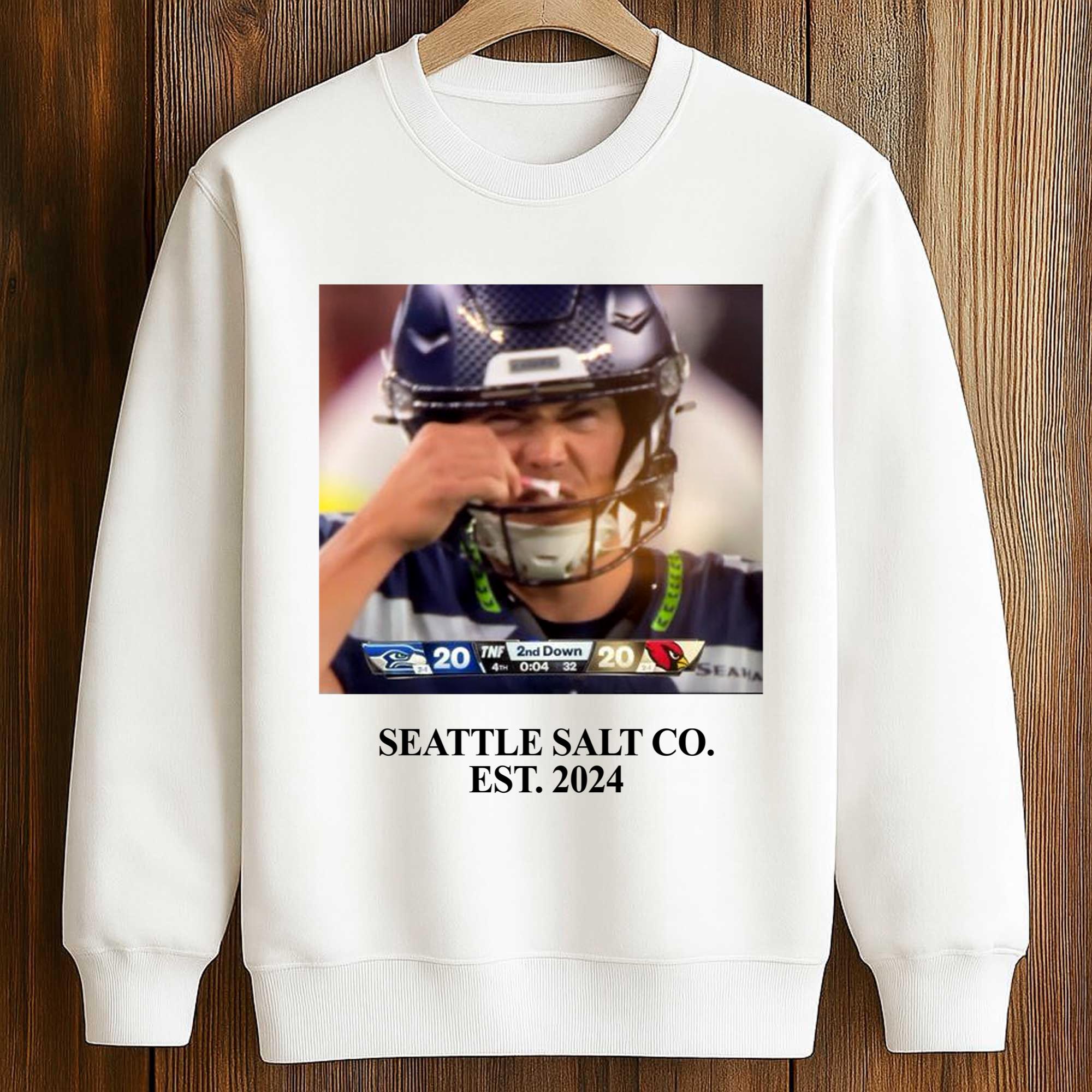 The Jason Myers Seattle Salt Co EST 2024 Shirt reflects a decisive football moment captured in high-definition. The central image highlights focus and competitive spirit, while the “Seattle Salt Co. EST. 2024” lettering adds a confident streetwear touch. This design deeply connects with fans who appreciate Seattle’s determination, precision, and strong football culture.