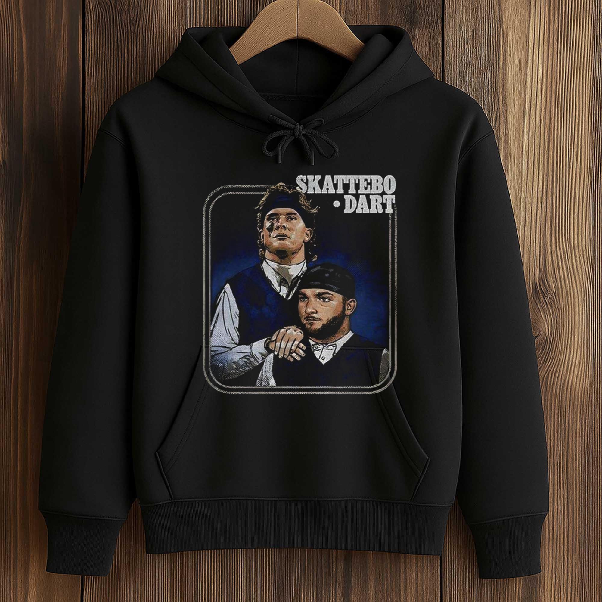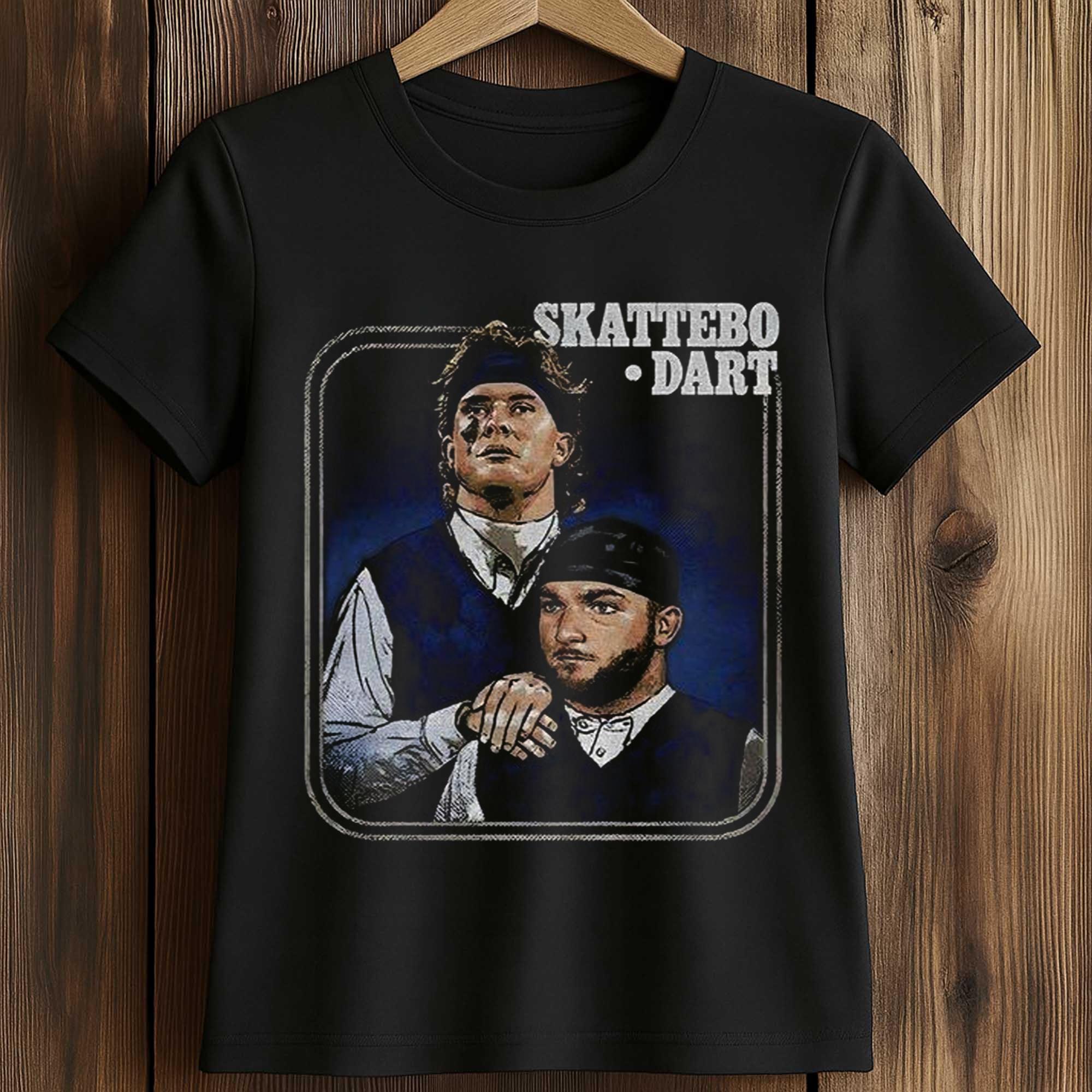 The shirt features a black base with a striking Jaxson Dart and Cam Skattebo graphic, designed to look like a movie poster. With classic colors, sharp portrait graphics, and the bold SKATTEBO • DART” lettering, the design exudes personality. The soft cotton fabric and relaxed fit make it easy to wear on game days, tailgate parties, or evenings out on the town. Comfortable yet bold, it’s perfect for those who love a sporty look.