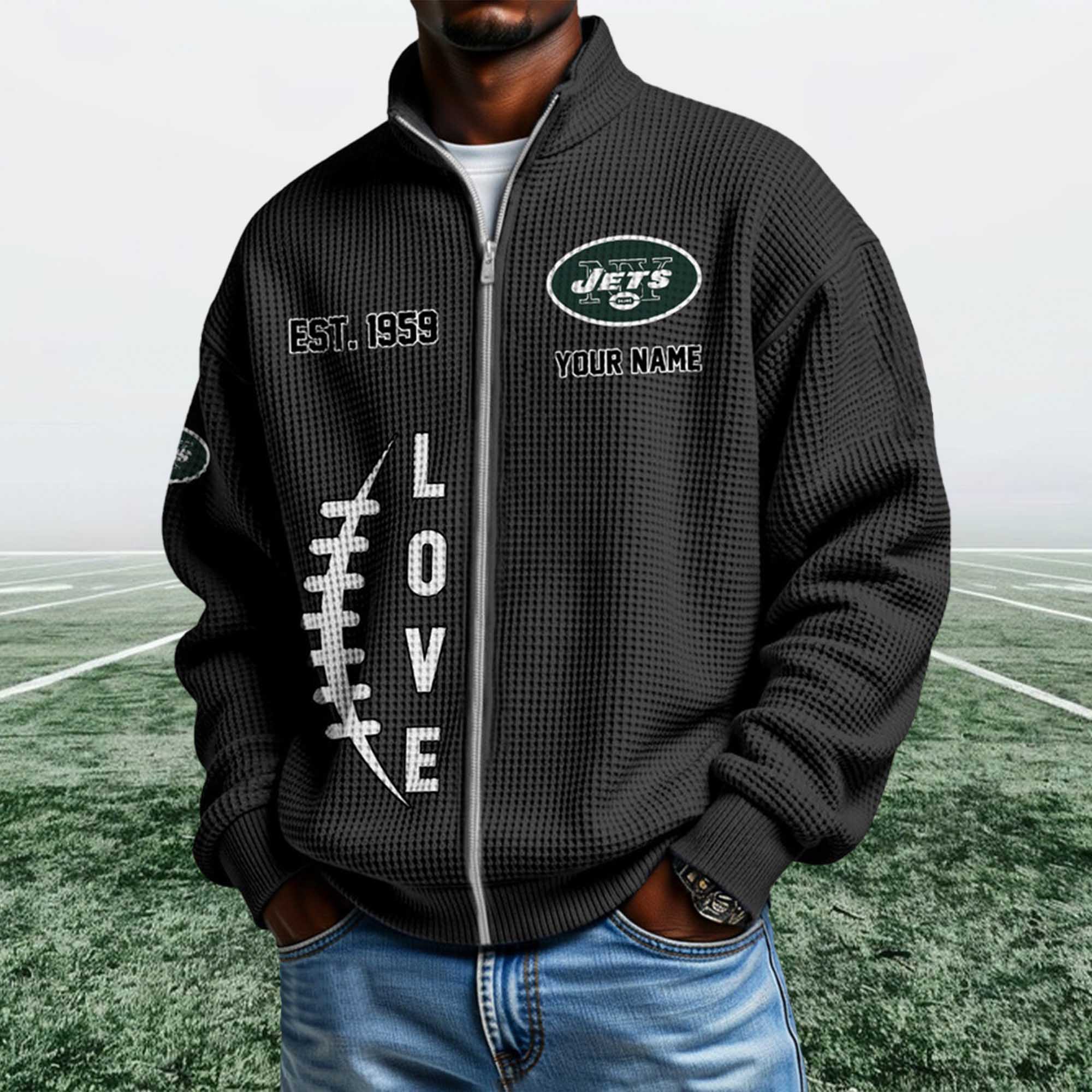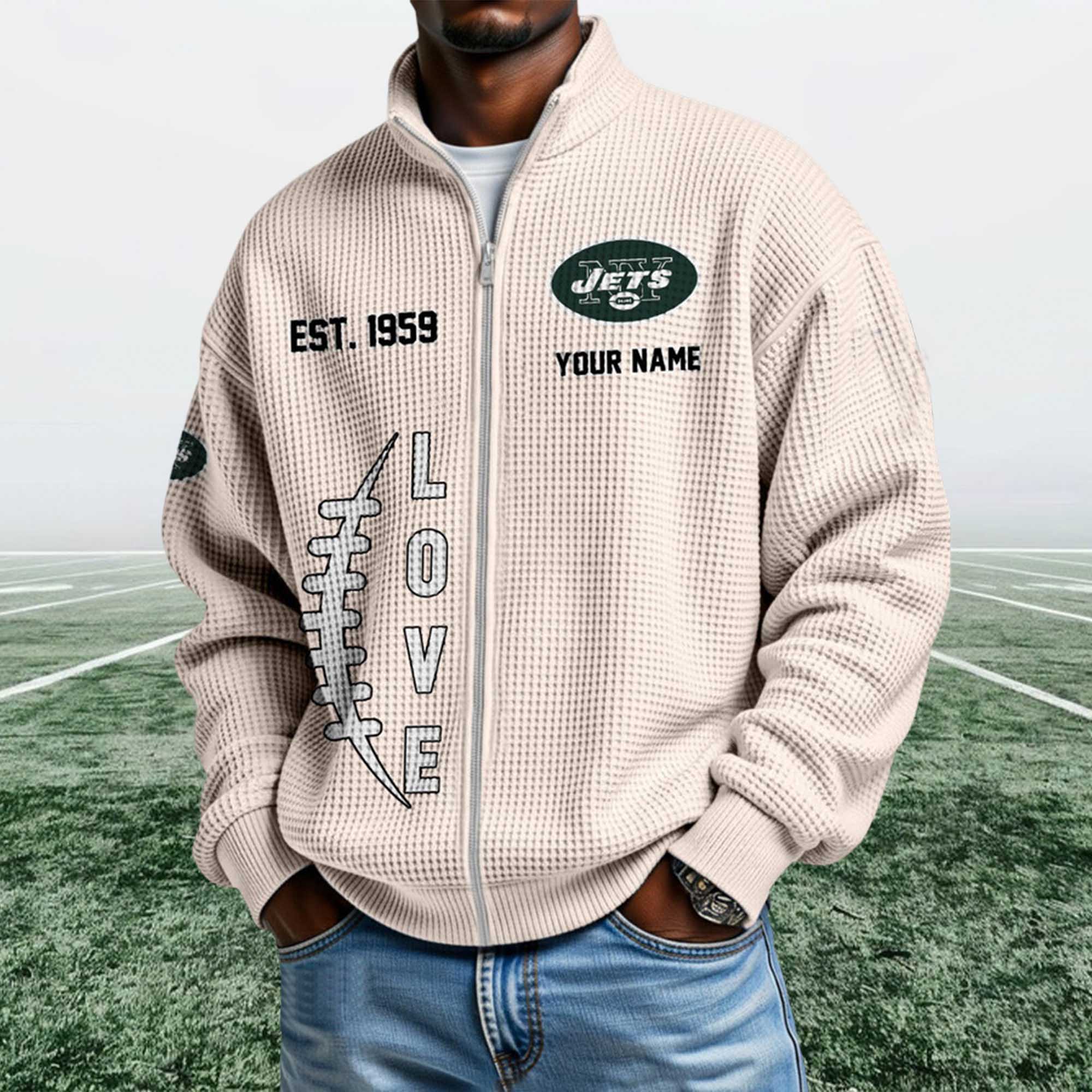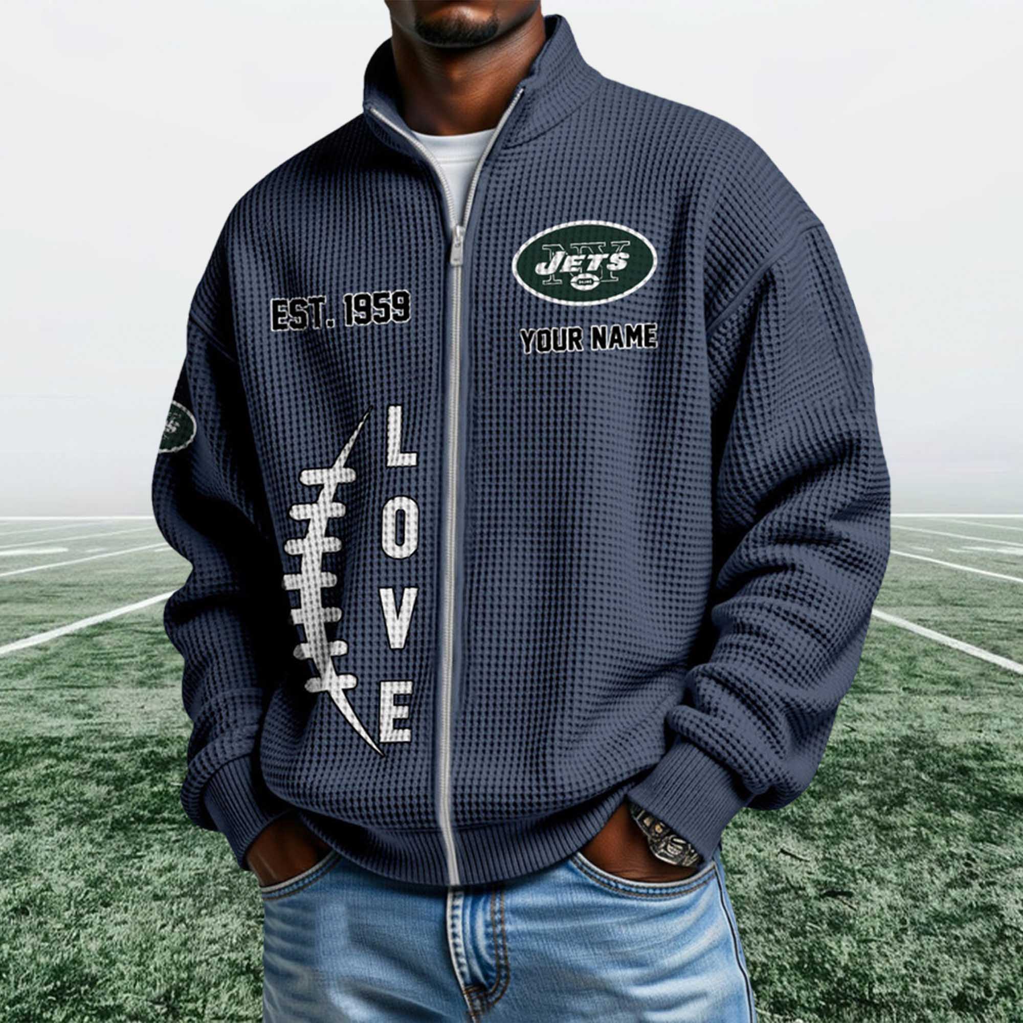The Jets EST 1959 Quarter Zip Waffle Sweatshirt reflects classic soccer culture through a simple yet bold visual approach. The waffle weave adds texture and warmth without feeling heavy. The ¼ zip-up collar allows for easy adjustment throughout the day, while Jets-themed graphics and EST 1959 details emphasize the team’s long-standing pride. This sweatshirt is perfect for everyday wear, sporting events, or relaxing weekends.