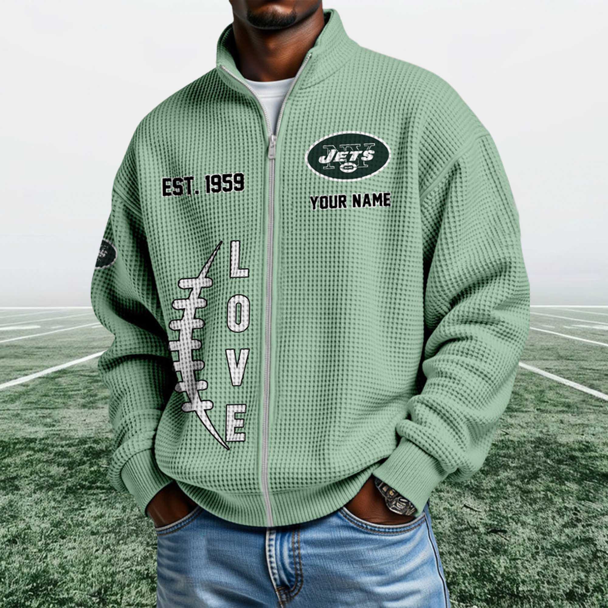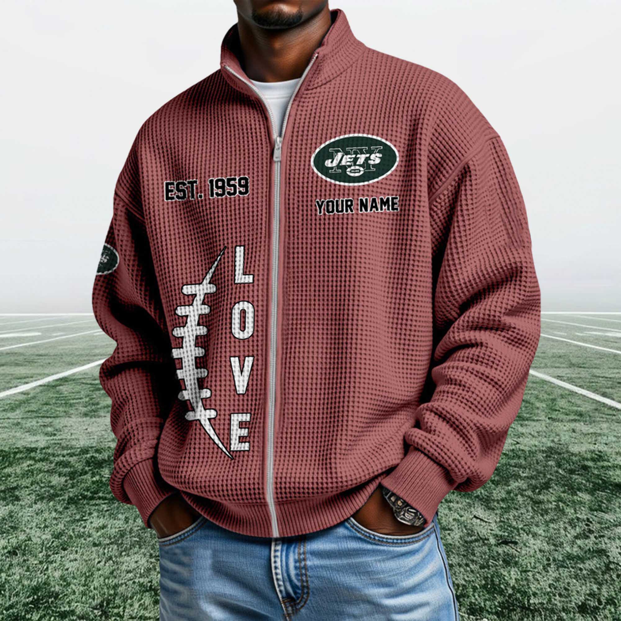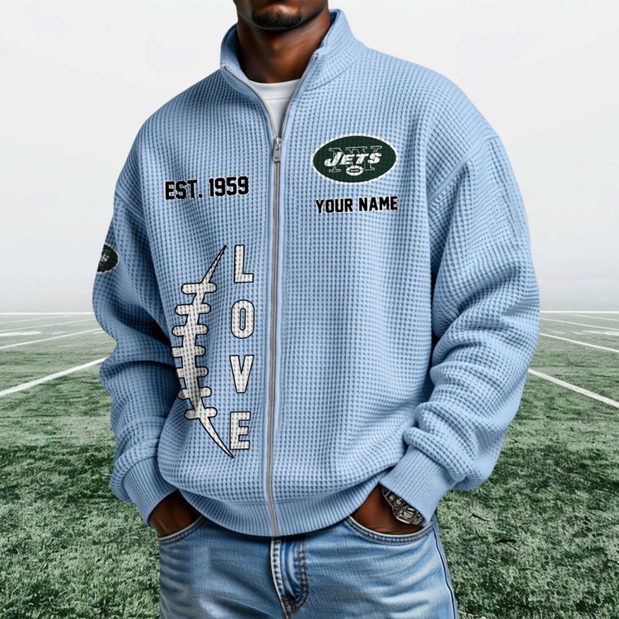 The Jets EST 1959 Quarter Zip Waffle Sweatshirt reflects classic soccer culture through a simple yet bold visual approach. The waffle weave adds texture and warmth without feeling heavy. The ¼ zip-up collar allows for easy adjustment throughout the day, while Jets-themed graphics and EST 1959 details emphasize the team’s long-standing pride. This sweatshirt is perfect for everyday wear, sporting events, or relaxing weekends.