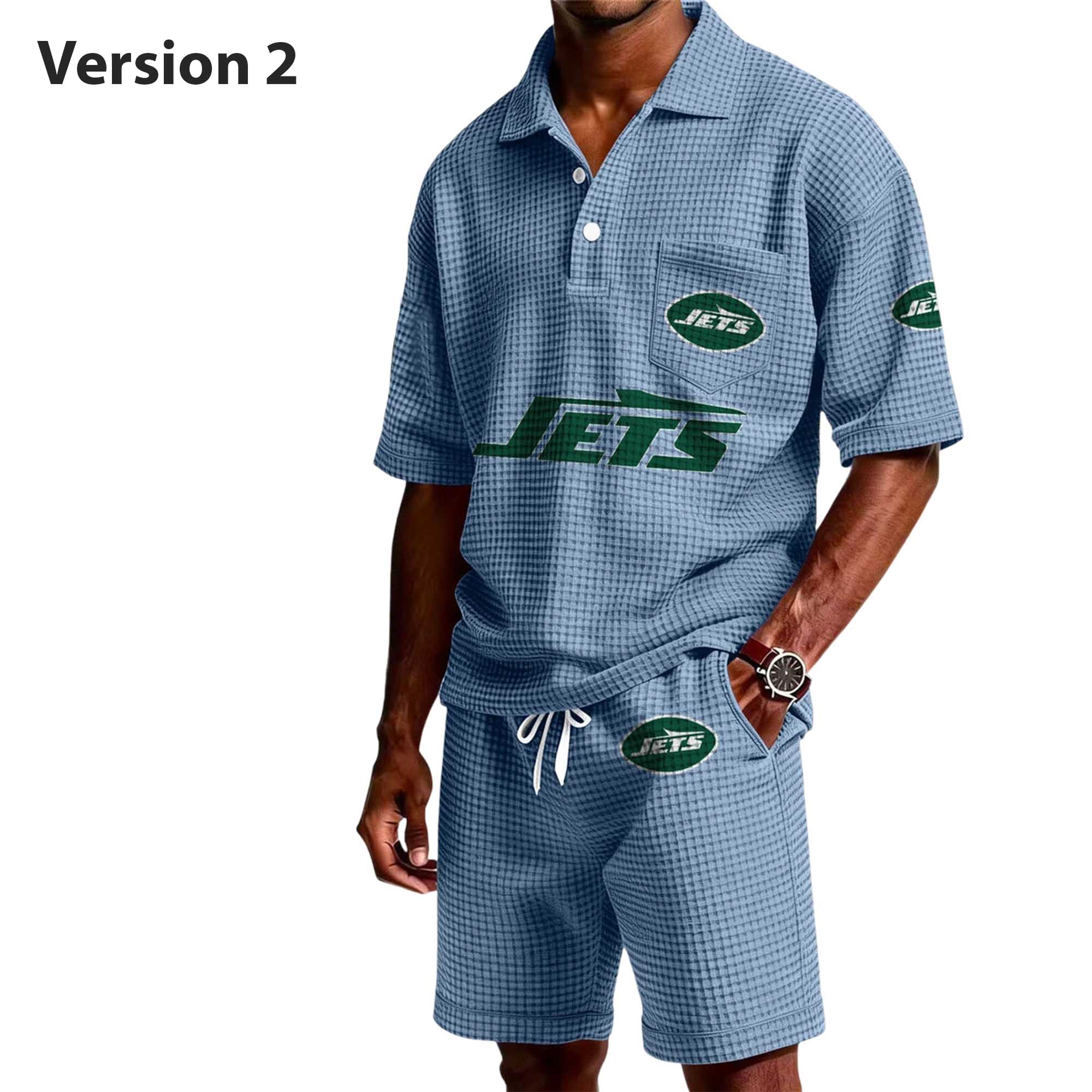 This outfit combines refined materials with carefully placed team signature details. The EST 1959 lettering adds a classic feel, while the Jets logo is positioned for balance and easy recognition. The short-sleeved polo shirt provides a neat, polished look, while the loose-fitting shorts offer comfort. The easy-to-match color combination makes the outfit versatile for everyday wear.