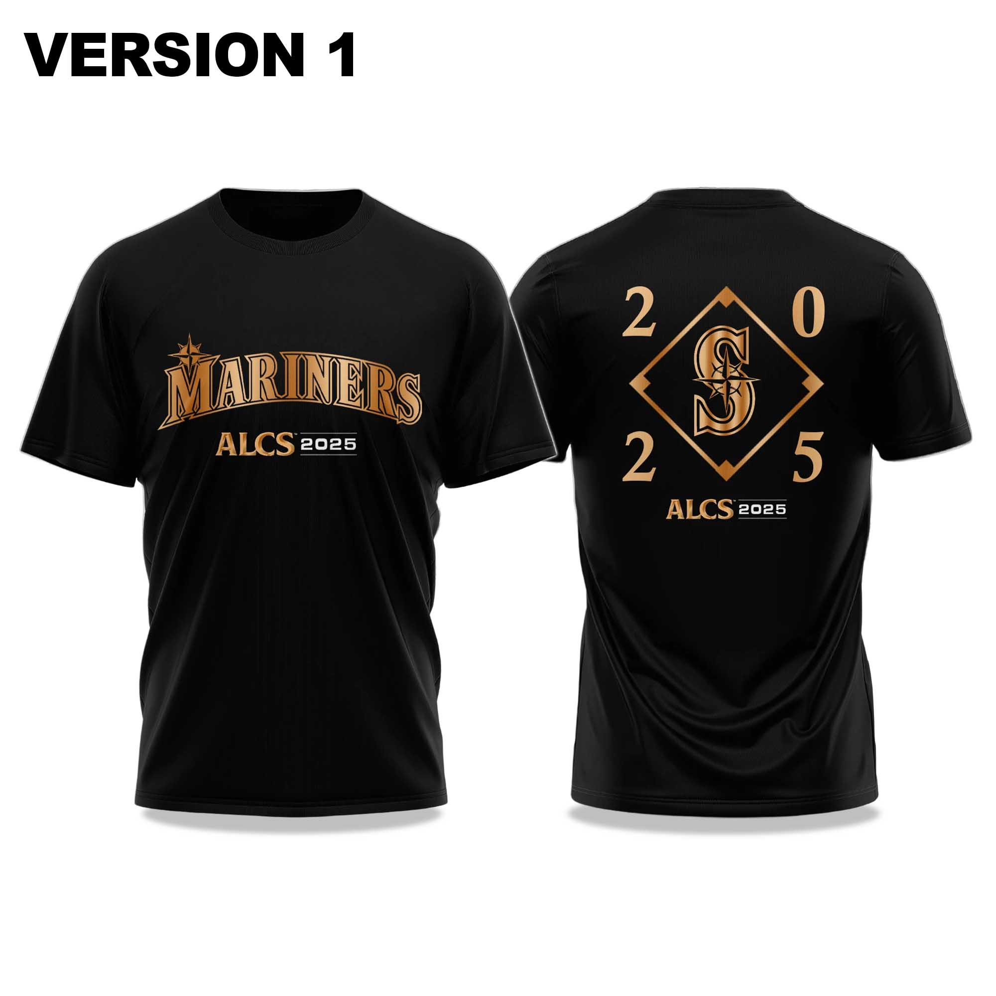 Front: A bold yellow “Mariners ALCS 2025” graphic is centered for a clean, bold look.