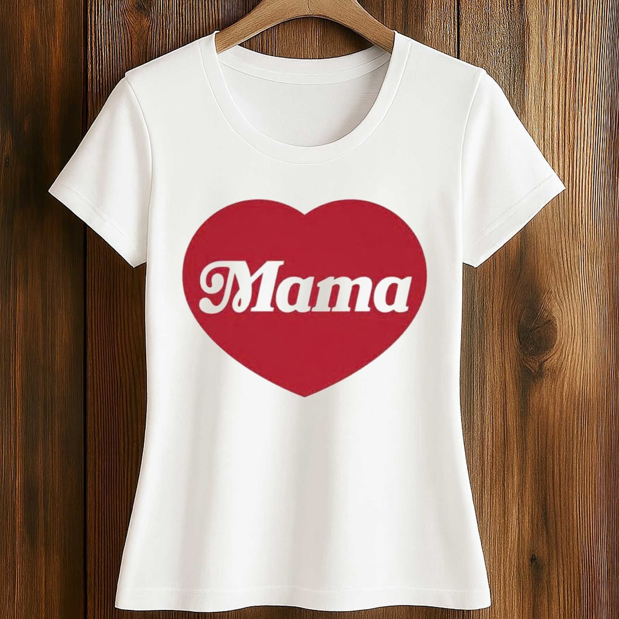 The highlight of this shirt is the bold red heart combined with the elegant Mama lettering, creating a design that is both loving and fashionable. The contrast between the white background and the vibrant image ensures visibility, while the balanced placement keeps the look neat and modern. It’s a design that speaks volumes through simplicity.