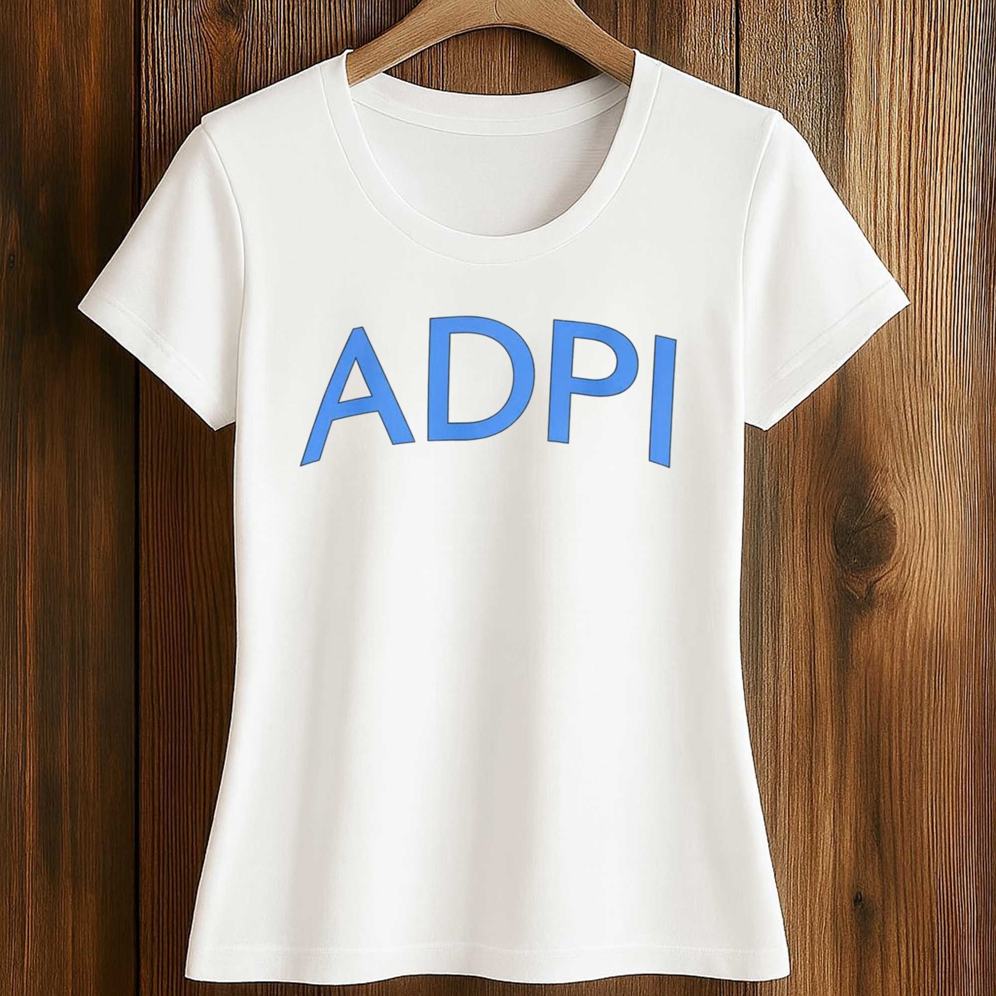 The shirt features a large, bright blue ADPI logo prominently displayed on the chest. The bold yet clean design is easily noticeable without being overly elaborate. This minimalist style gives the shirt a modern look suitable for many occasions. The color contrast adds freshness, while the simple design makes it easy to pair with jeans, shorts, or layered outfits.
