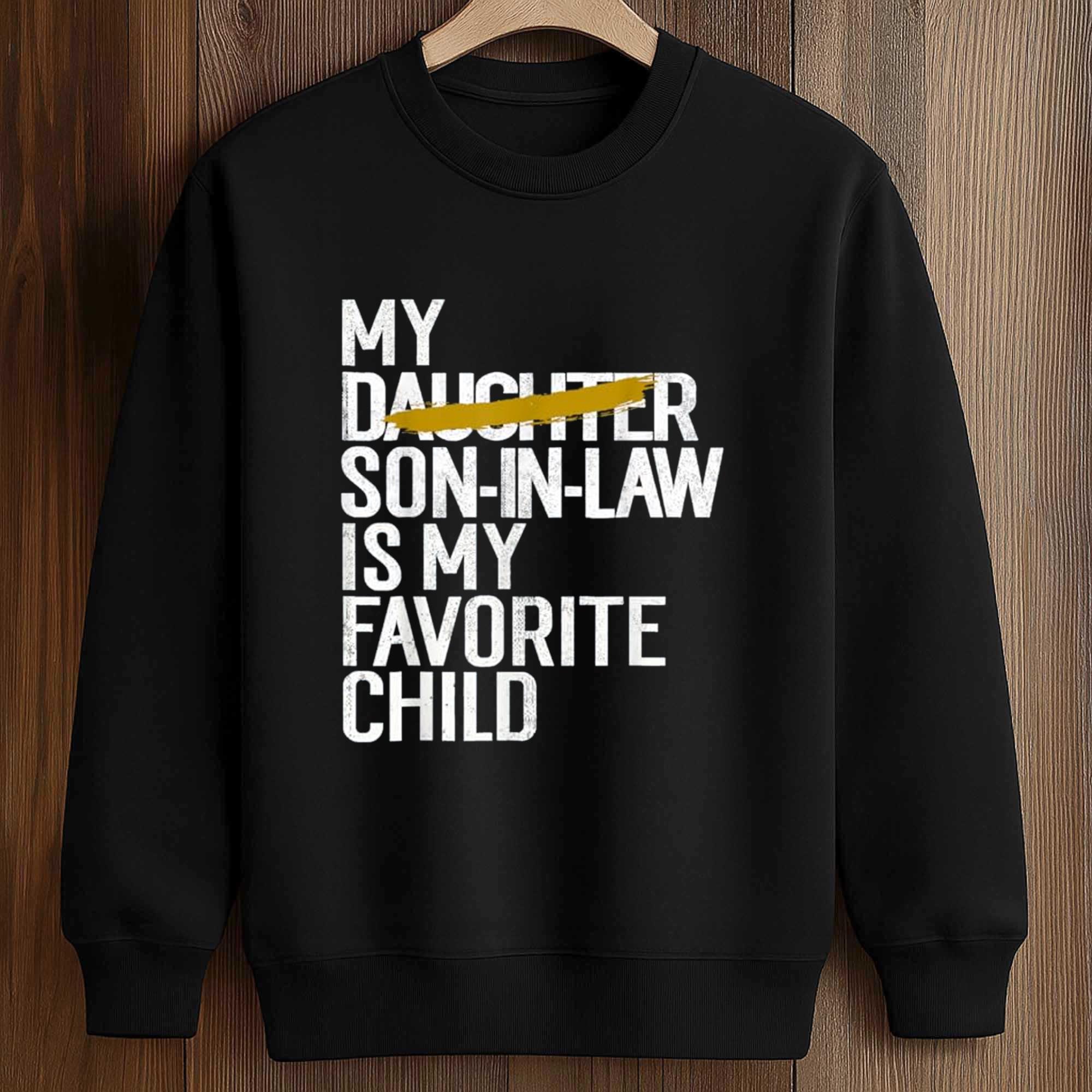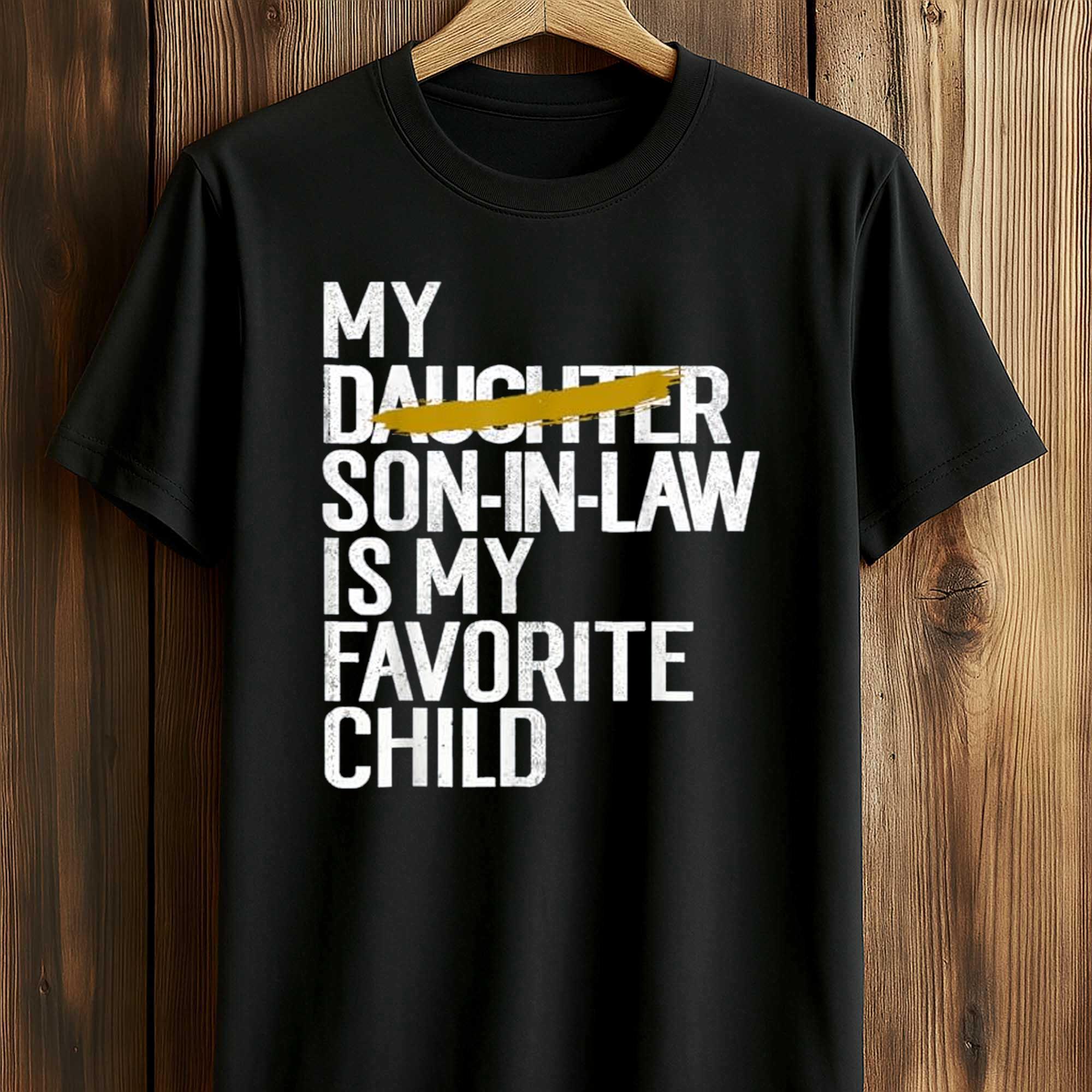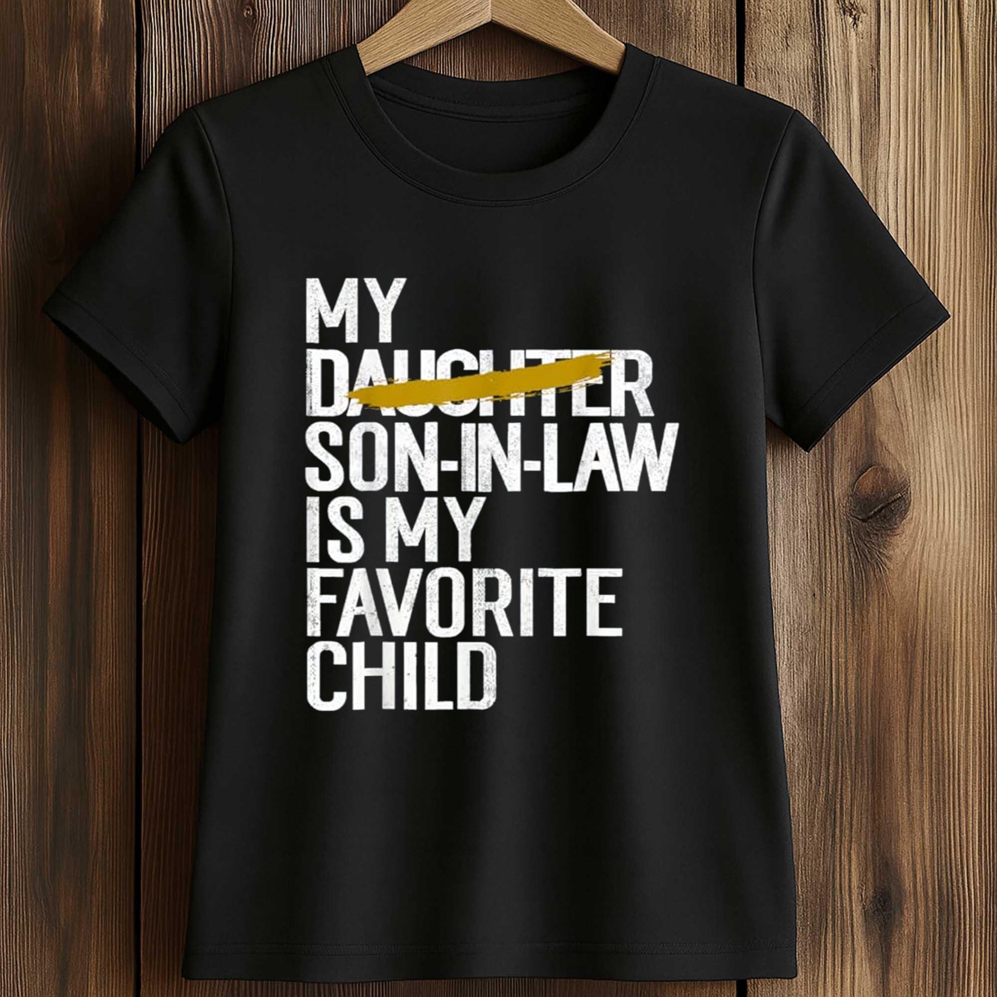 Humorous family-themed t-shirts are trending as gifts for parents, especially designs that celebrate sons-in-law/daughters-in-law with witty satire. The My Daughter Son In Law Is My Favorite Child Shirt stands out thanks to its clever wordplay, turning a simple phrase into a memorable joke. This style is perfect for modern families who appreciate subtle honesty and fashion that expresses individuality.