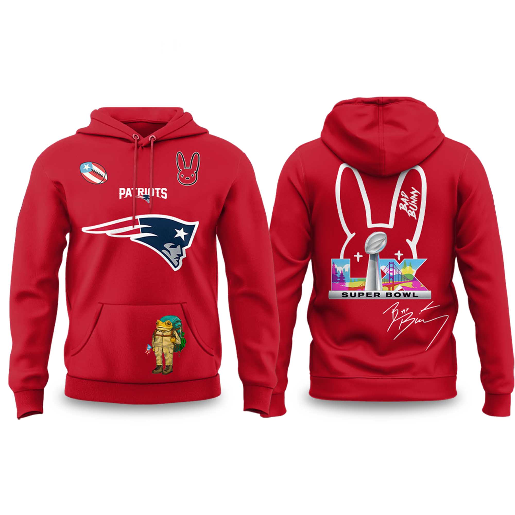 NE Patriots x Bad Bunny Bowl LX Hoodie – Street Style Combined with Game Day Style