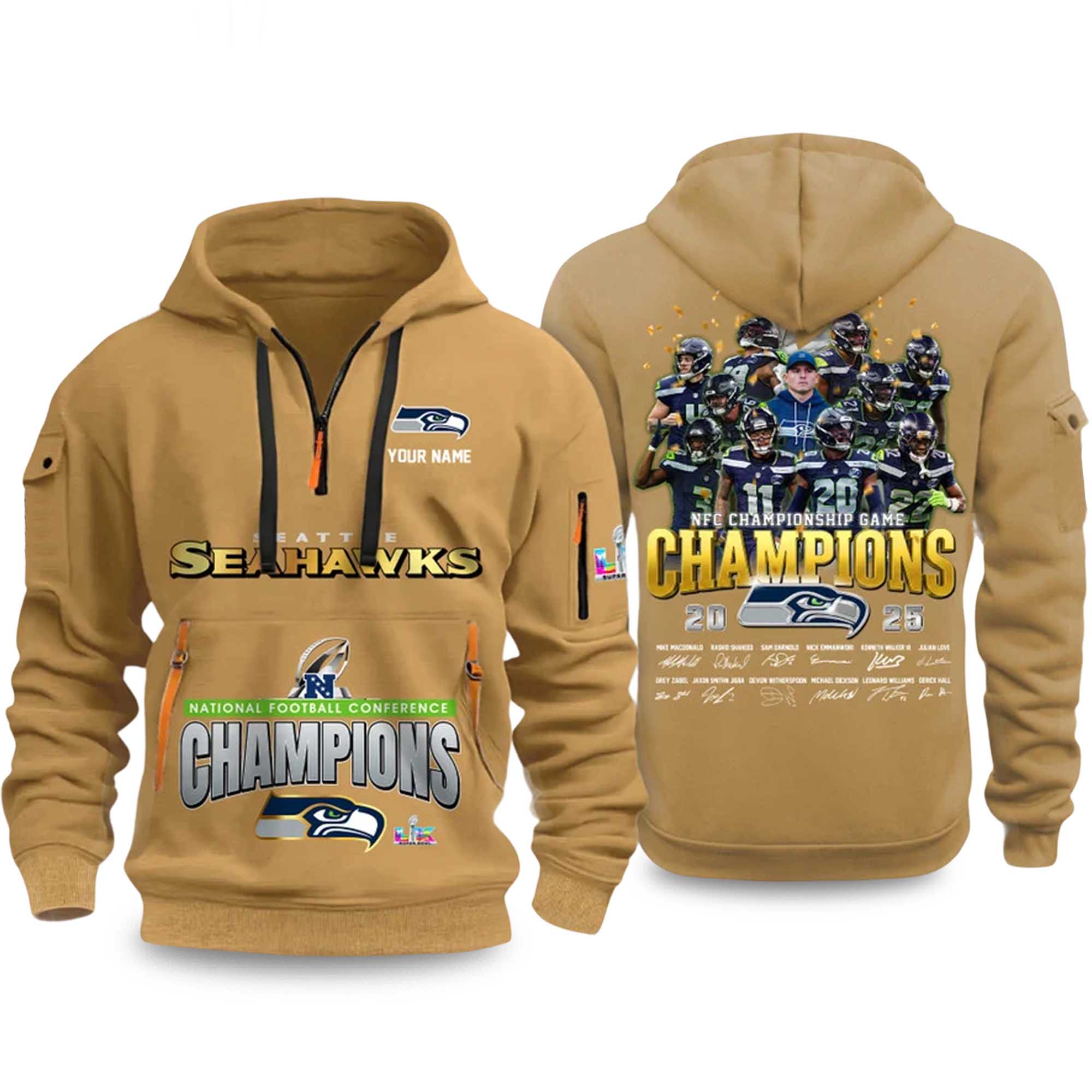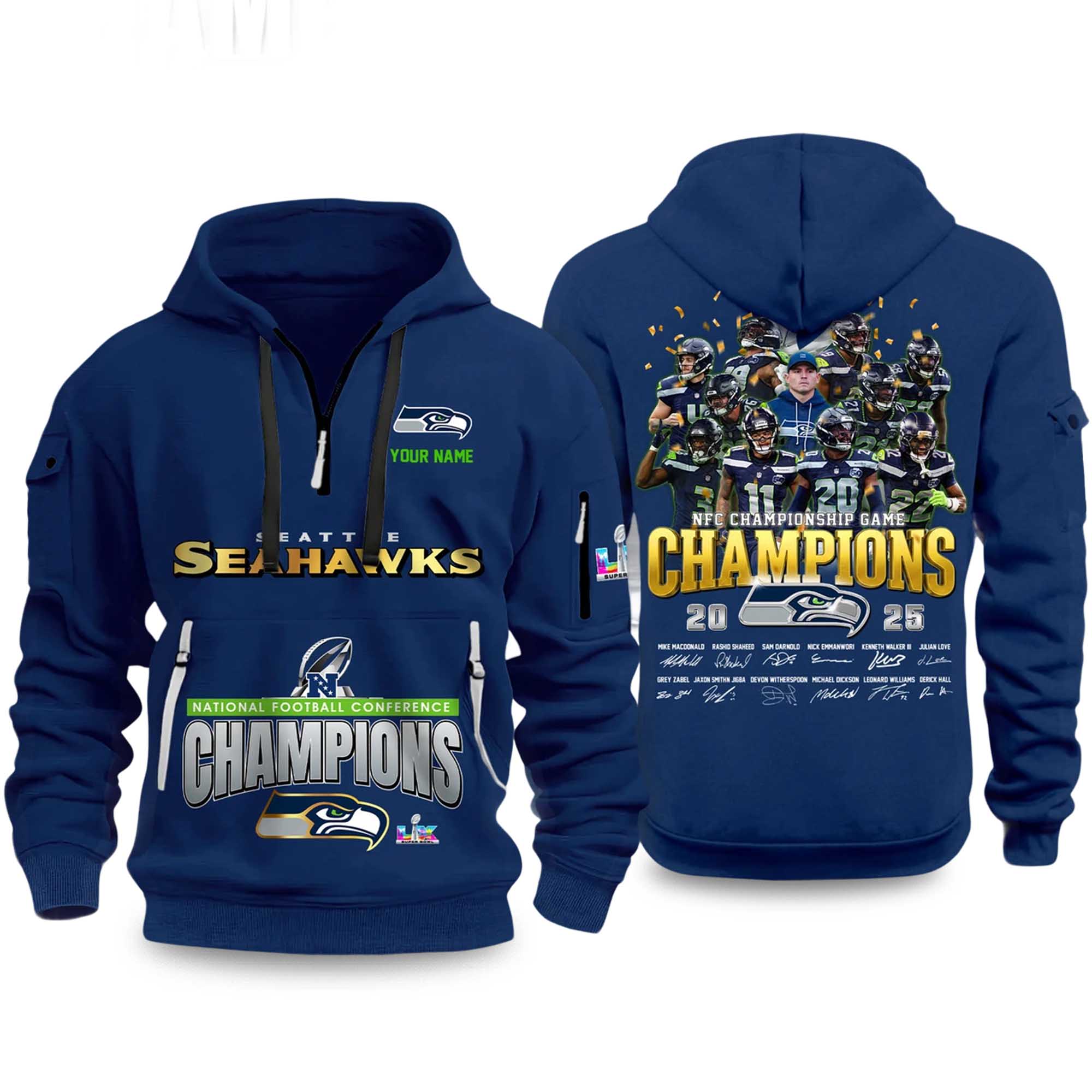 The NFC Championship Game 2025 2026 Seahawks Quarter Zip Hoodie embodies the intensity and pride of a season that brought the Seattle Seahawks back to the forefront of championship contention. This hoodie reflects a significant milestone on the road to the biggest stage in American football. Designed for fans who have followed every play, it celebrates teamwork, resilience, and the unforgettable atmosphere surrounding the NFC Championship journey.