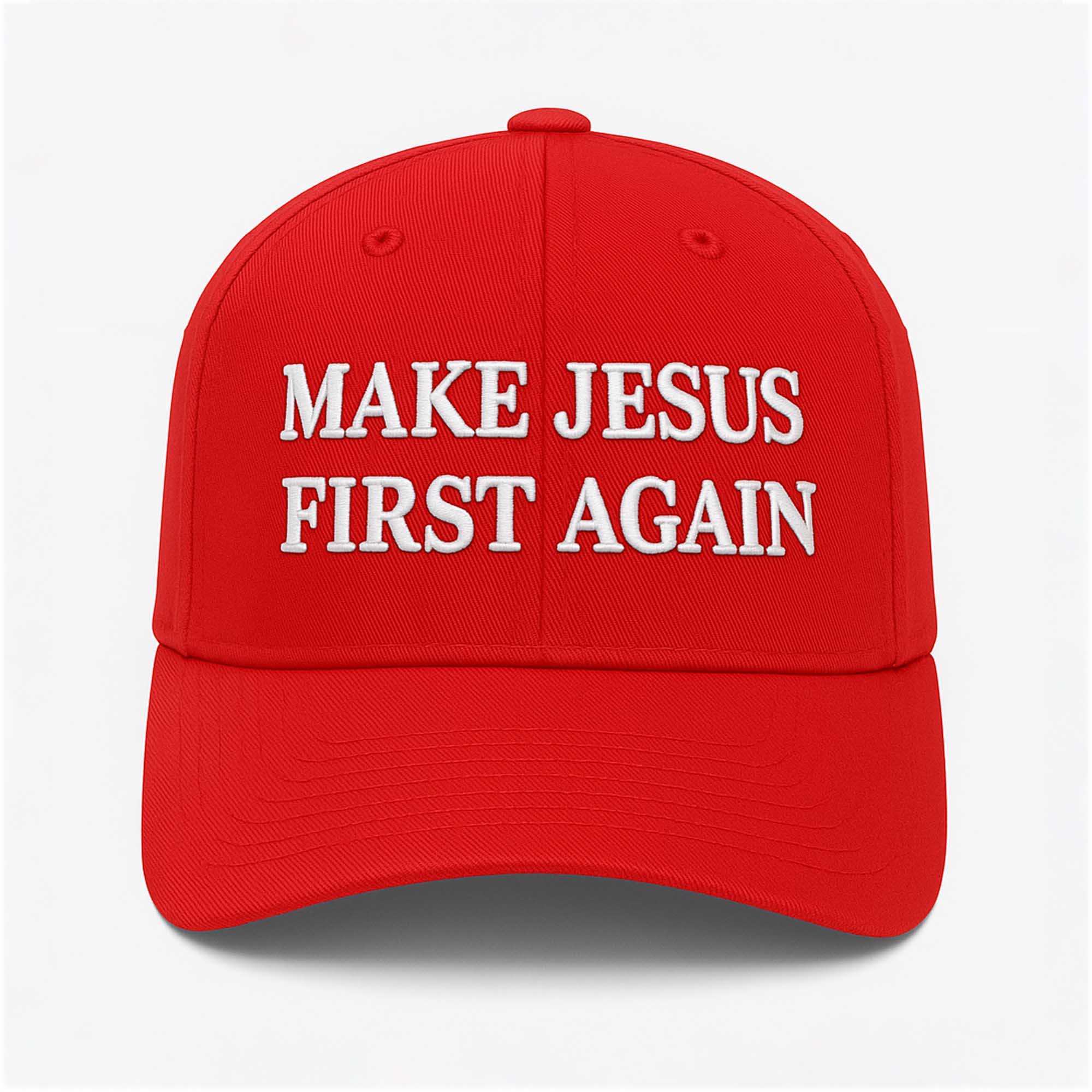 This hat features a six-piece construction with a curved brim for classic comfort and sun protection. The words MAKE JESUS AGAIN AGAIN” are embroidered in crisp white letters on the front, symbolizing purity and faith. Made from premium cotton twill, the hat ensures breathability and durability. The adjustable strap at the back allows for the perfect fit, while the vibrant red color symbolizes both passion and faith. Simple yet striking, this hat offers a timeless design with a clear purpose.