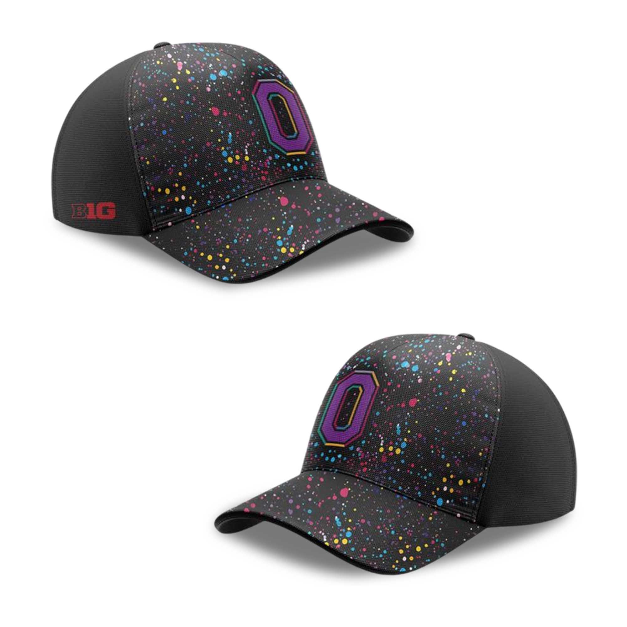 The black body of the shirt features a vibrant Ohio State rainbow “O” logo on the chest, combined with Crucial Catch graphics at the top. The back of the shirt features bold “OHIO STATE” and a “0” in the middle for a balanced, eye-catching look. A subtle red BIG 10 logo on the sleeve adds a personal touch. The breathable fabric keeps you comfortable all day long.