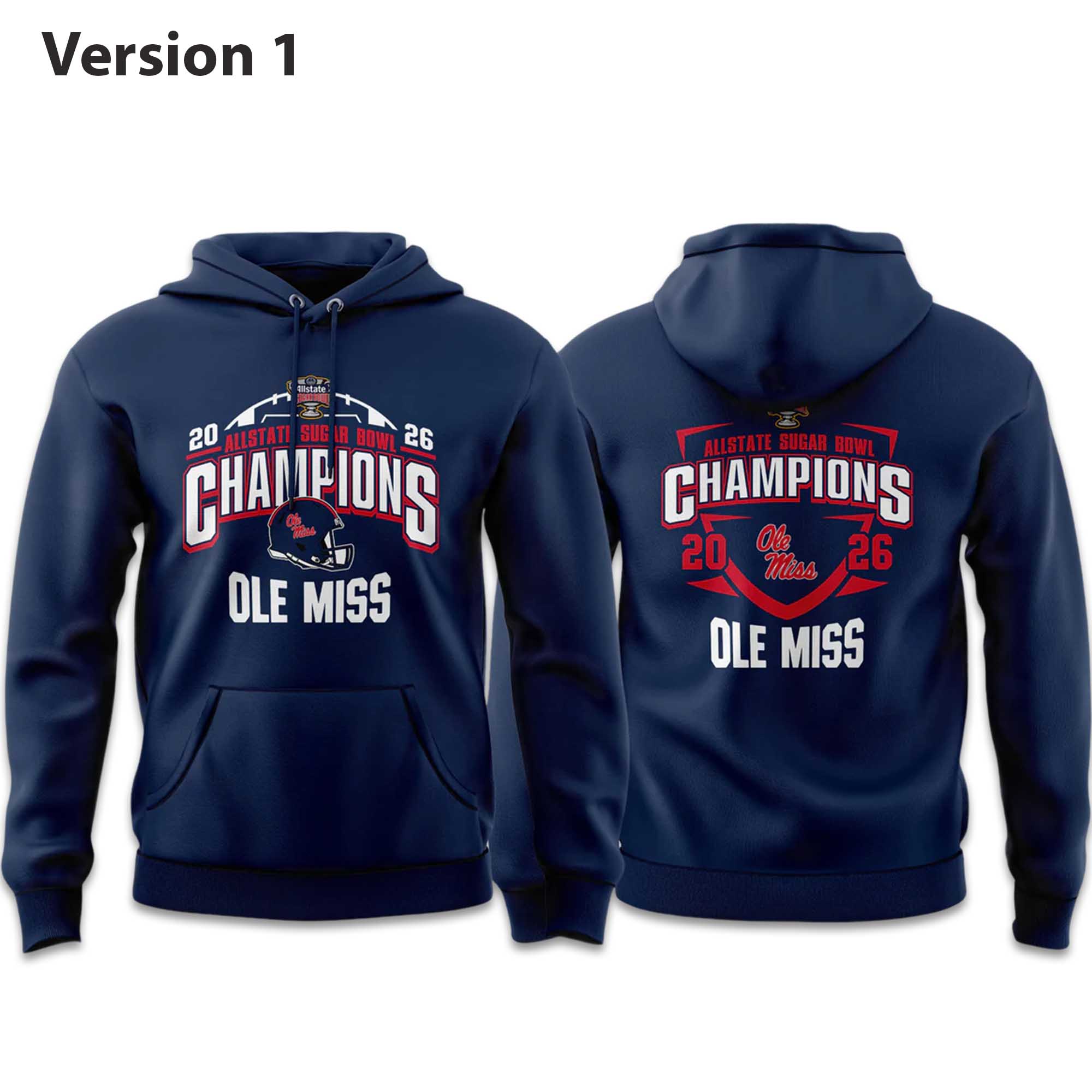 This hoodie stands out thanks to its clean layout and strong visual balance. High-contrast colors keep the championship message clear, while the double-sided print adds depth without being overwhelming. The classic hoodie style feels familiar and versatile, making it easy to wear for many seasons while still retaining the pride of Ole Miss.