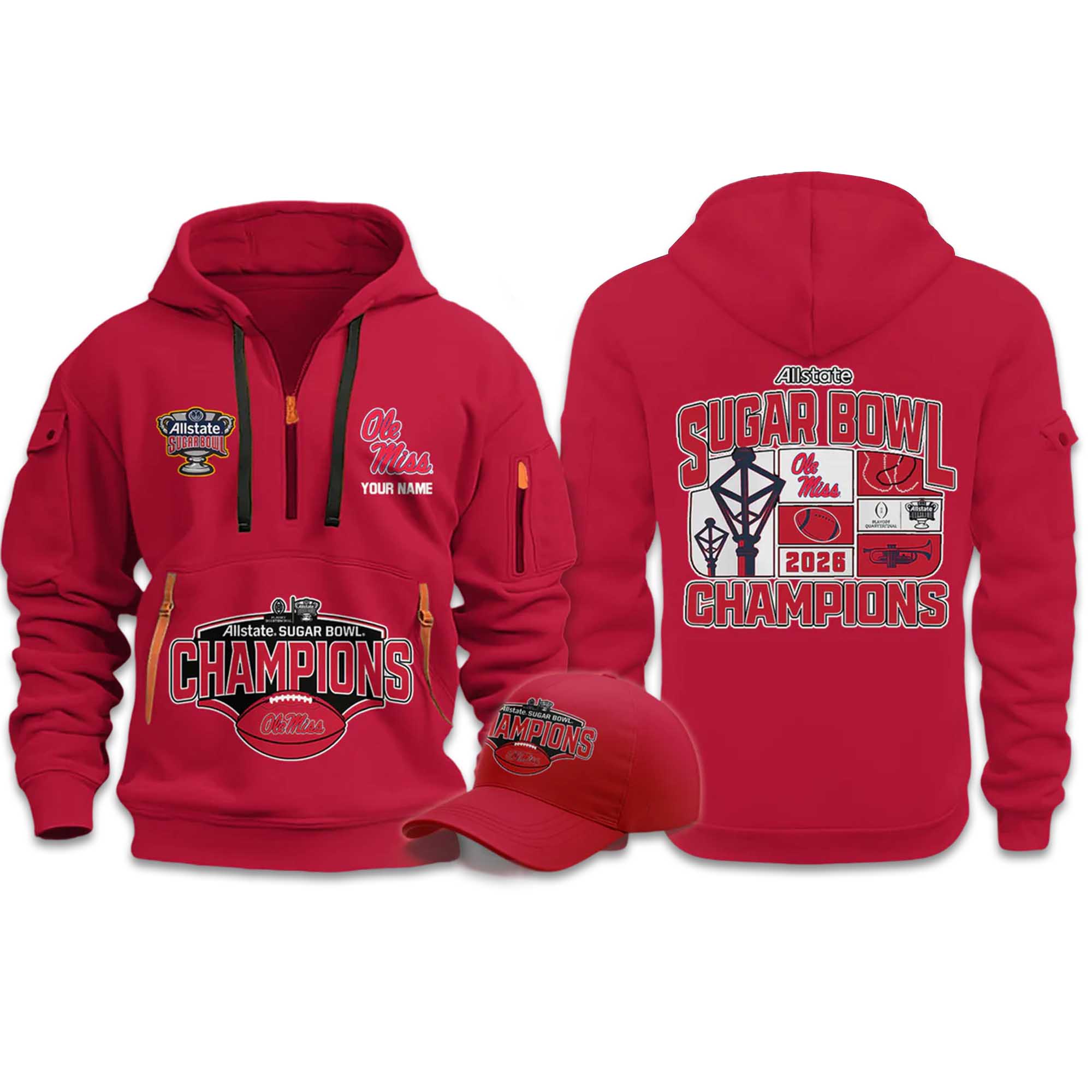 The Ole Miss Rebels 2026 Sugar Bowl Champions Quarter Zip Hoodie celebrates a season that will be etched in fans’ hearts for years to come. Following their unforgettable Sugar Bowl performance, the Rebels proved their strength on the national stage. This hoodie reflects that achievement in a way that fans can confidently wear, whether they’re watching every game or simply want to show their Ole Miss spirit.