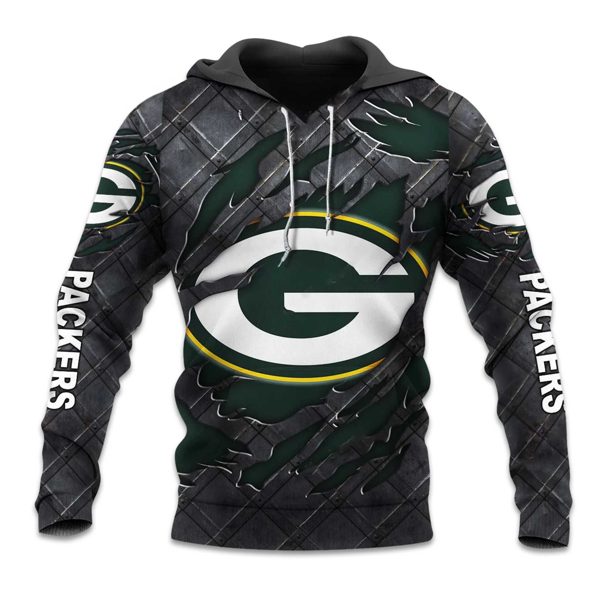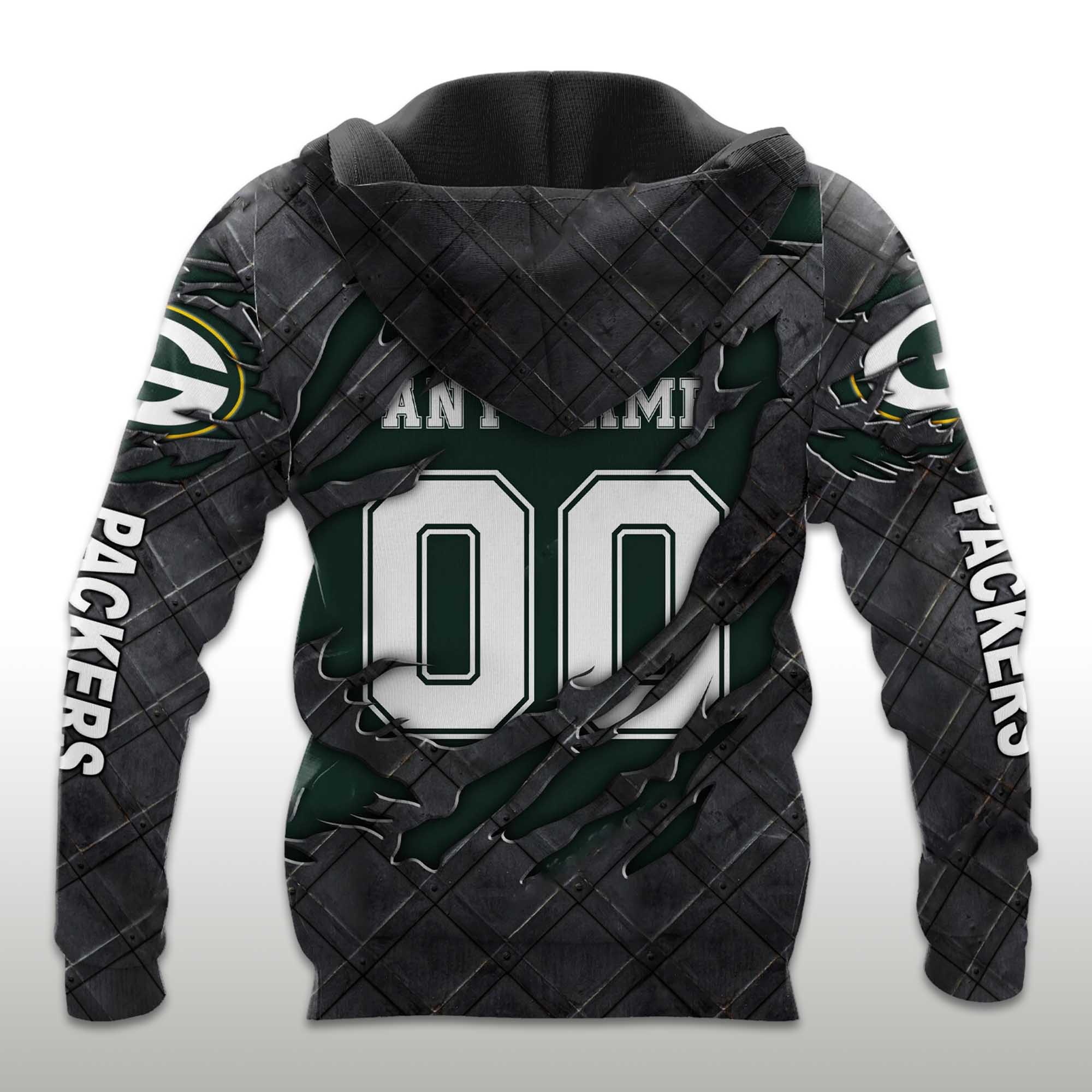 The Packers Black Metal Texture Hoodie reflects a strong and modern approach to fan-inspired fashion. The design combines dark metallic patterns with bold green accents, creating a strong visual impact at first glance. Designed as a pullover hoodie, it naturally fits into everyday wear, whether for casual outings, layering in colder weather, or a relaxed street style.