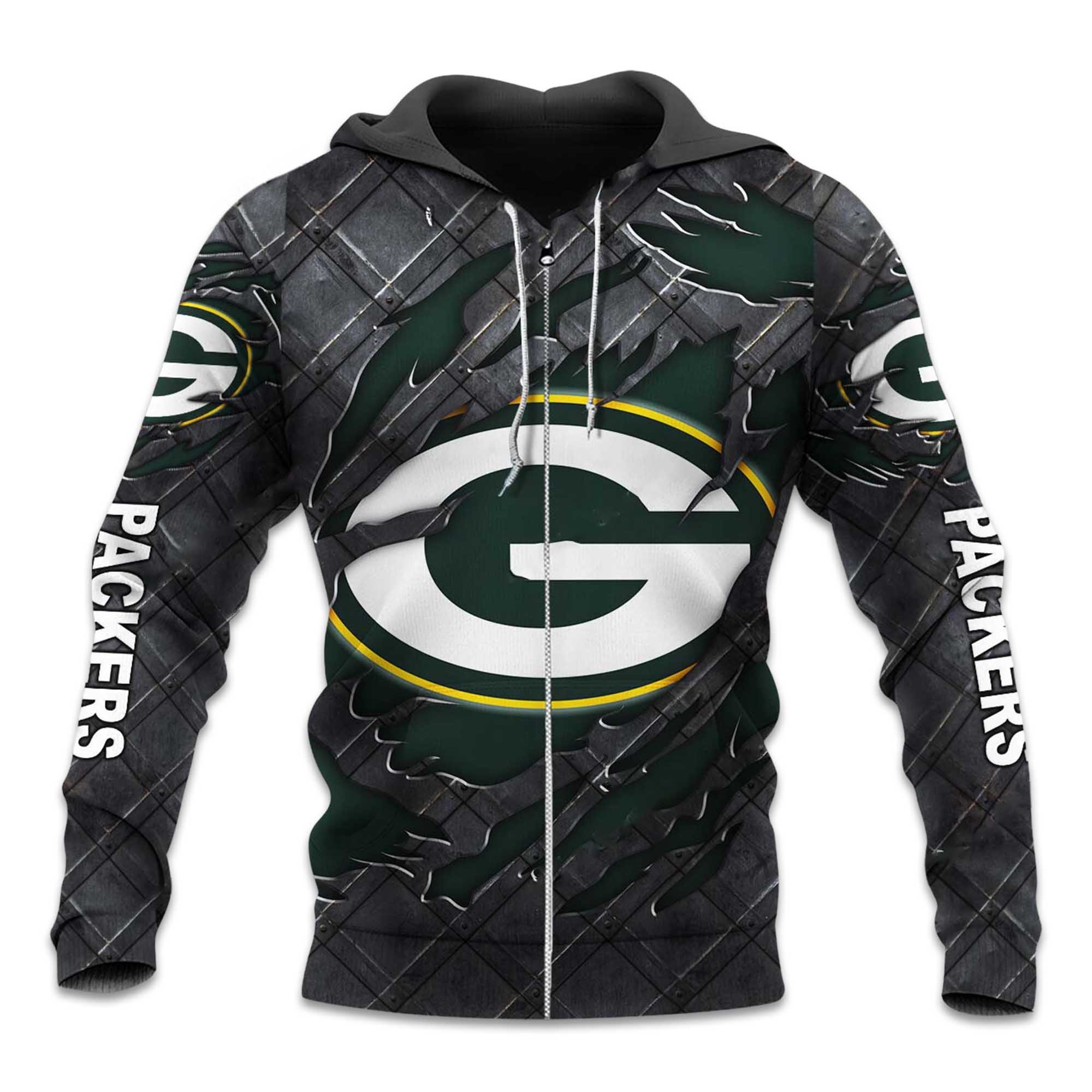 Packers Black Metallic Pattern Zipper Hoodie – A New Style in Streetwear for Fans
