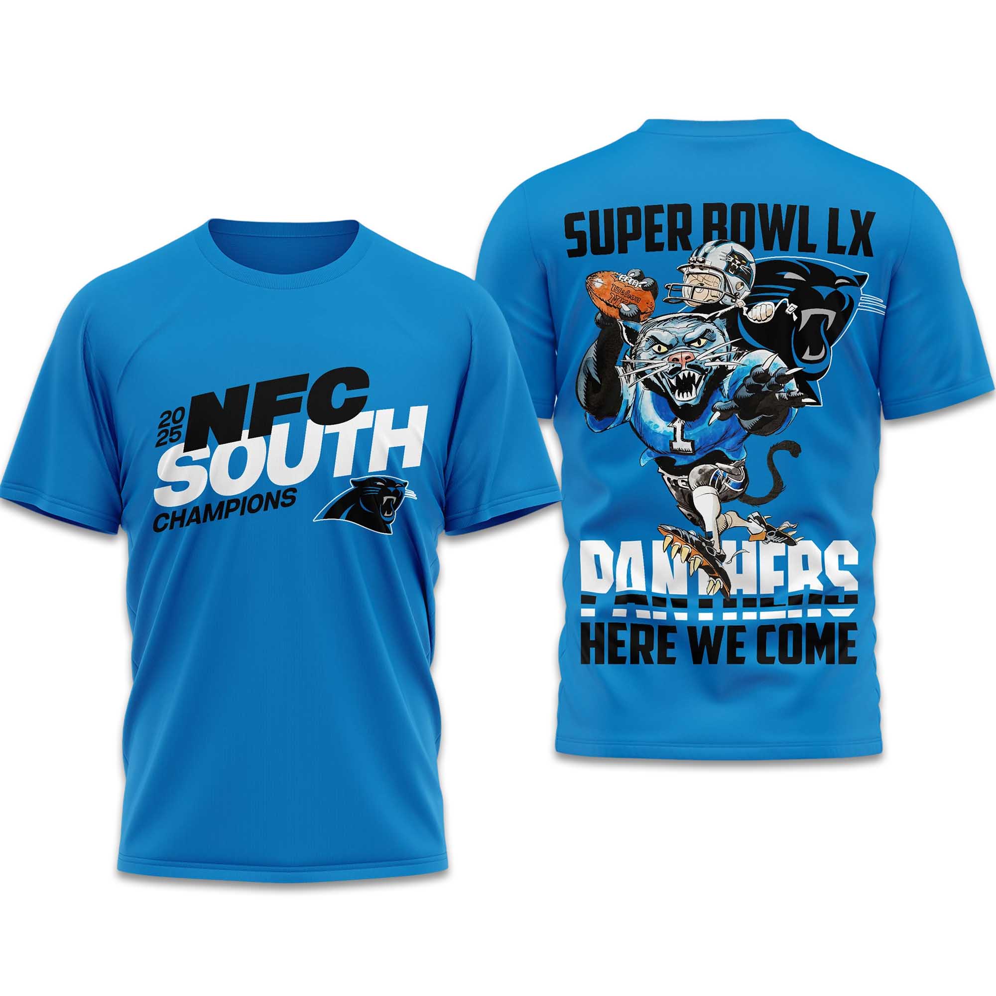 The Carolina Panthers made a powerful statement in 2025 by winning the NFC South. Fans everywhere are incredibly excited as the team heads towards Bowl LX. This Panthers NFC South Champions 2025 Bowl Here We Come Shirt captures that energy, turning a big win into something you can wear, share, and celebrate every day.