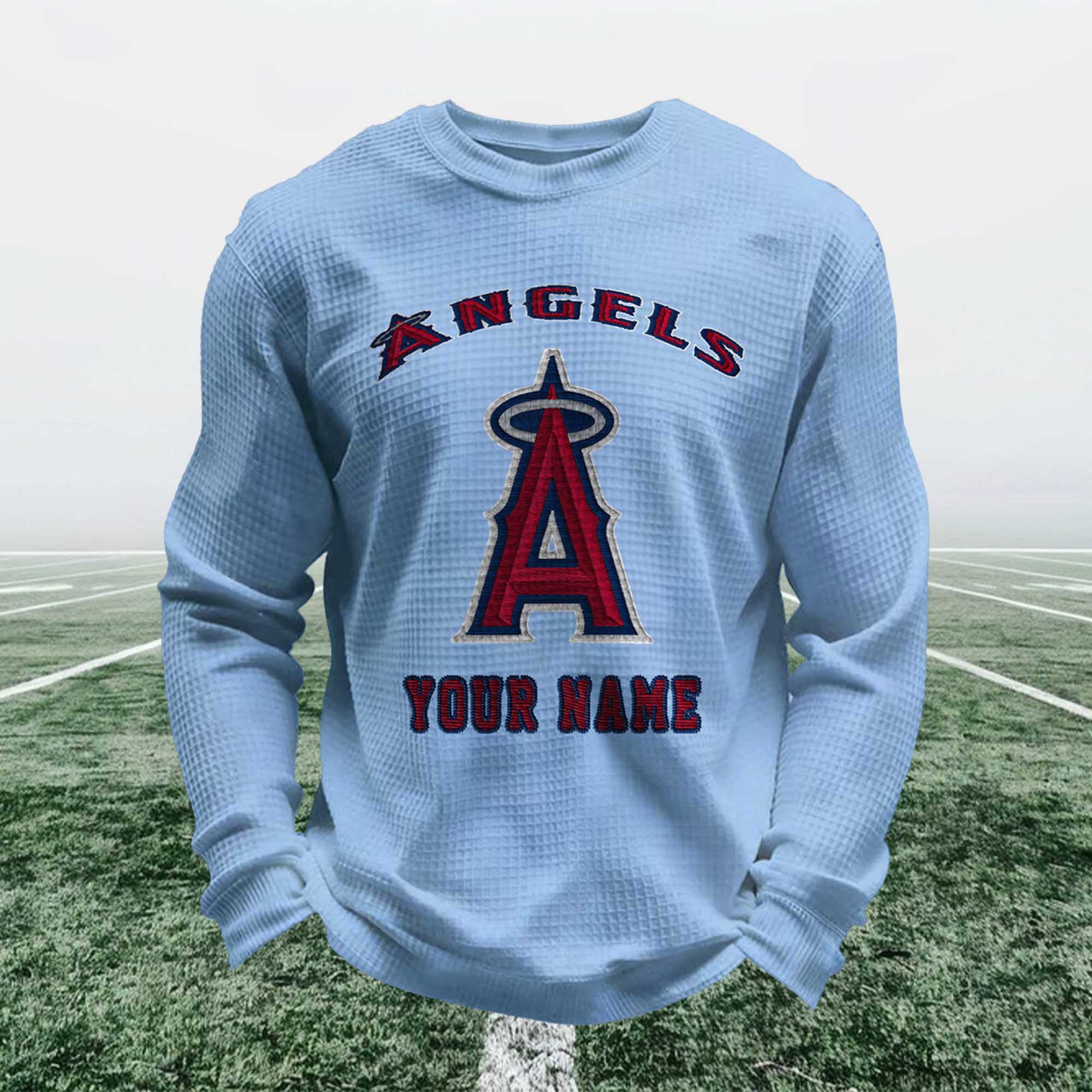 Personalized Angels Waffle Style Baseball Sweatshirt – Personalized Style for Everyday Fans
