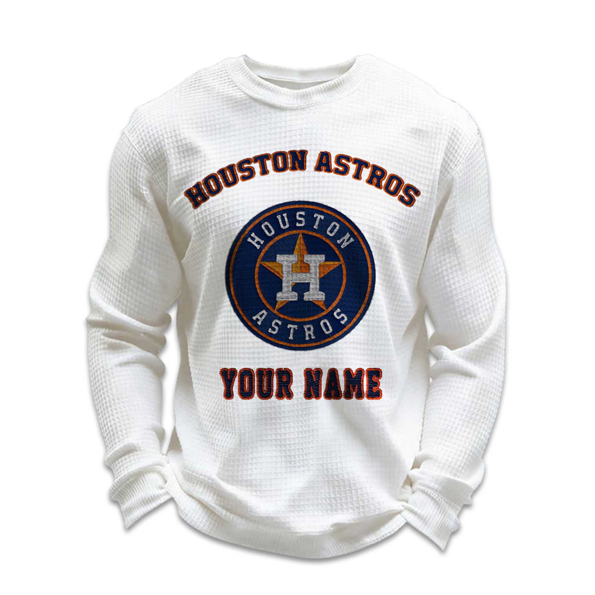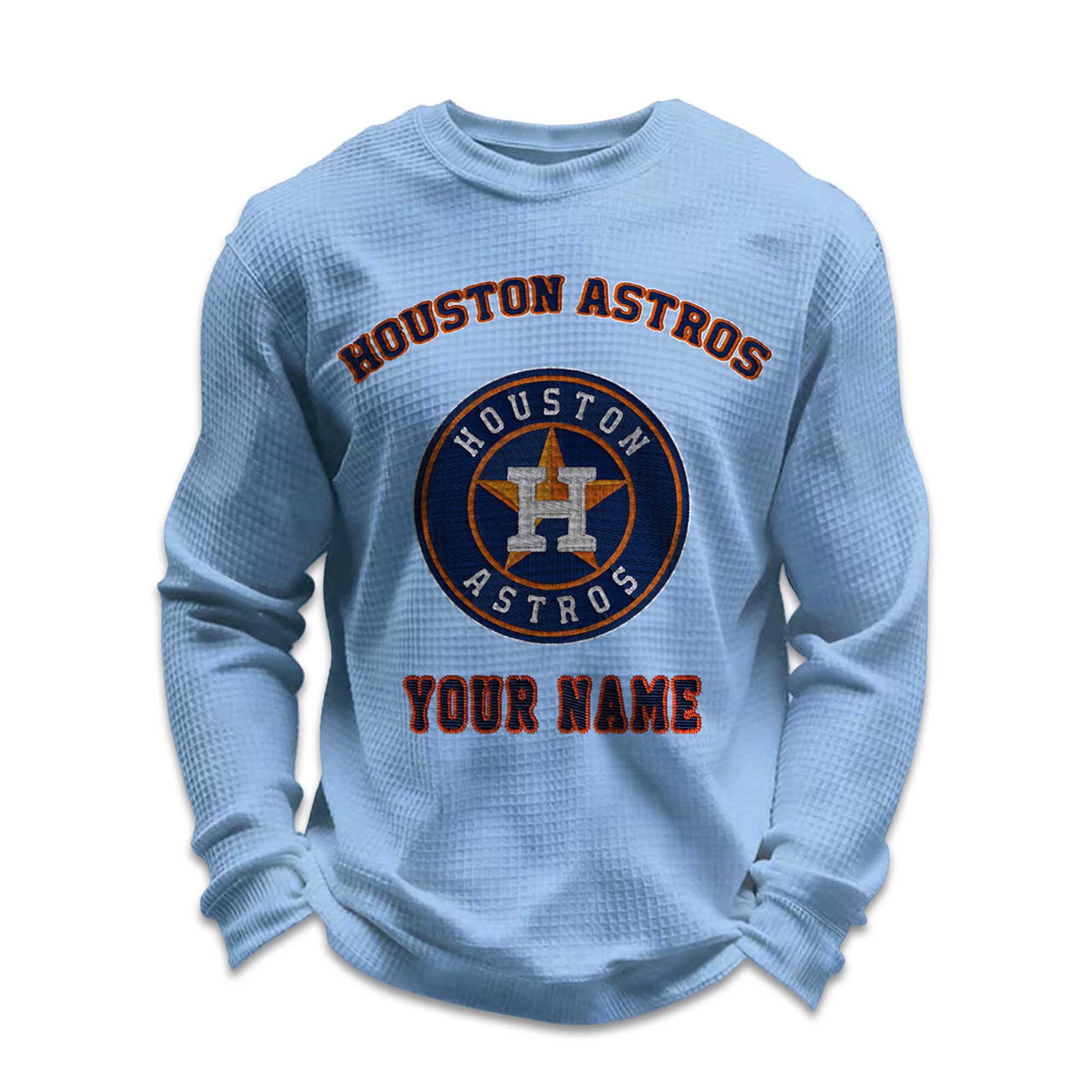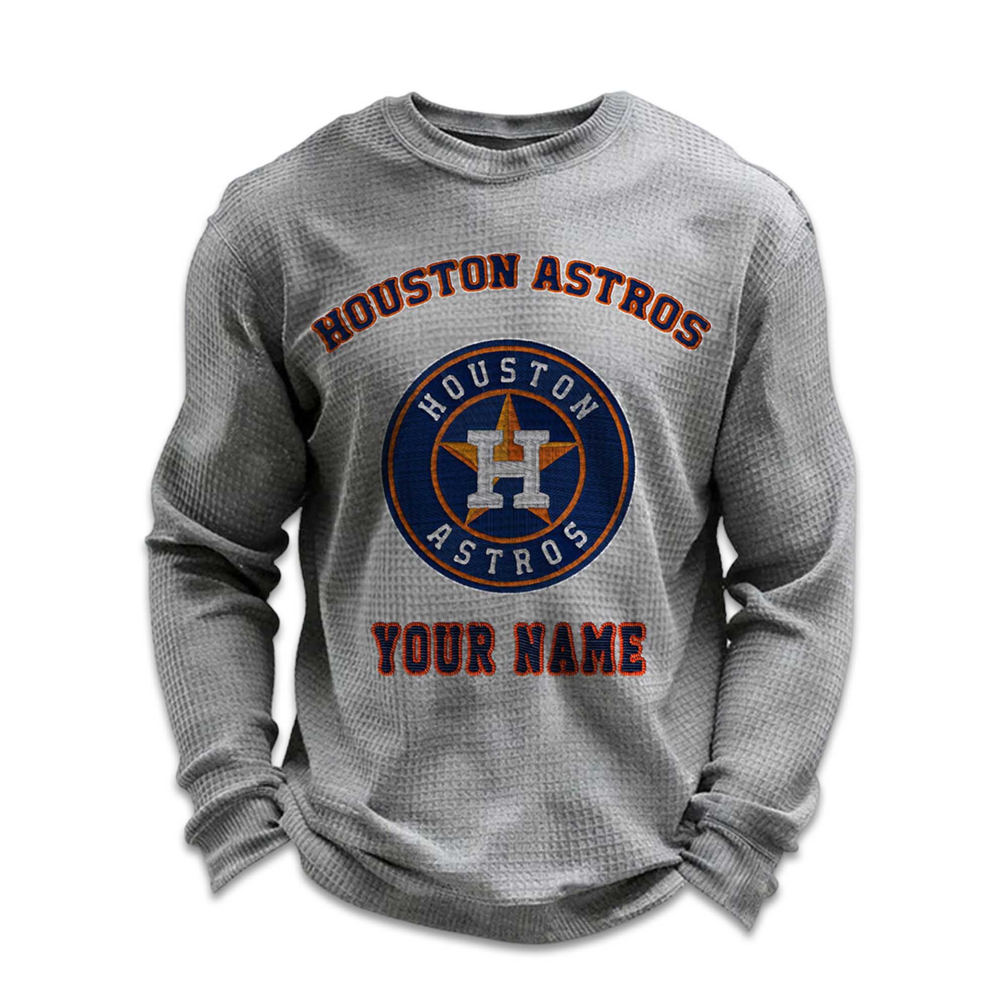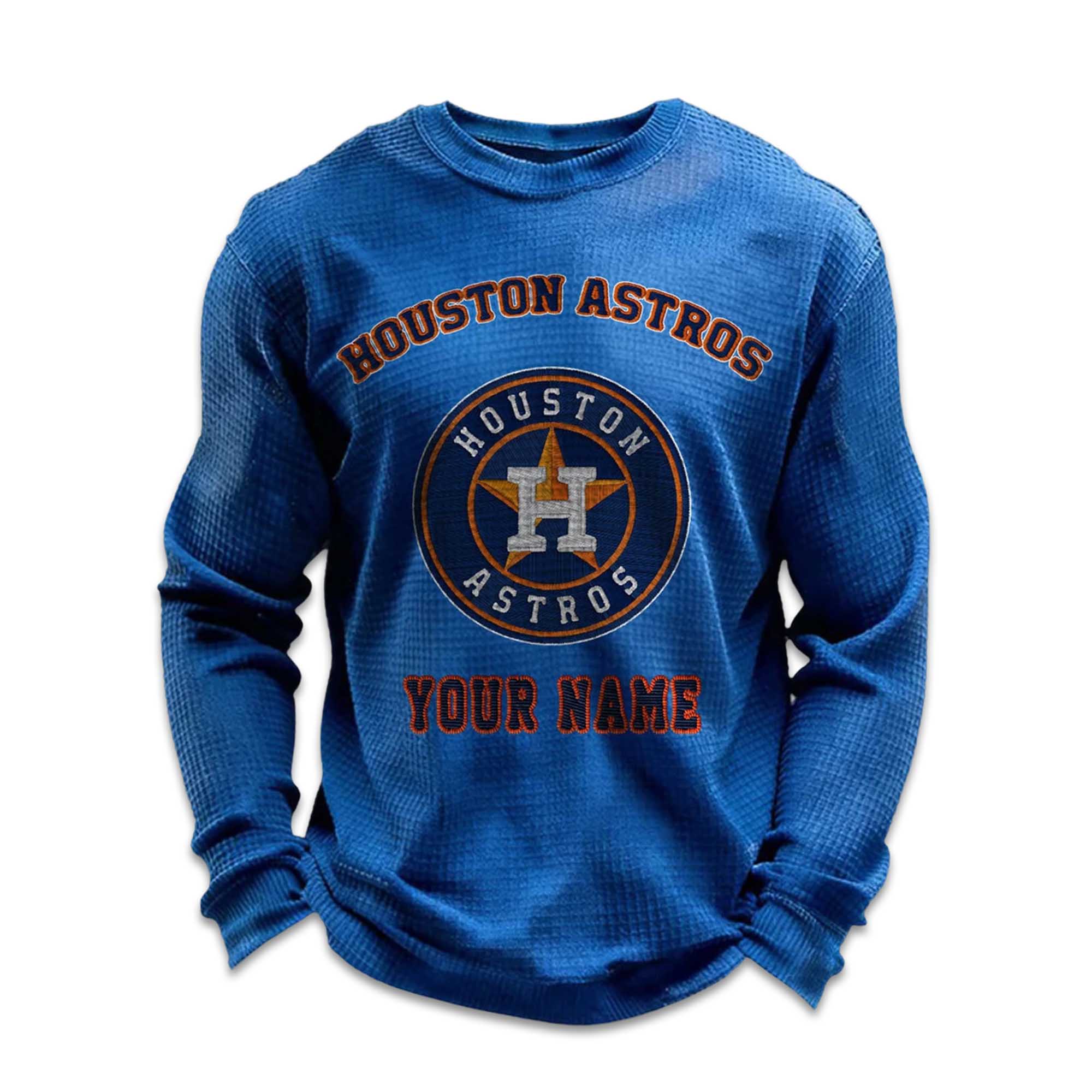 Personalized Astros Baseball Waffle Knit Sweatshirt – Customizable Comfort with Houston Spirit