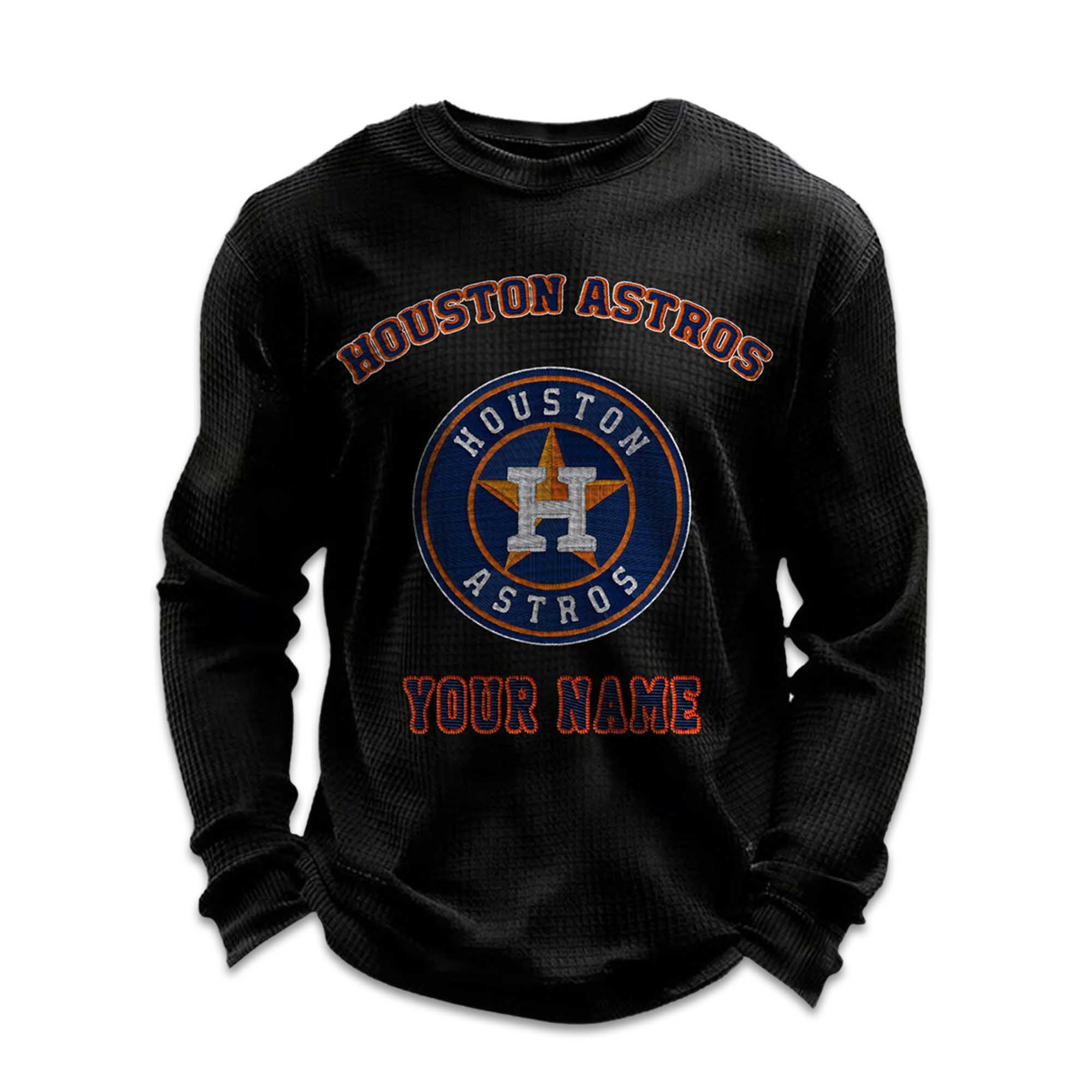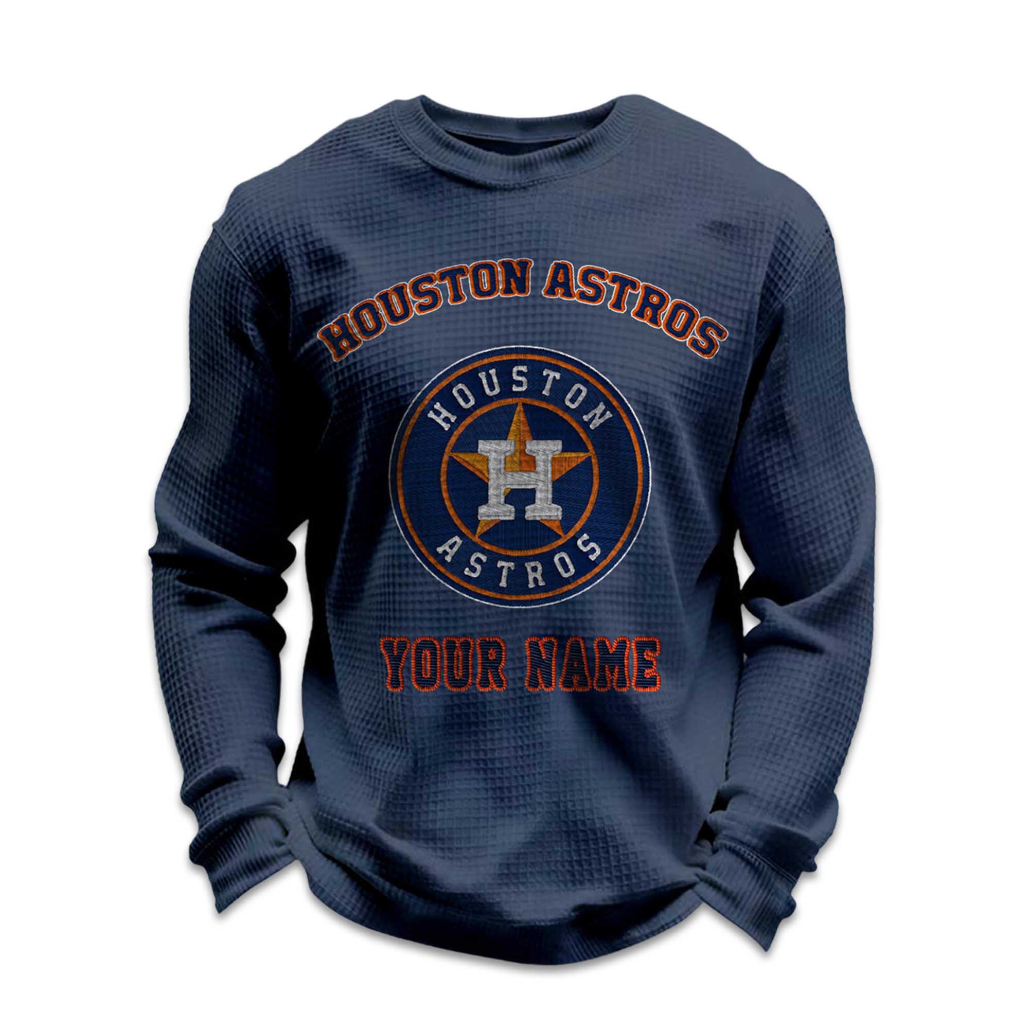 Bring your Houston baseball love into your everyday wardrobe with the sweatshirt. Add your name, enjoy the warm waffle fabric, and wear a design that’s both personalized and versatile. Whether you’re out and about, relaxing, or gifting to another fan, this sweatshirt offers comfort and style in a thoughtful product. Create your own shirt today and make Astros pride a part of your everyday look.