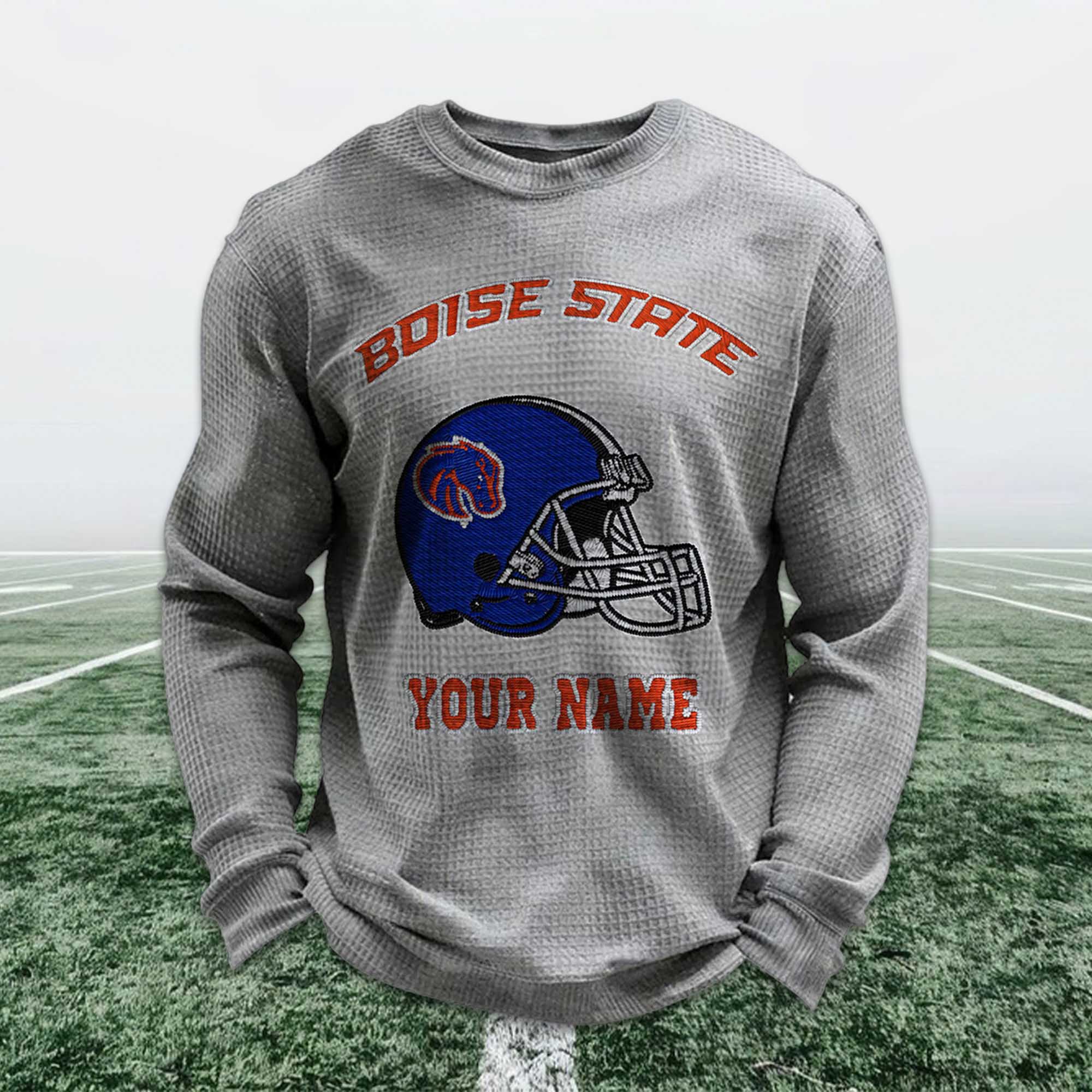 Personalized Boise State Football Waffle Sweatshirt – Custom Style for True Broncos Fans