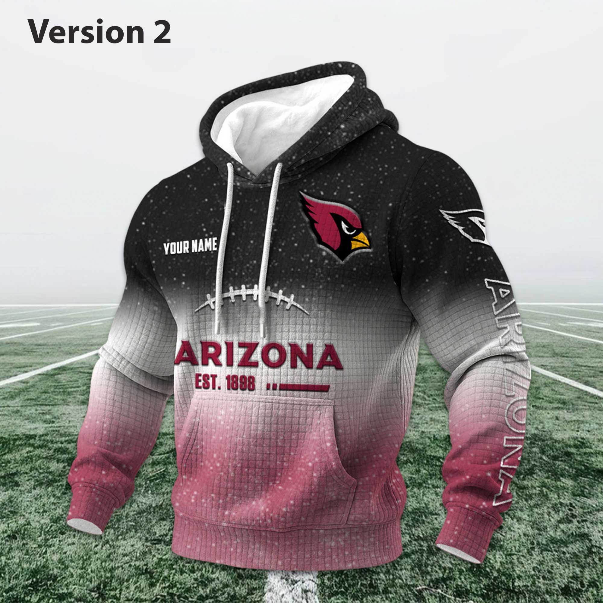 The Personalized Cardinals EST 1898 Football Waffle Hoodie is becoming a popular choice for fans seeking personalized and modern apparel. Inspired by classic football heritage and updated with a striking gradient style, this hoodie reflects the growing demand for fan apparel that combines team history with everyday comfort and personality.