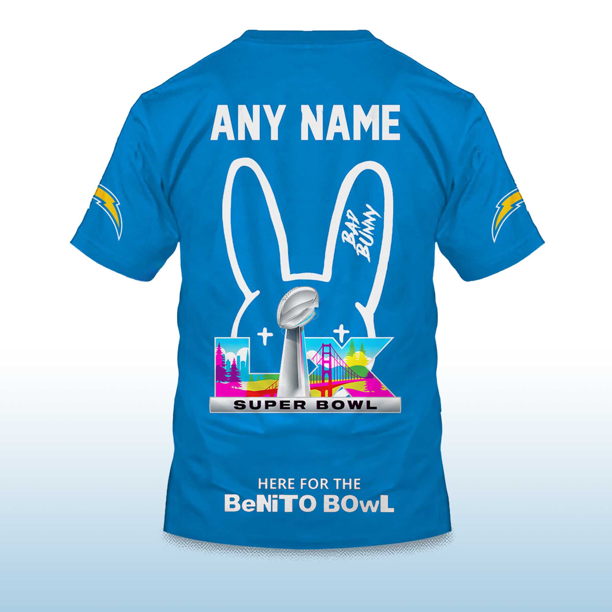 2025 2026 Chargers Bad Bunny Bowl LX Personalized T-Shirt – A Flash of Energy and Joy for Fans