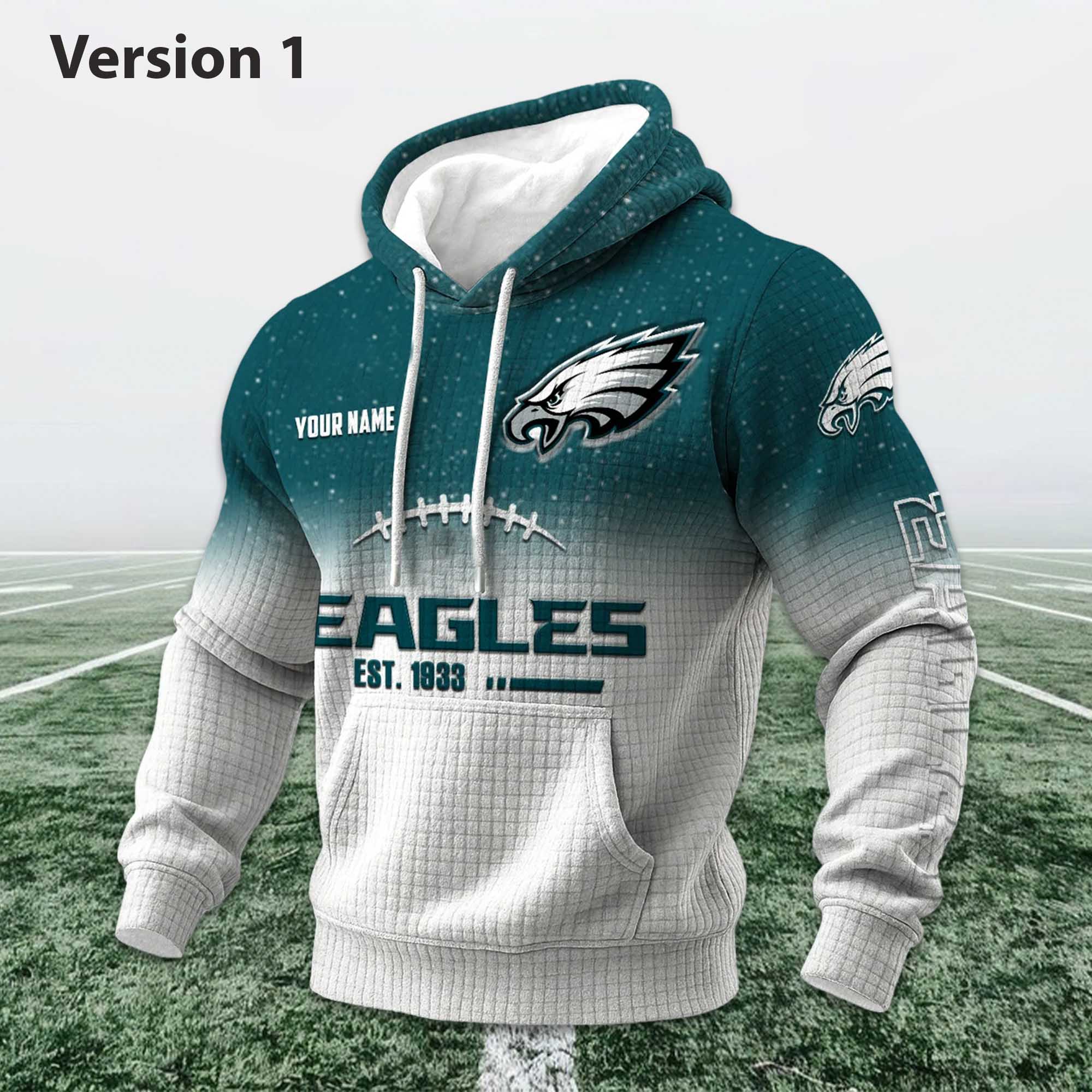 The Personalized Eagles EST 1833 Football Waffle Hoodie blends the team’s heritage with a fresh, easy-to-wear style. The EST 1833 detail highlights the Eagles’ proud origins, while the custom name option makes this hoodie a personal item. It’s designed for fans who want to show their support authentically and clearly wherever they are.