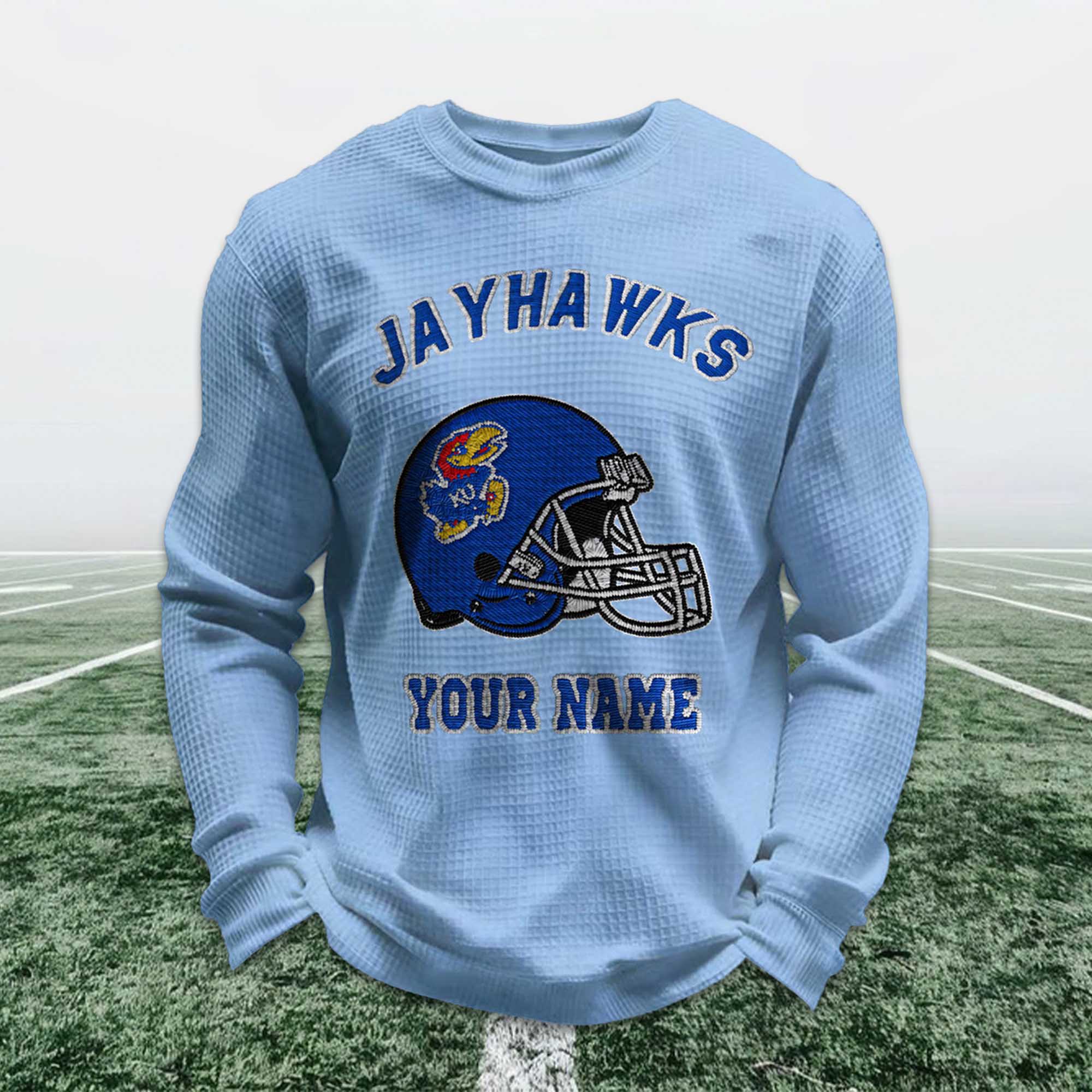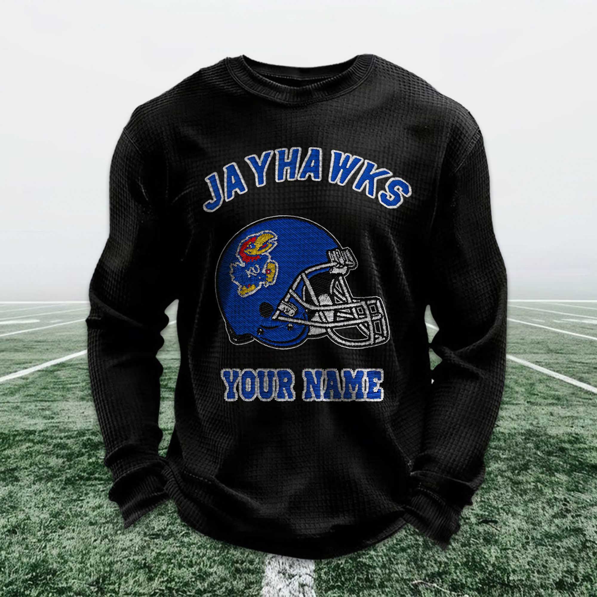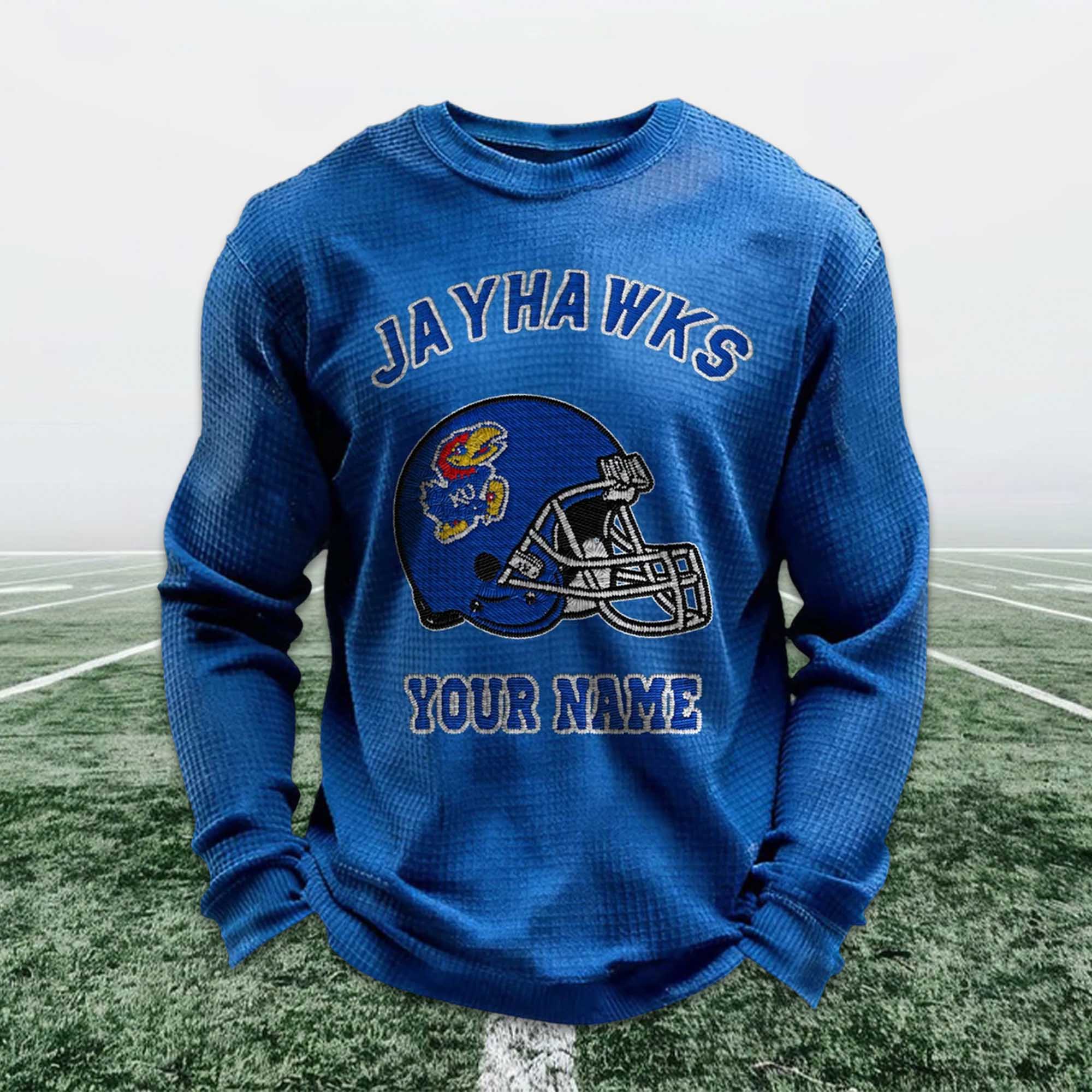 Personalized Jayhawks Football Waffle Sweatshirt – Custom Style for Loyal Fans