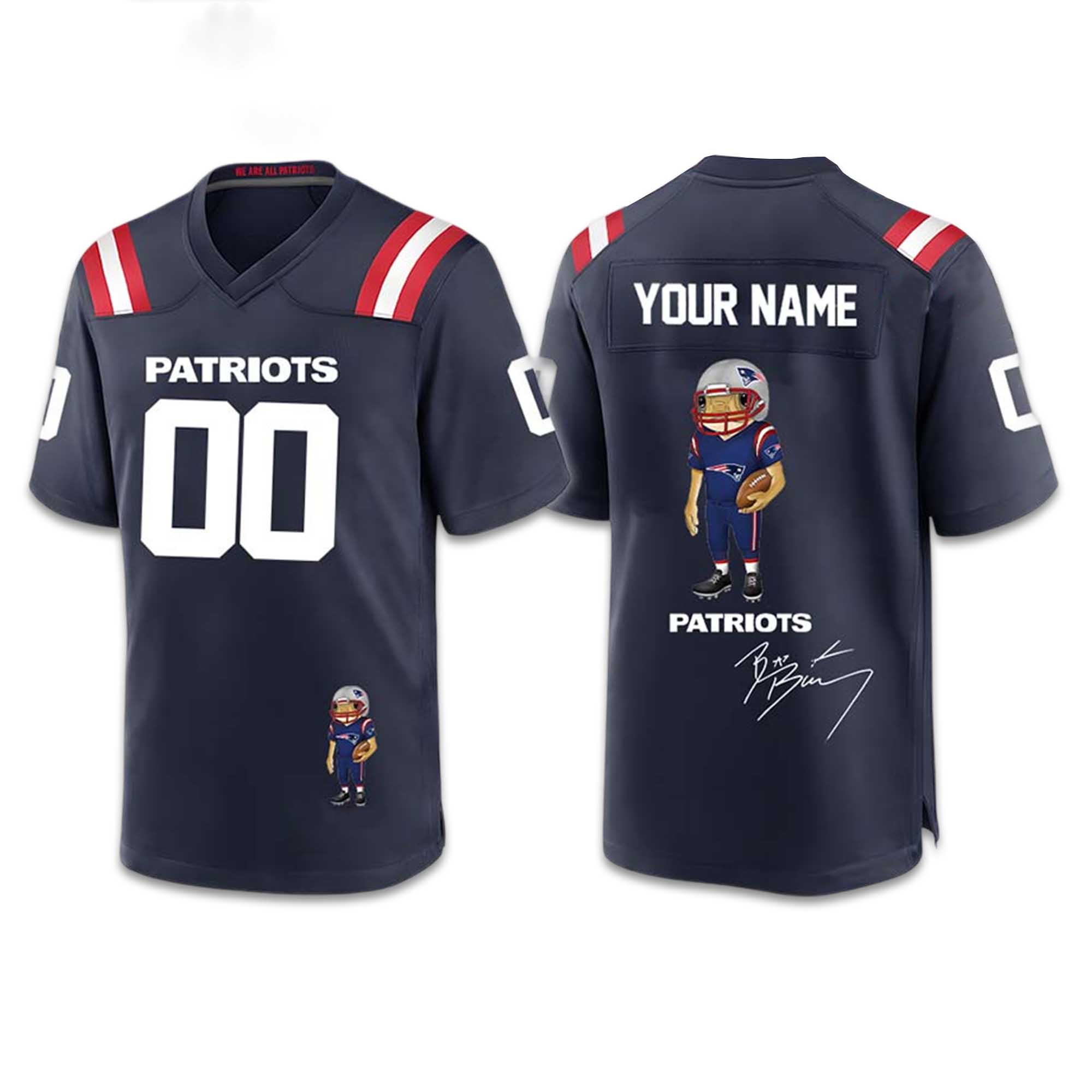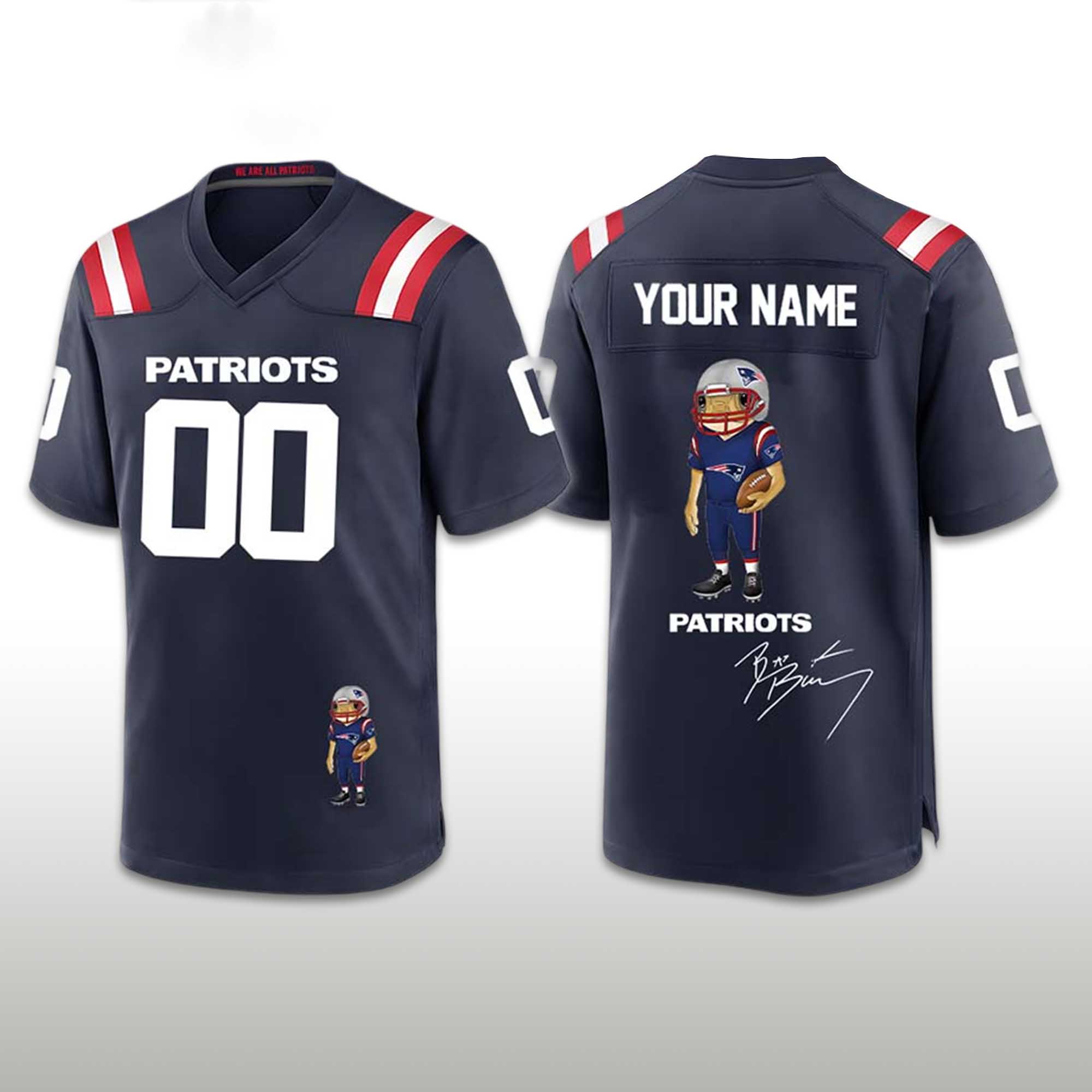 This jersey balances tradition and modern style. The deep navy blue color reflects the classic Patriots identity, while subtle accents keep the look sharp. The custom name print adds a personal touch, making the jersey truly yours. The soft and breathable material provides comfort during long games or casual outings. High-quality printing ensures sharp details and long-lasting colors.