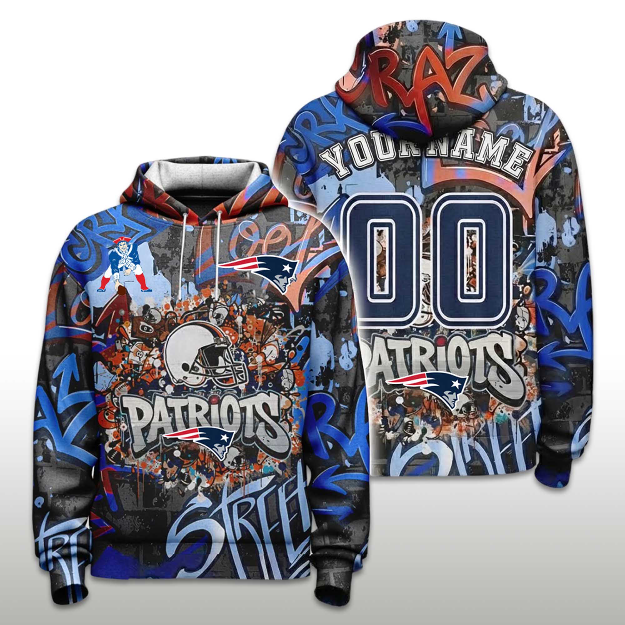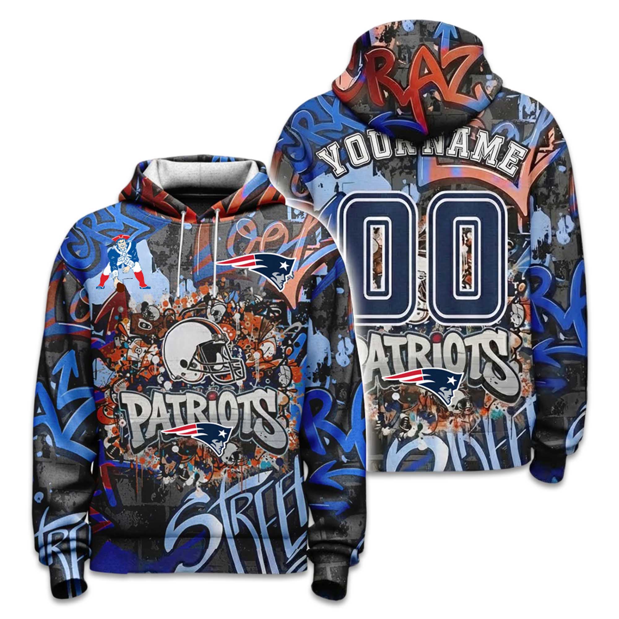Personalized Patriots Graffiti Football Hoodie – Bold Identity for True Fans