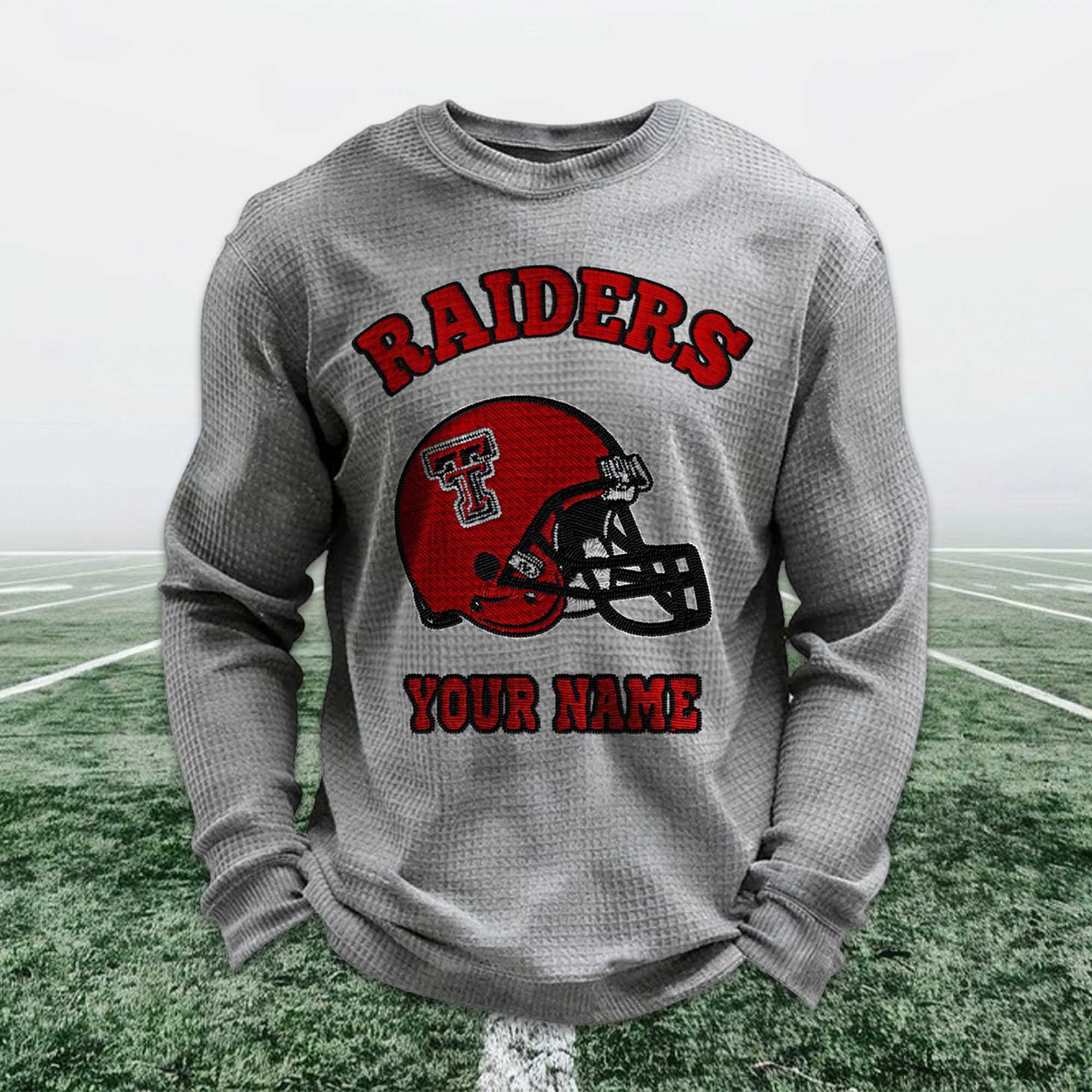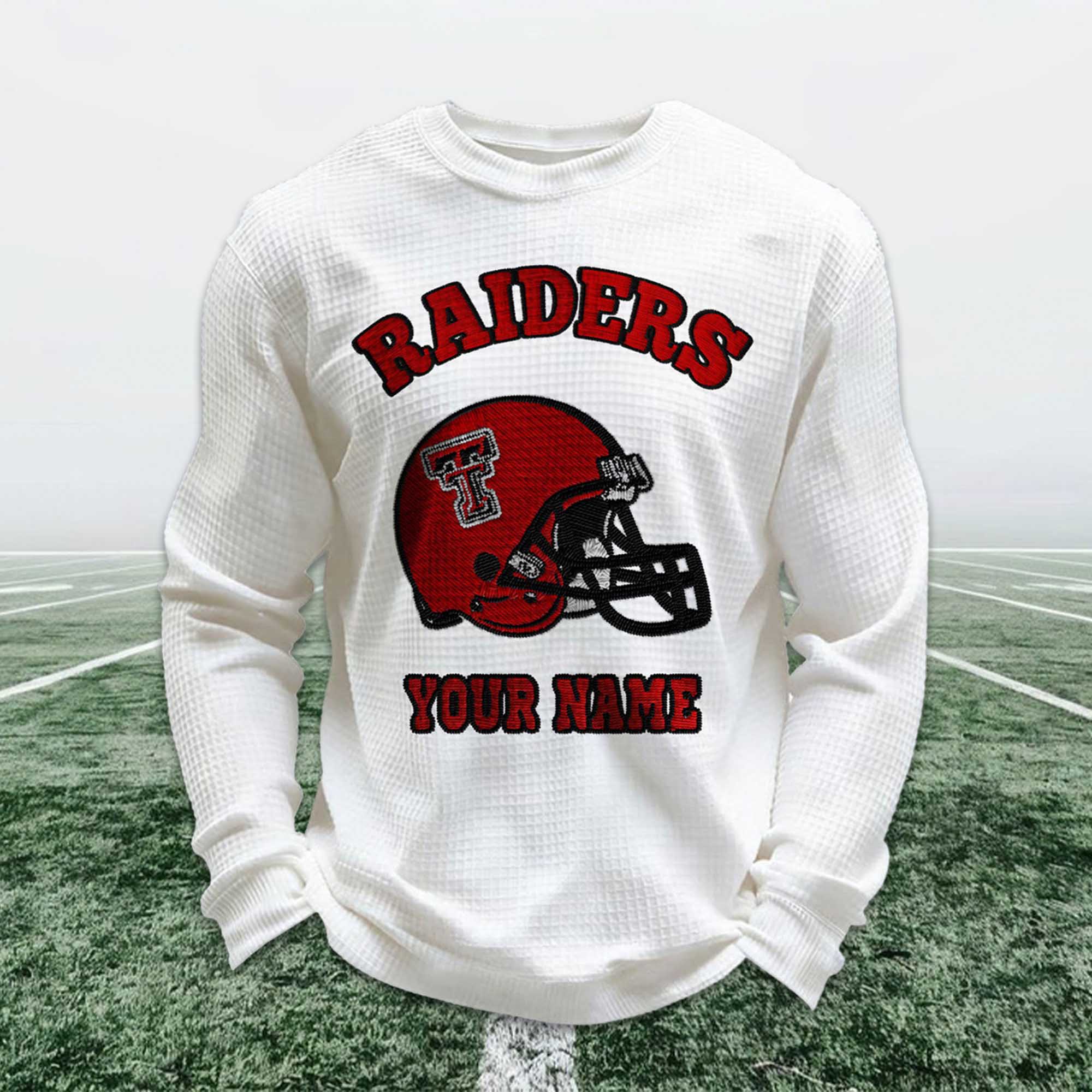 Personalized Raiders Football Waffle Sweatshirt combines classic football spirit with the individuality that true fans appreciate. Featuring the iconic Raiders helmet design and custom name options, this sweatshirt allows fans to express their pride in the team in a personal and confident way. It’s designed for fans who value both comfort and identity.