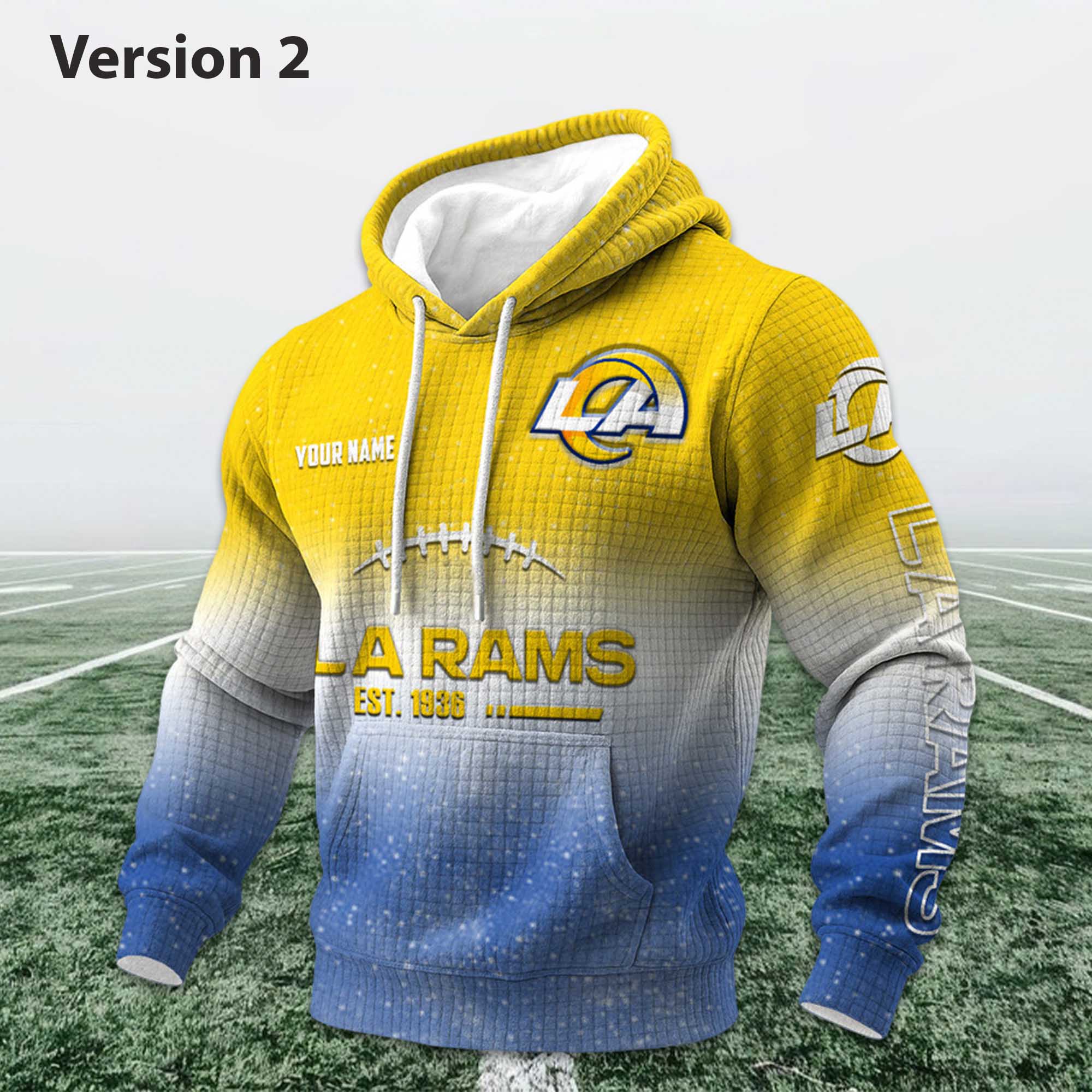 Rams EST 1936 Personalized Waffle Football Hoodie – Classic Heritage with Customizable Modern Style