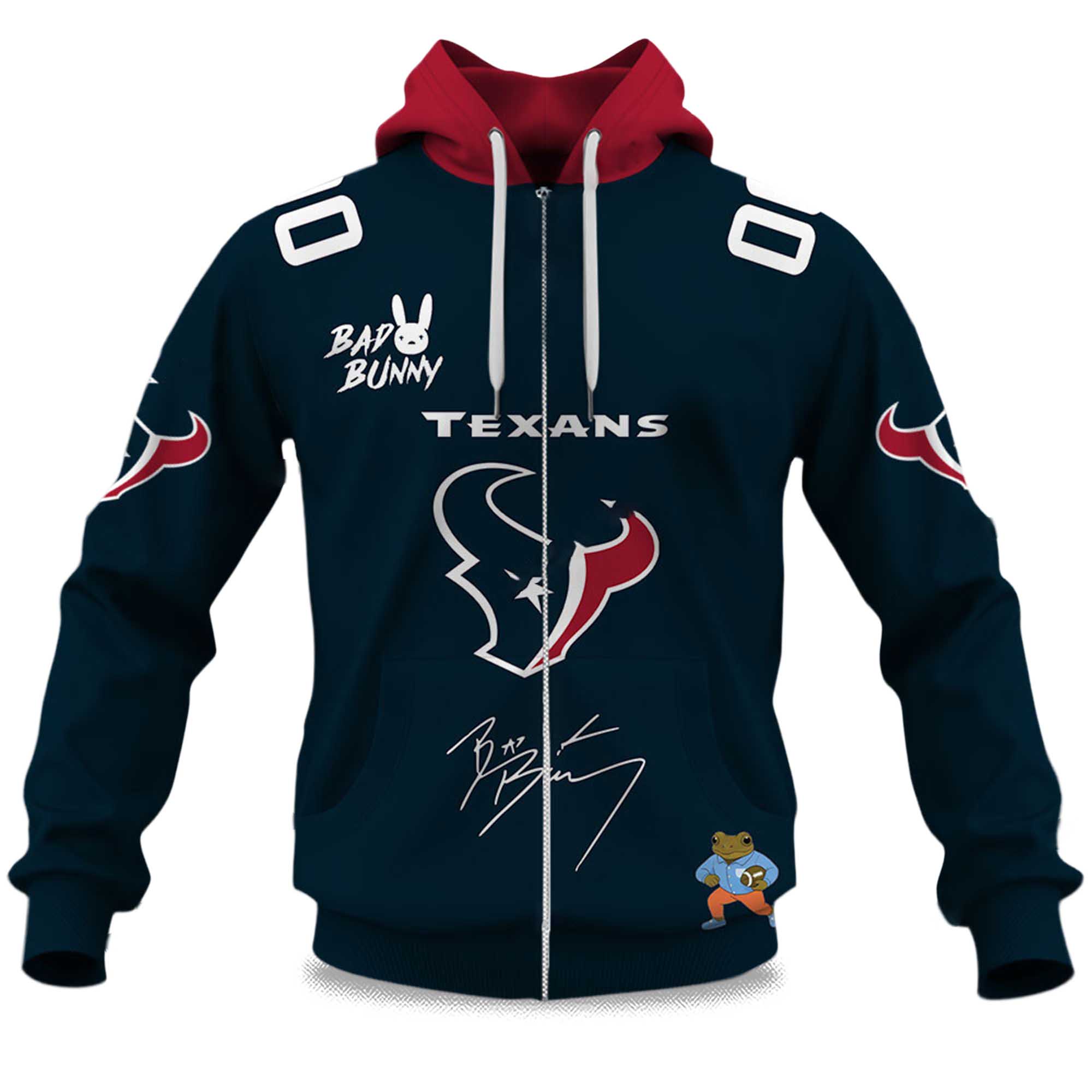 The Personalized Texans Bad Bunny Bowl LX 2025 2026 Zipper Hoodie is becoming one of the hottest products among fans of the season. Texans fans love the combination of strong team imagery and fun Bad Bunny details, creating a fresh look for the Bowl LX energy. With updated graphics and personalization features, this 2026 version brings a modern and fun feel to everyday wear.