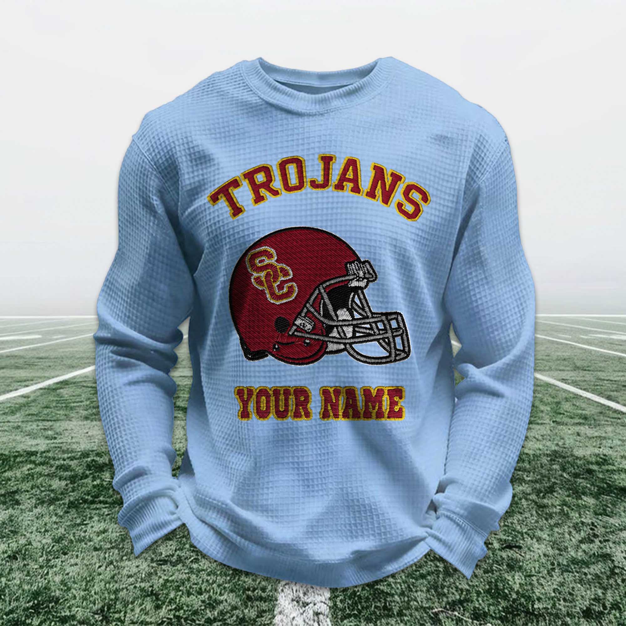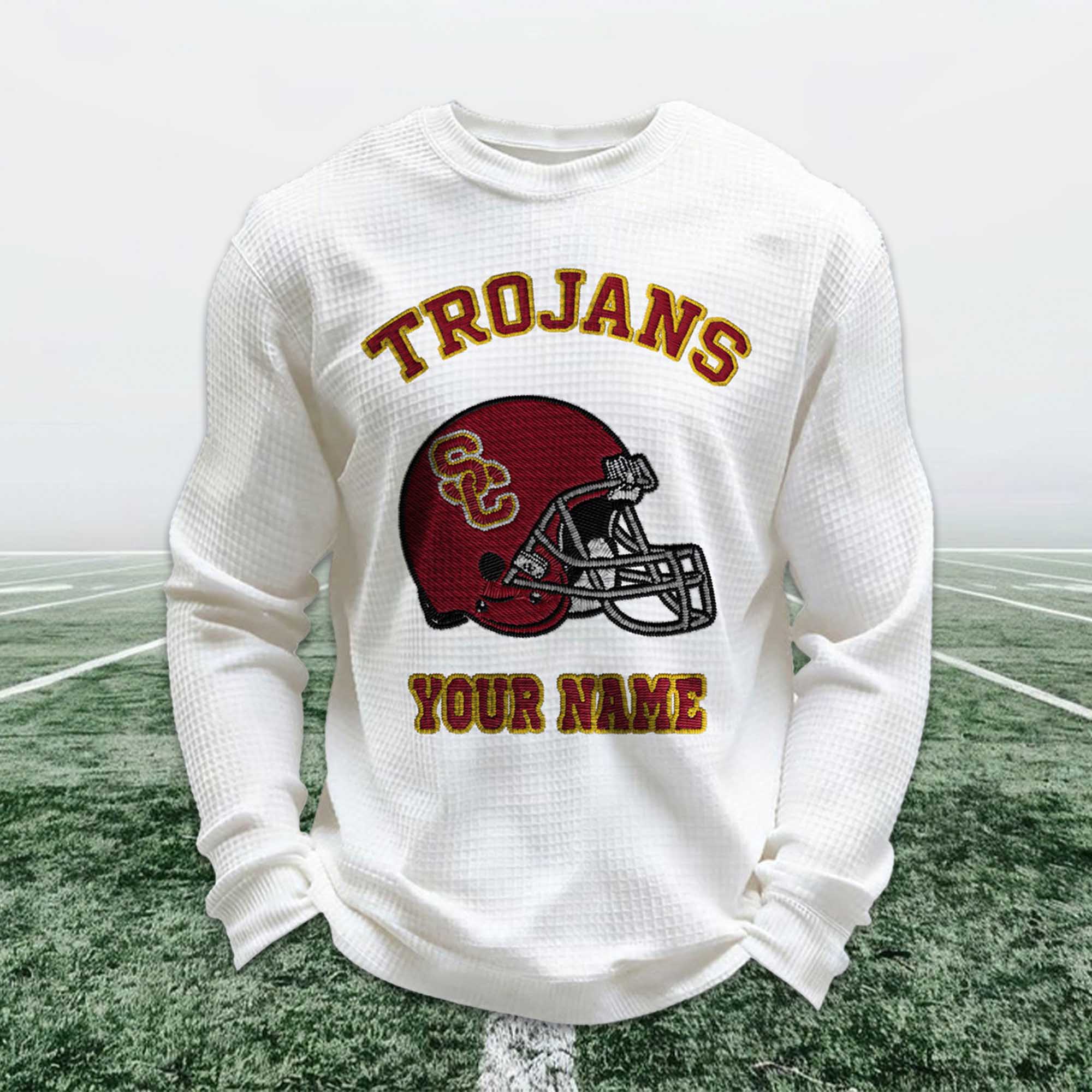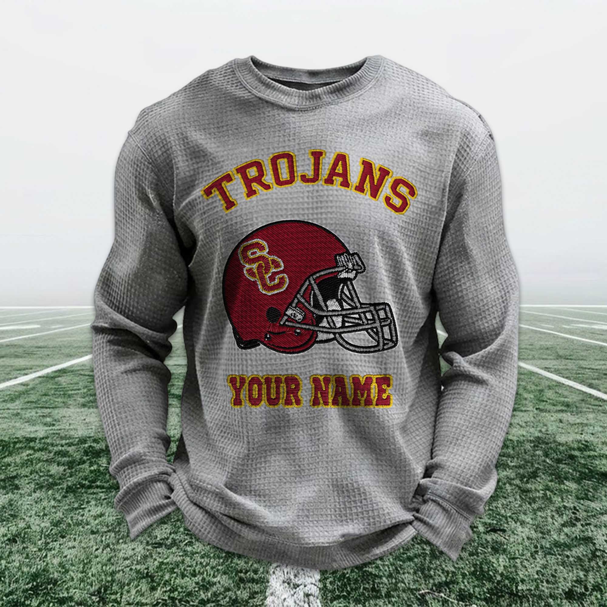 Personalized Trojans Football Waffle Sweatshirt – A Timeless Statement for Loyal Fans