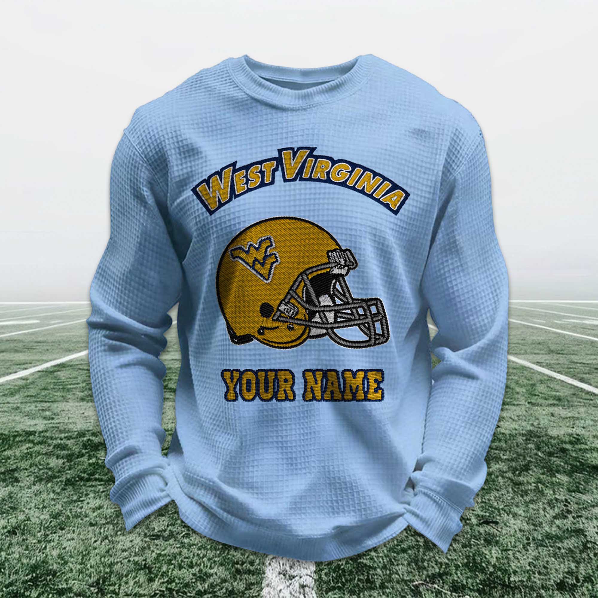 Personalized West Virginia Football Waffle Sweatshirt are rapidly becoming a favorite among fans who want something different from the team’s standard attire. Instead of basic logos, this design allows fans to add their own names, making each piece feel special. The shift toward personalized fan apparel reflects a growing trend where fans want clothing that directly expresses their identity and love for the sport.