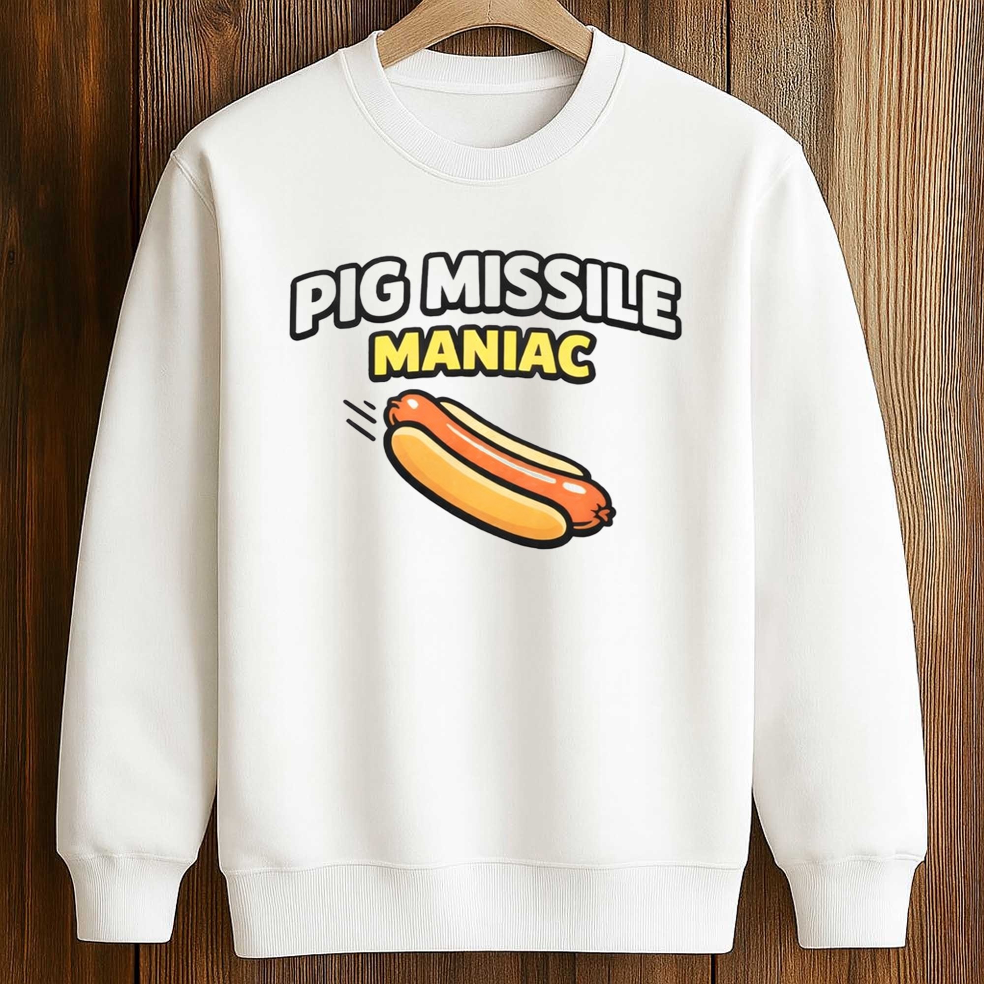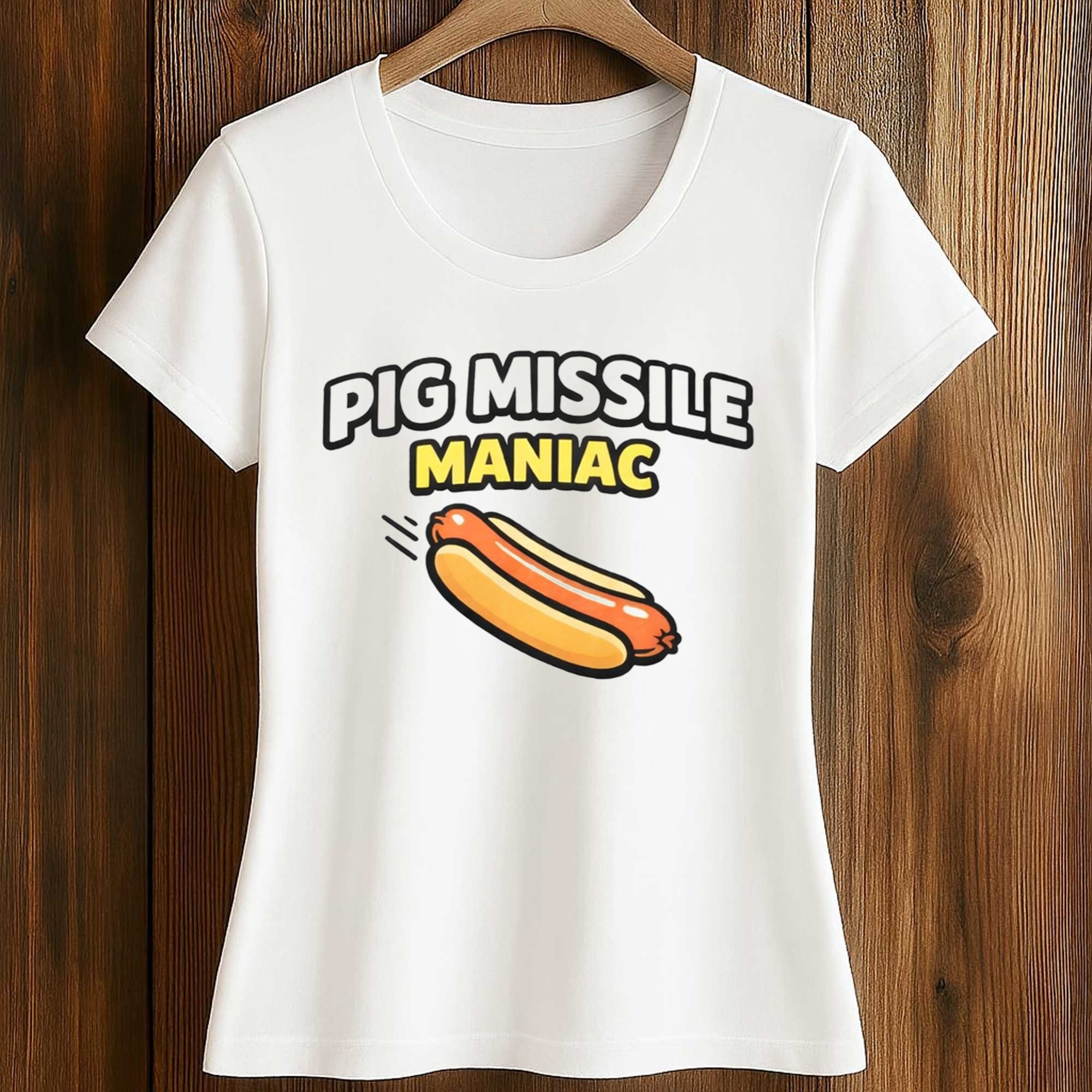 Pig Missile Maniac Hot Dog T-Shirt – Humorous Energy You Can Wear Every Day