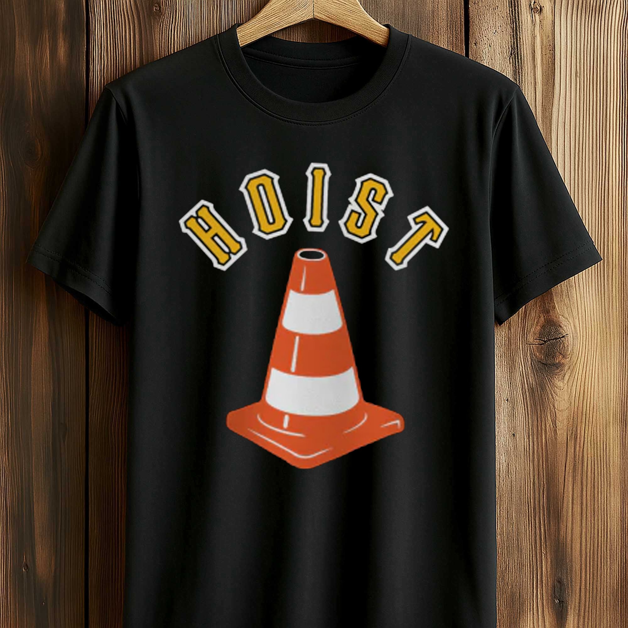 The Pirates Hoist Center The Cone Shirt is attracting attention from fans who love fun and unique designs. Inspired by sports culture and memorable off-field moments, the image of a bright orange traffic cone combined with the bold word HOIST creates an interesting twist on traditional fan attire. It quickly became a top choice for those who want something different but still want to show their strong team support.