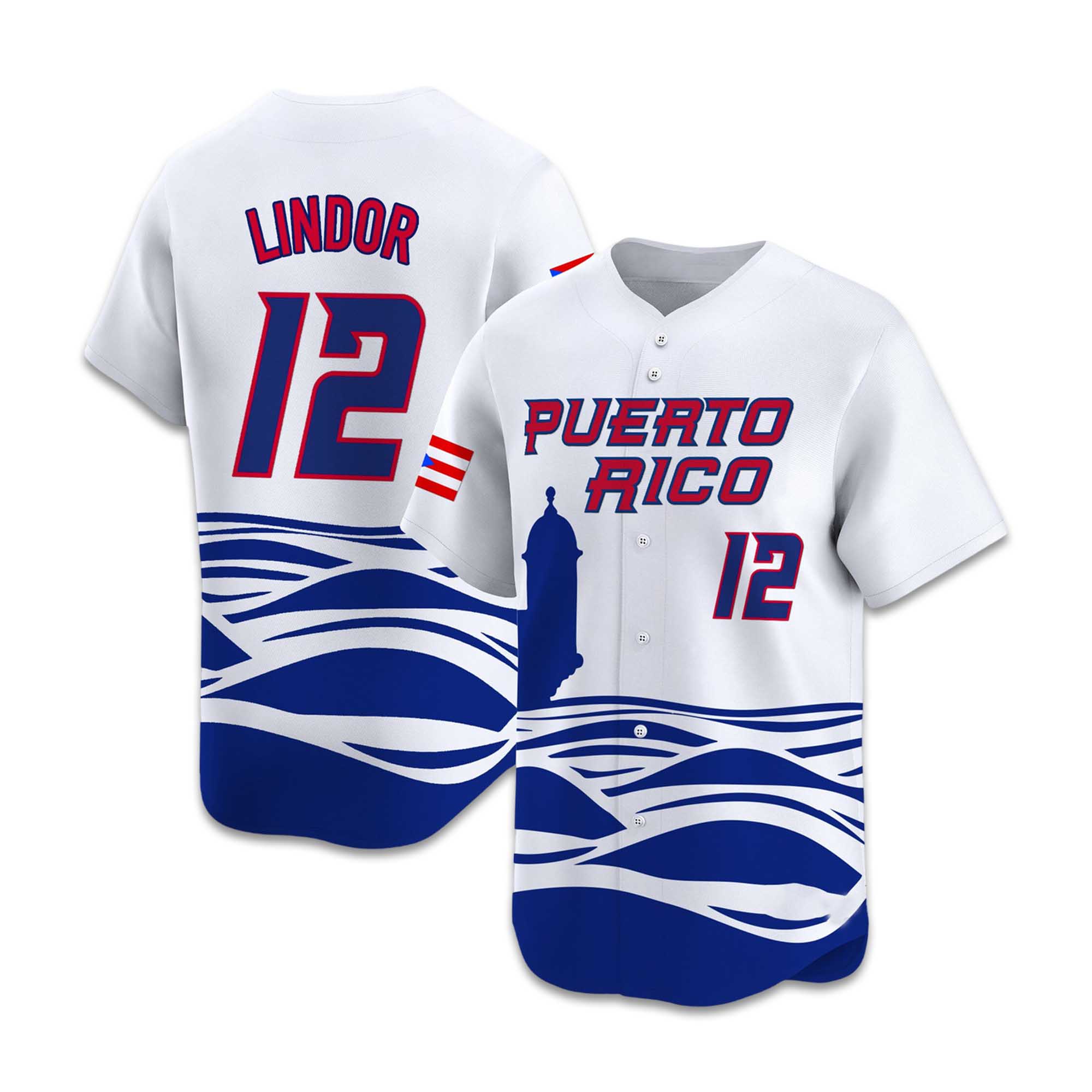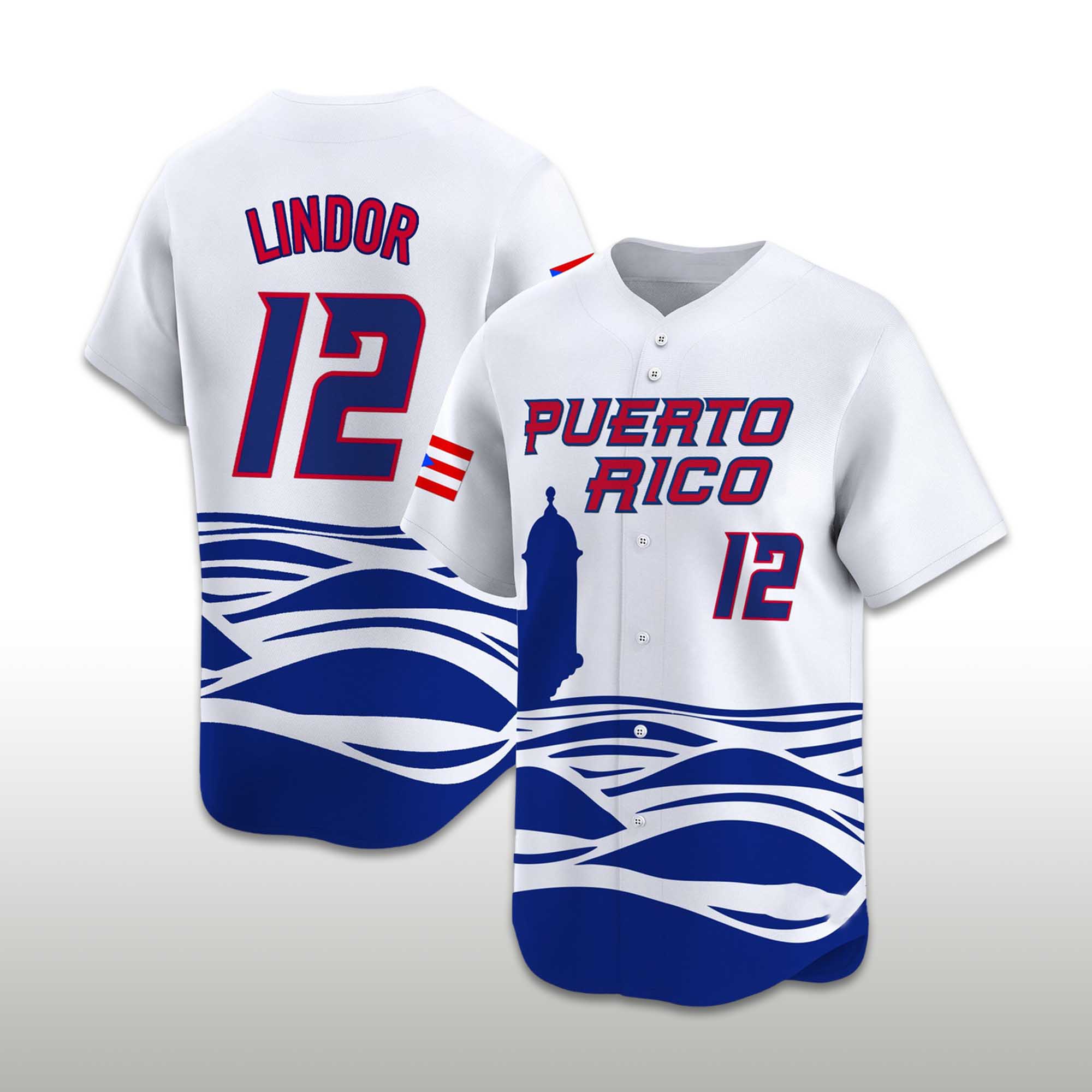 The Puerto Rico World Baseball Classic 2026 Jersey showcases national identity through its modern and sophisticated design. The white background, combined with striking blue and red accents, creates a powerful contrast, while the “Puerto Rico” lettering on the chest delivers an unmistakable message. The number 12 and the name highlight his leadership, skill, and inspiration to fans worldwide.