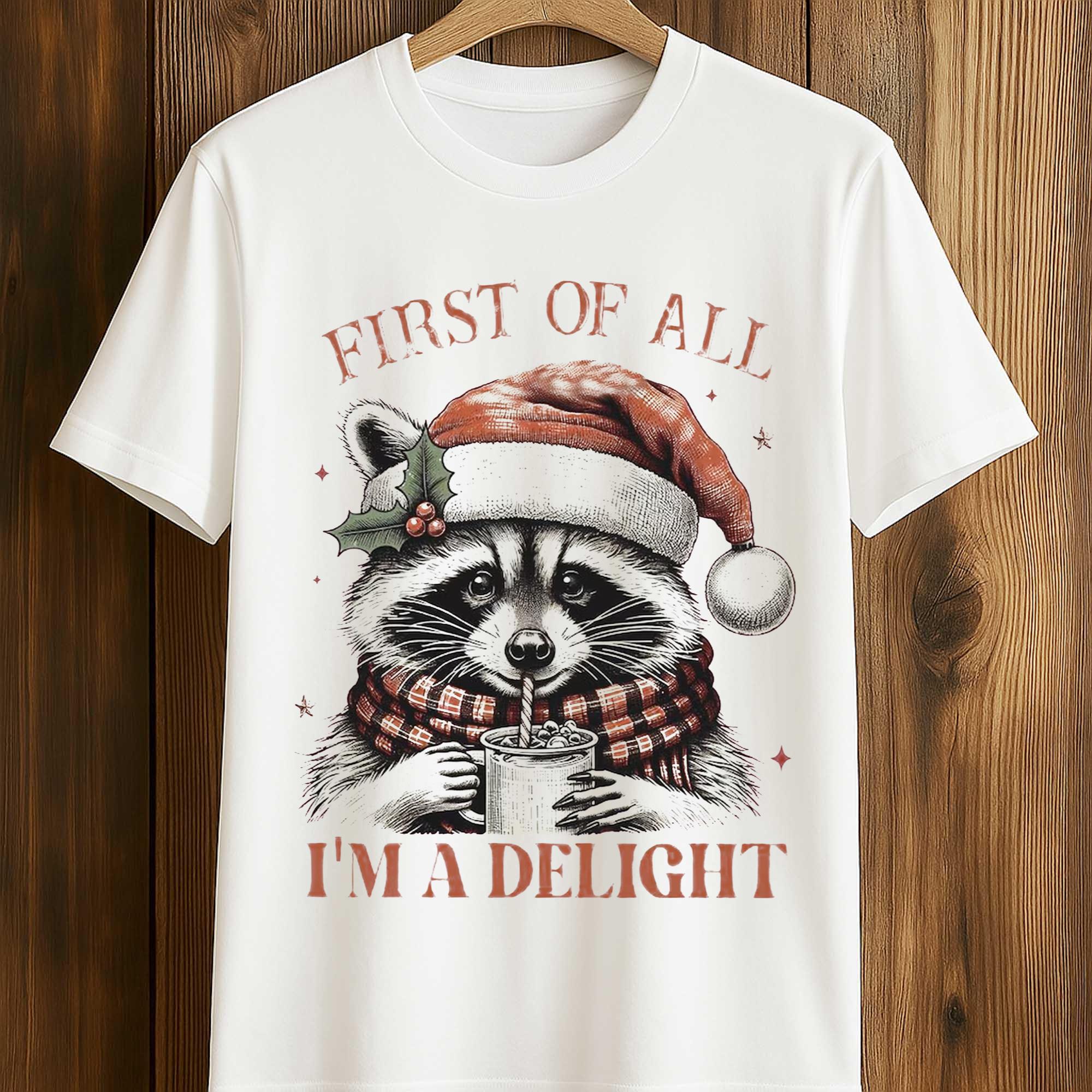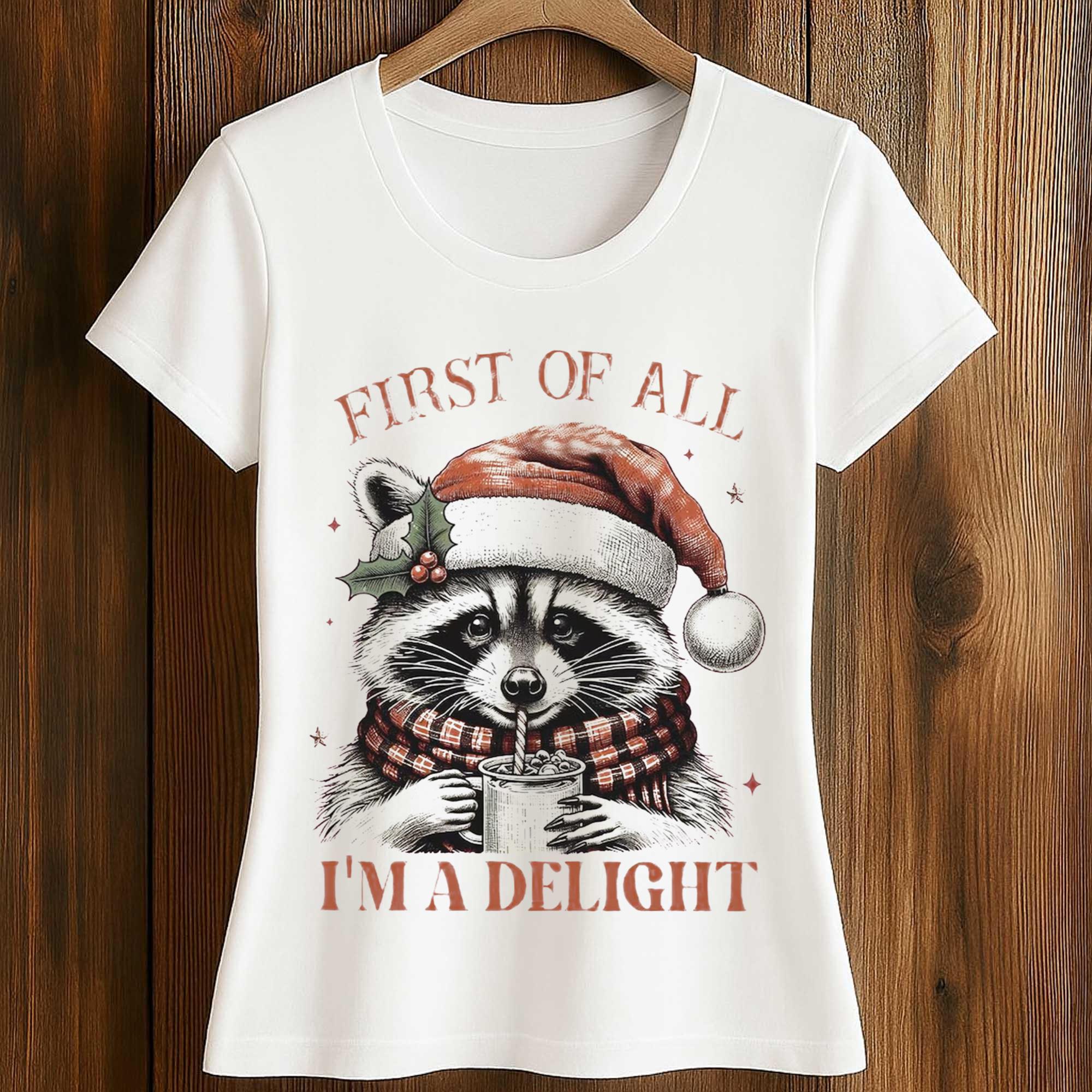 Raccoon First Of All I’m A Delight Christmas T-Shirt – Unique Christmas Accessories