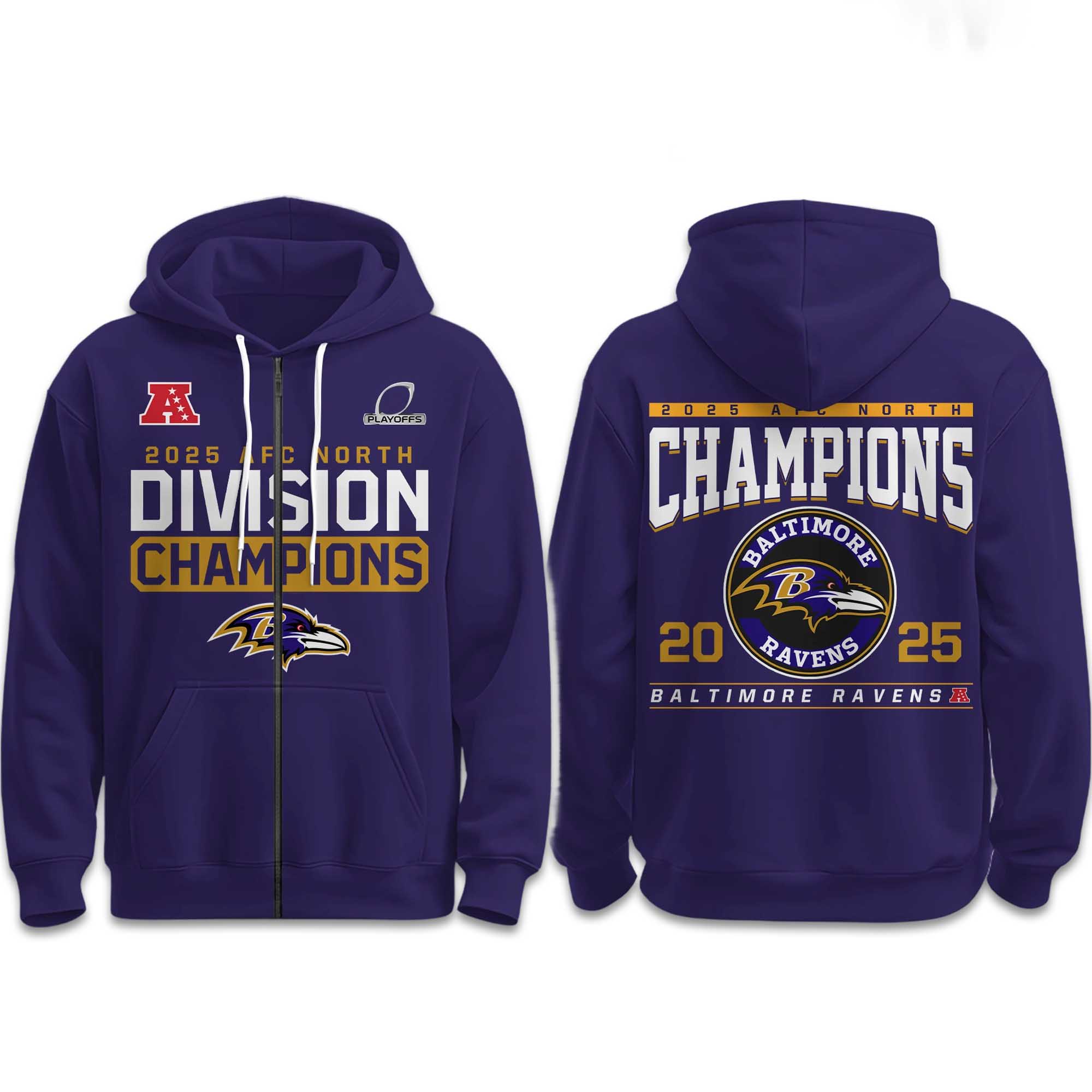 Ravens’ AFC North Regional Championship Zip-Up Hoodie 2025/2026 – Show Your Winning Pride