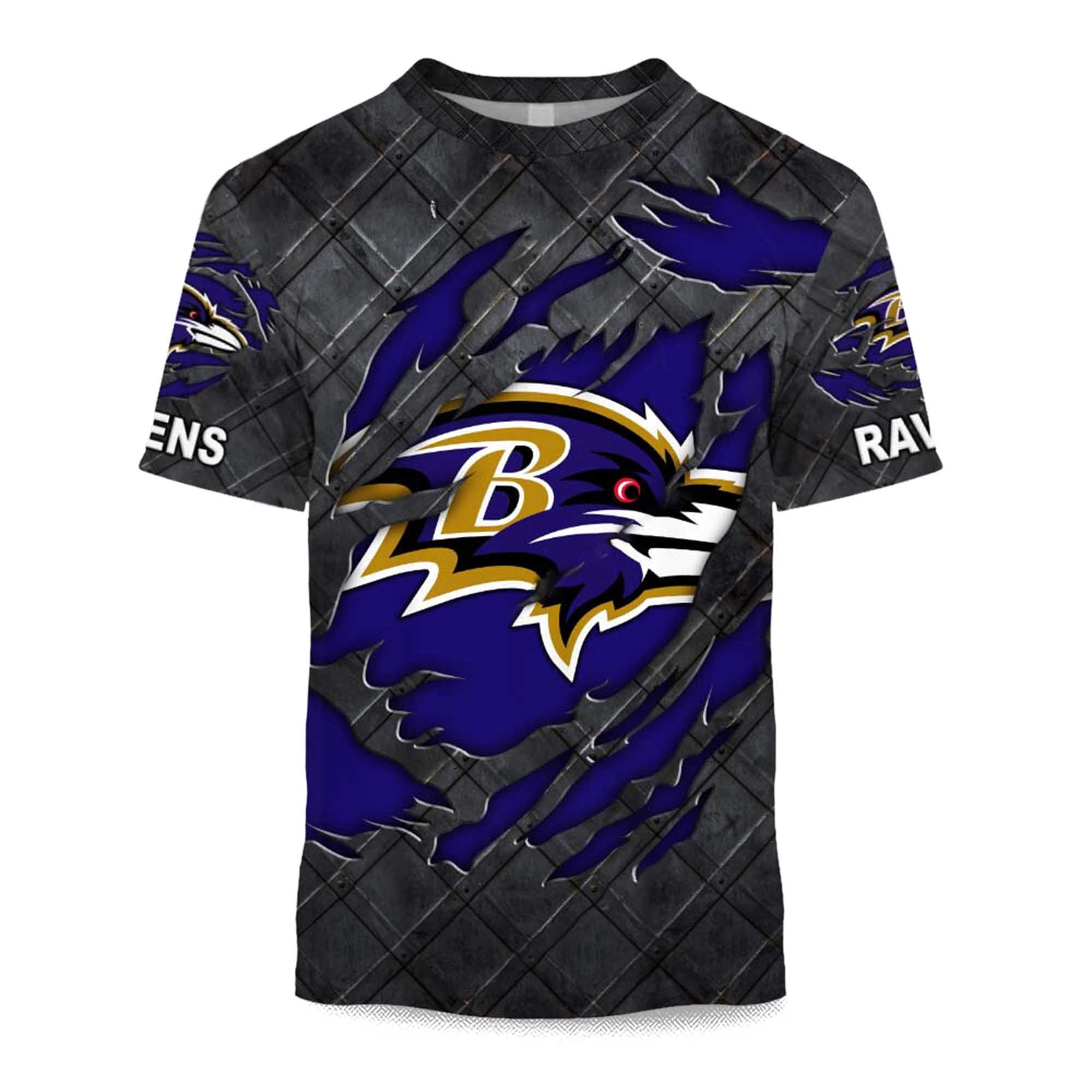 The Ravens Black Metal Texture Shirt style is rapidly becoming a favorite choice for fans seeking something bolder and more expressive than a typical team t-shirt. The sharp metallic pattern and aggressive raven imagery align with current streetwear trends, where dark tones and textured graphics are dominant. This design conveys confidence, strength, and loyalty to the team.