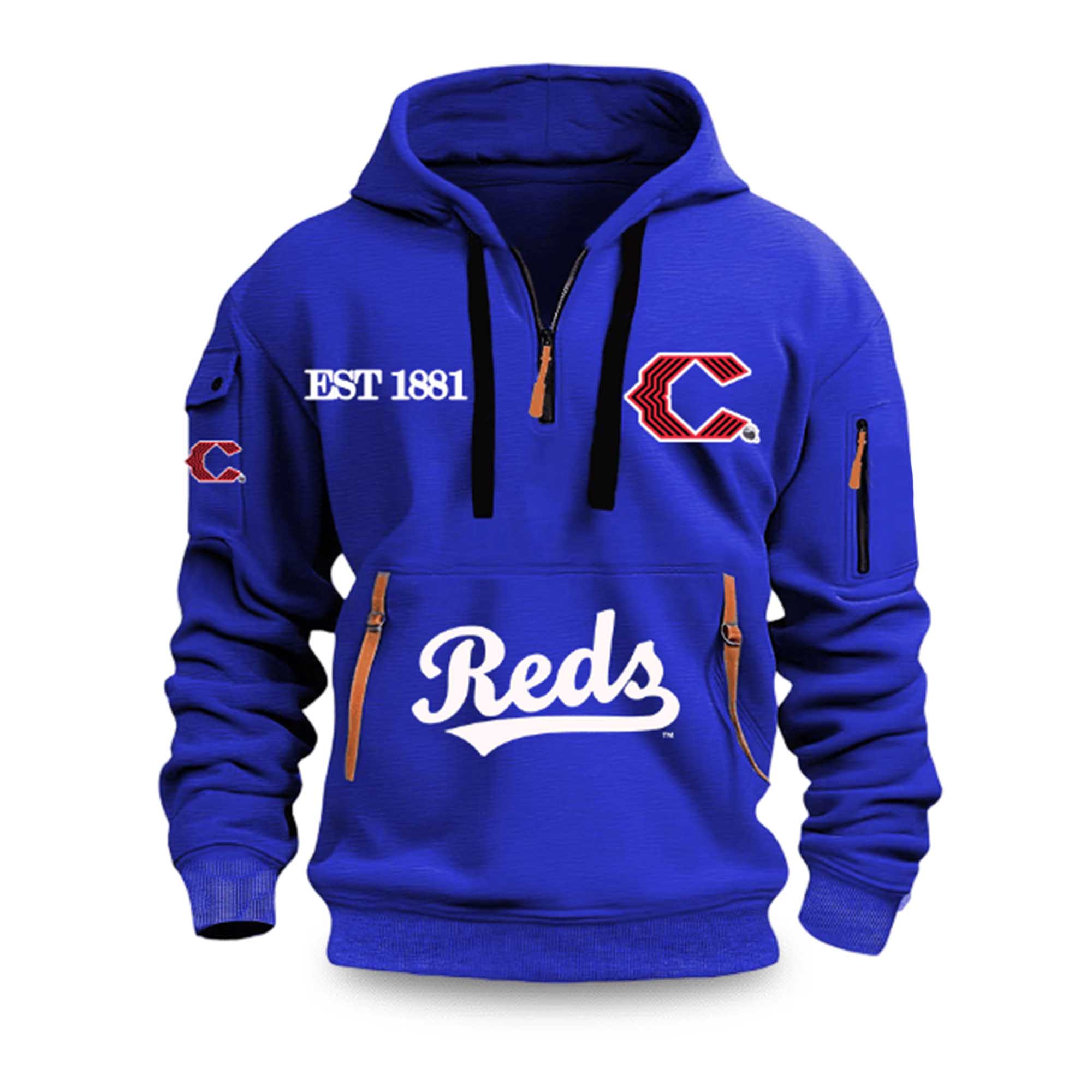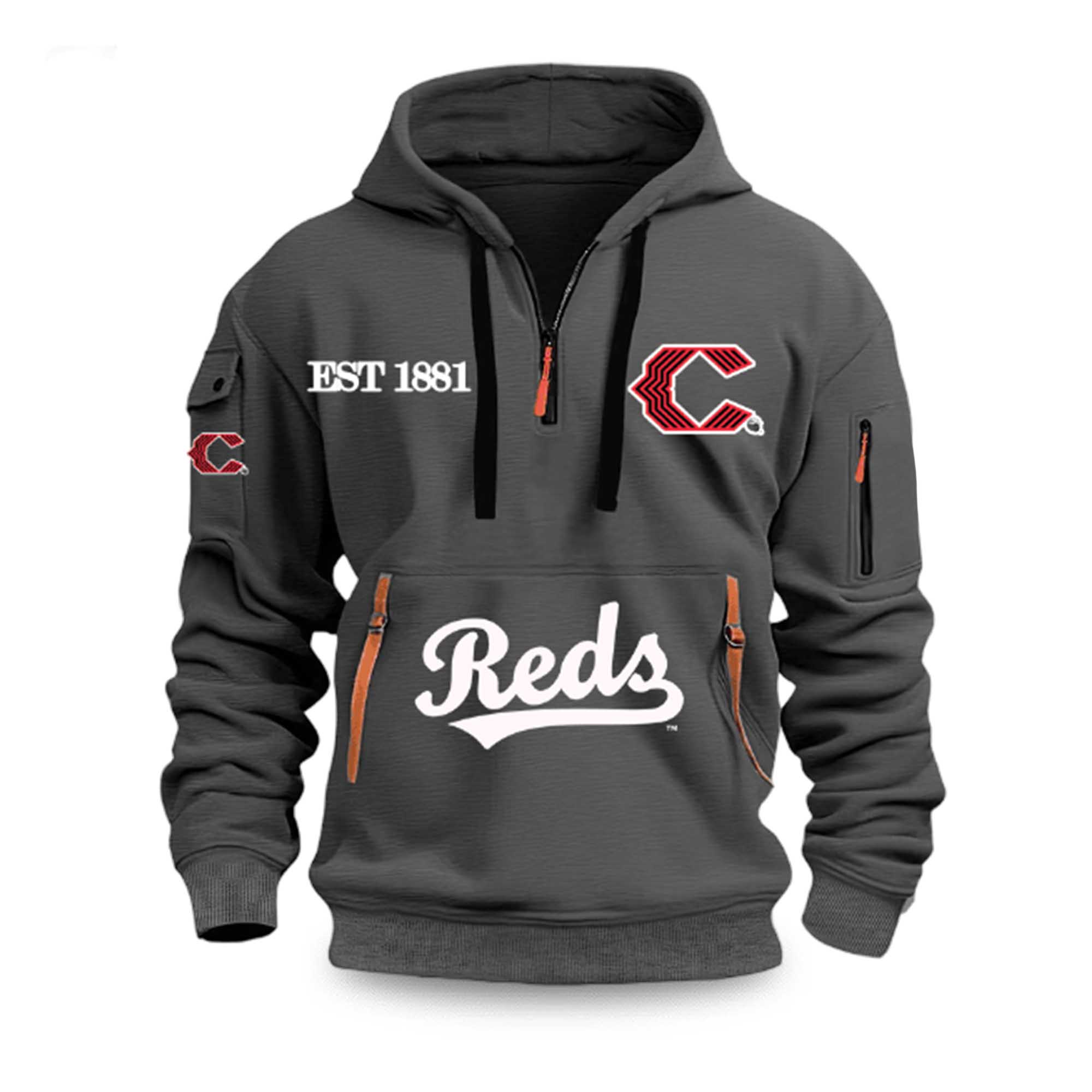 The Reds 2026 EST 1881 Quarter Zip Hoodie brings classic Cincinnati baseball pride into a fresh, modern look. Inspired by one of the oldest teams in professional baseball, this hoodie highlights the team’s founding year with bold EST 1881 lettering and crisp Reds graphic. It combines traditional details with everyday comfort, making it a great choice for supporters looking for stylish team apparel in 2026.